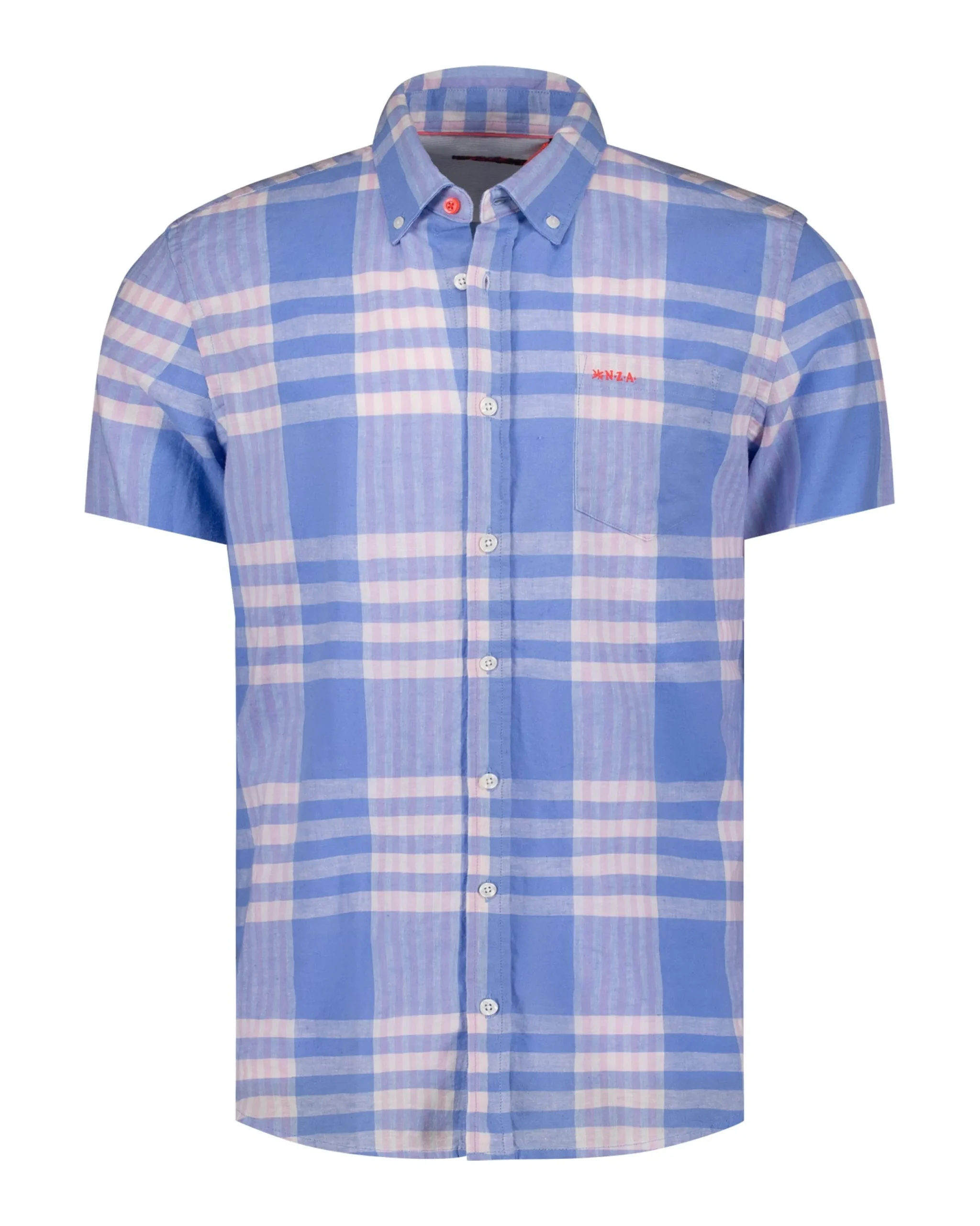 Blauw met roze geruit overhemd met korte mouwen