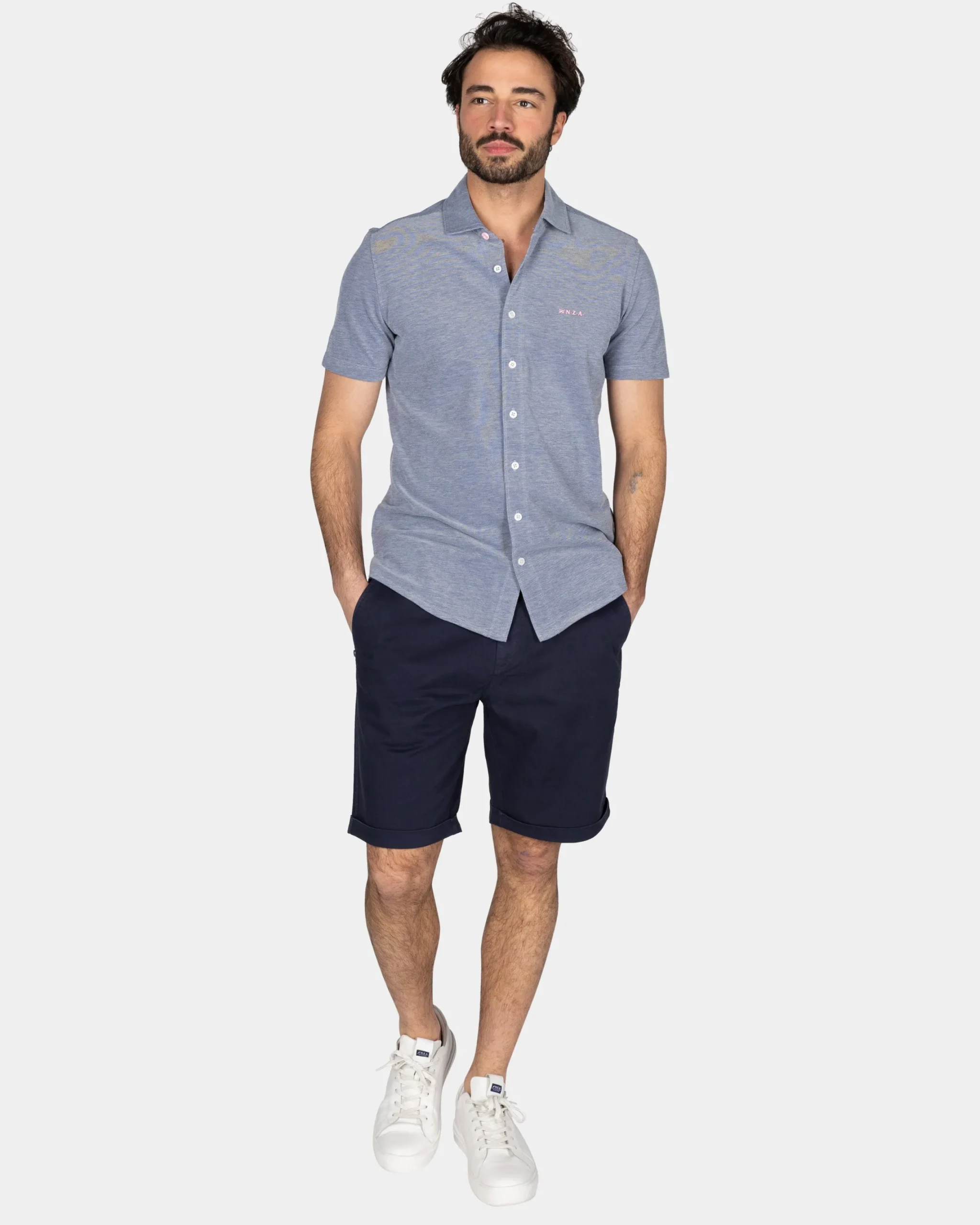 Blauw overhemd met korte mouw