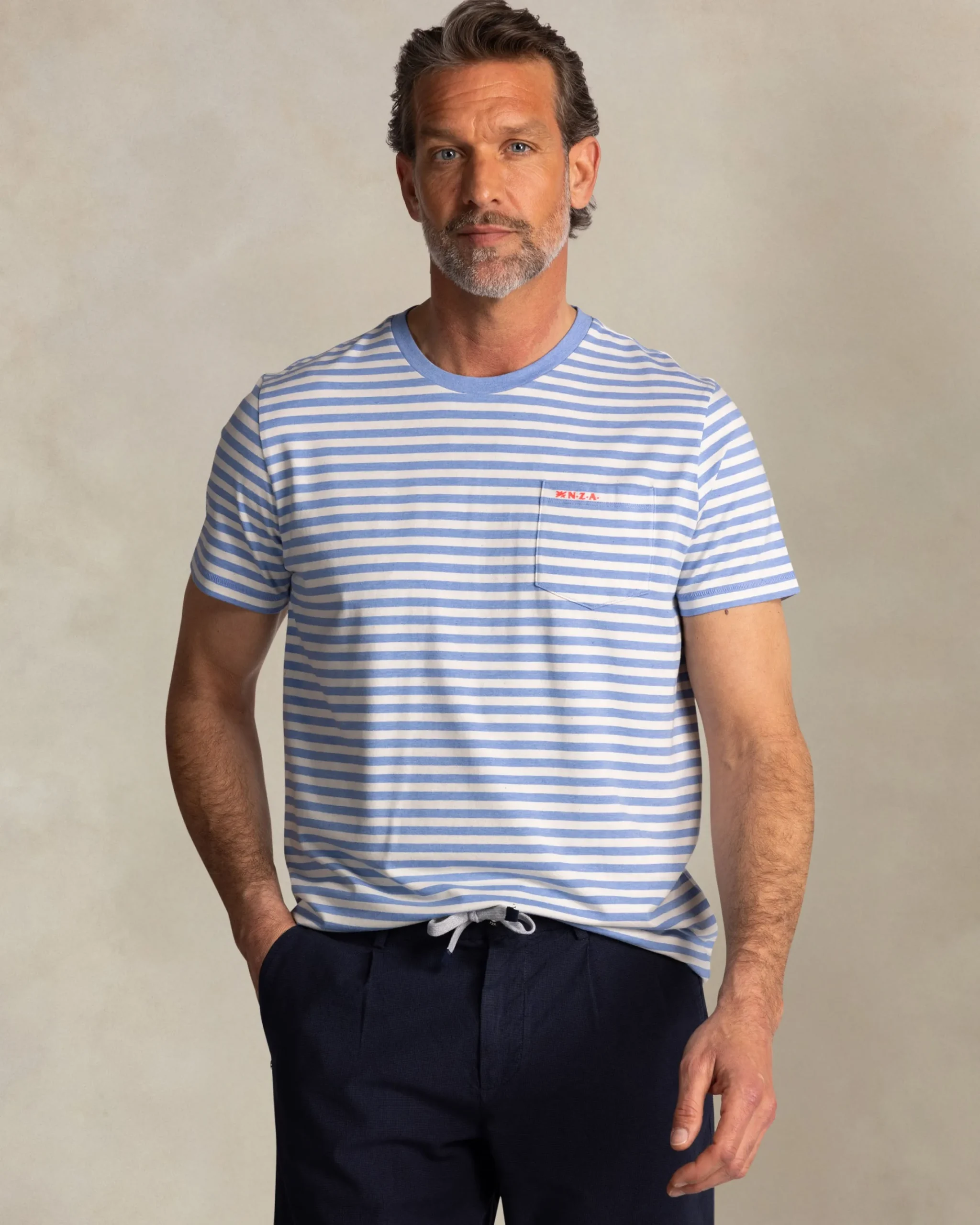 Blauw t-shirt met witte strepen