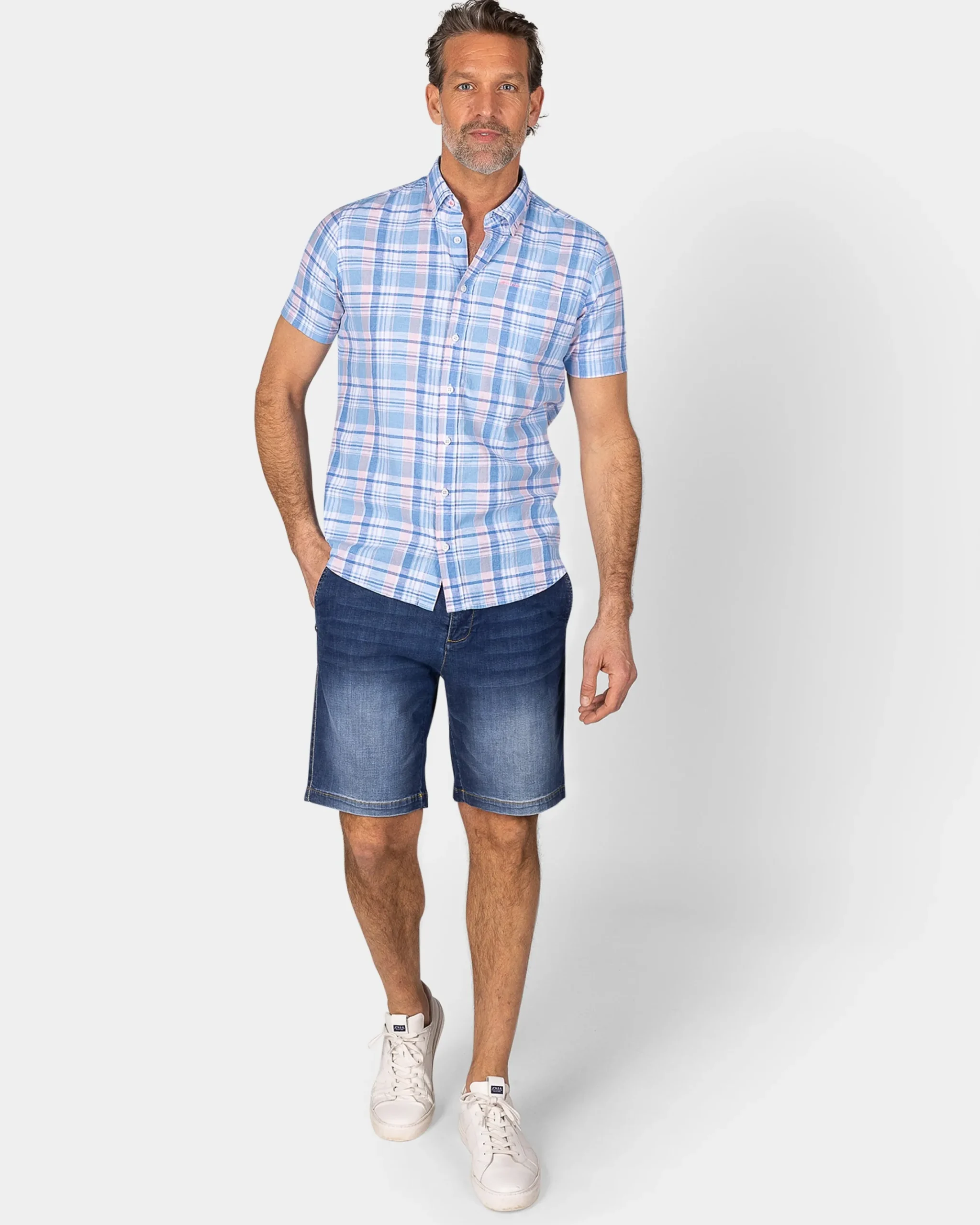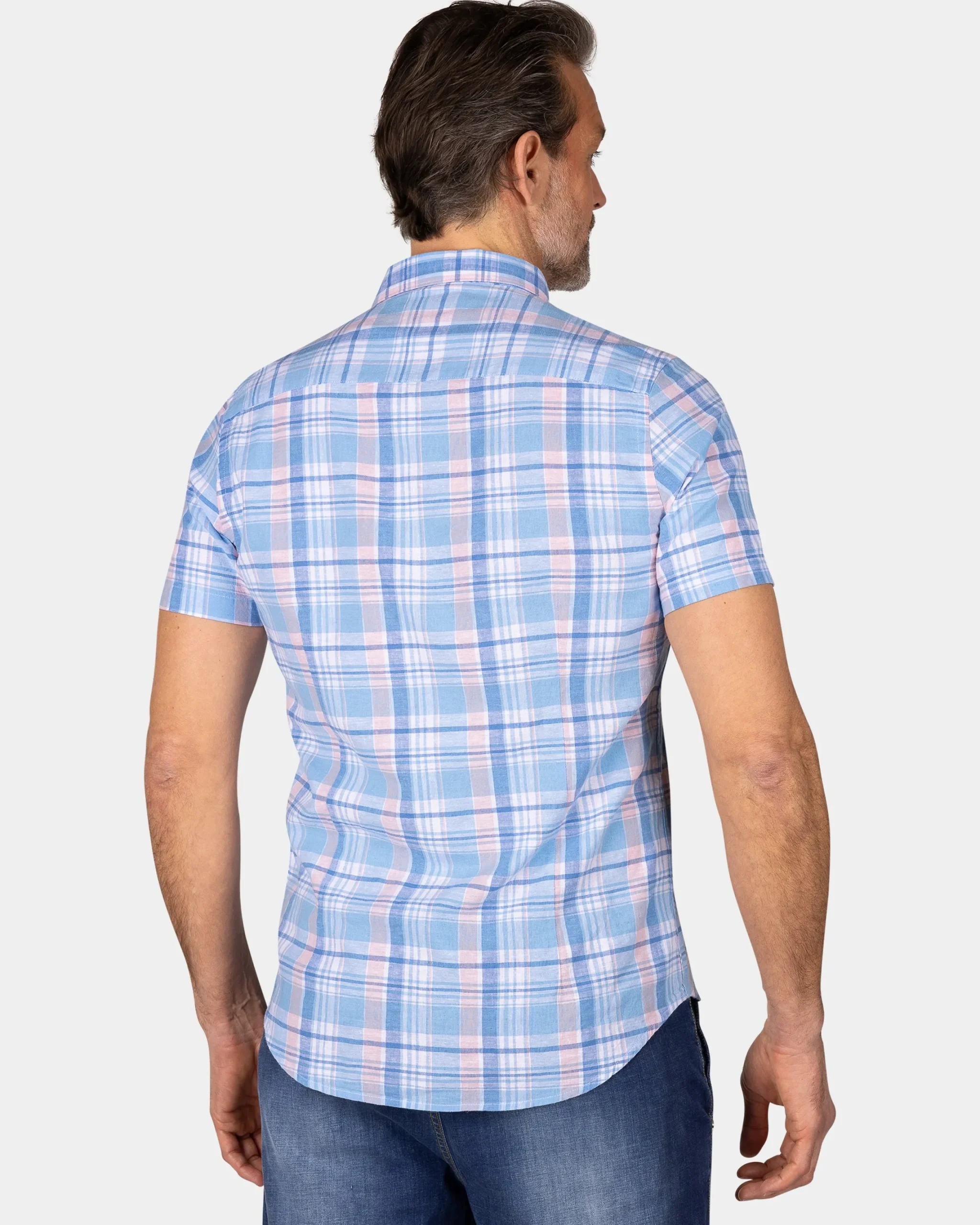 Blauw wit oranje geruit overhemd met korte mouw