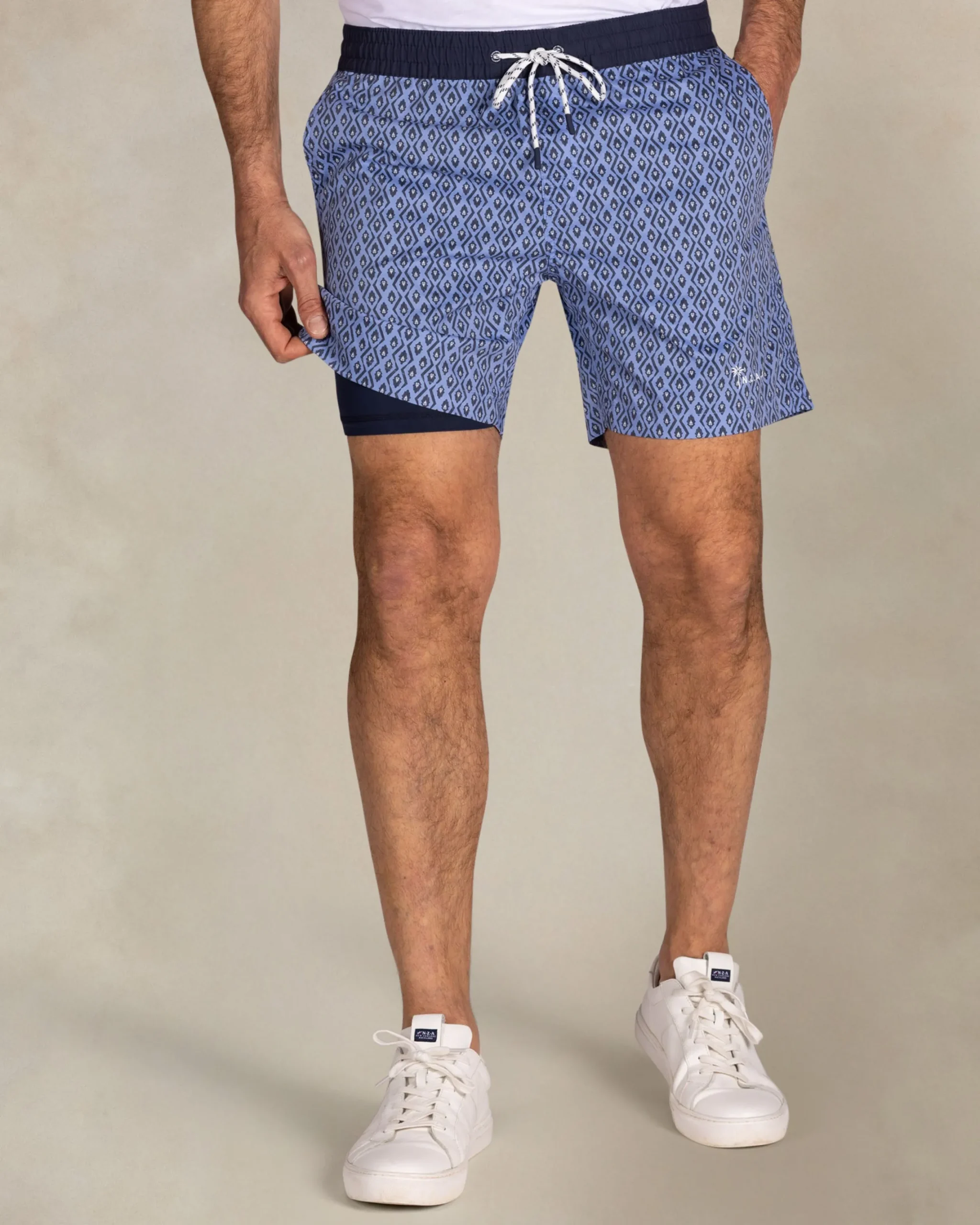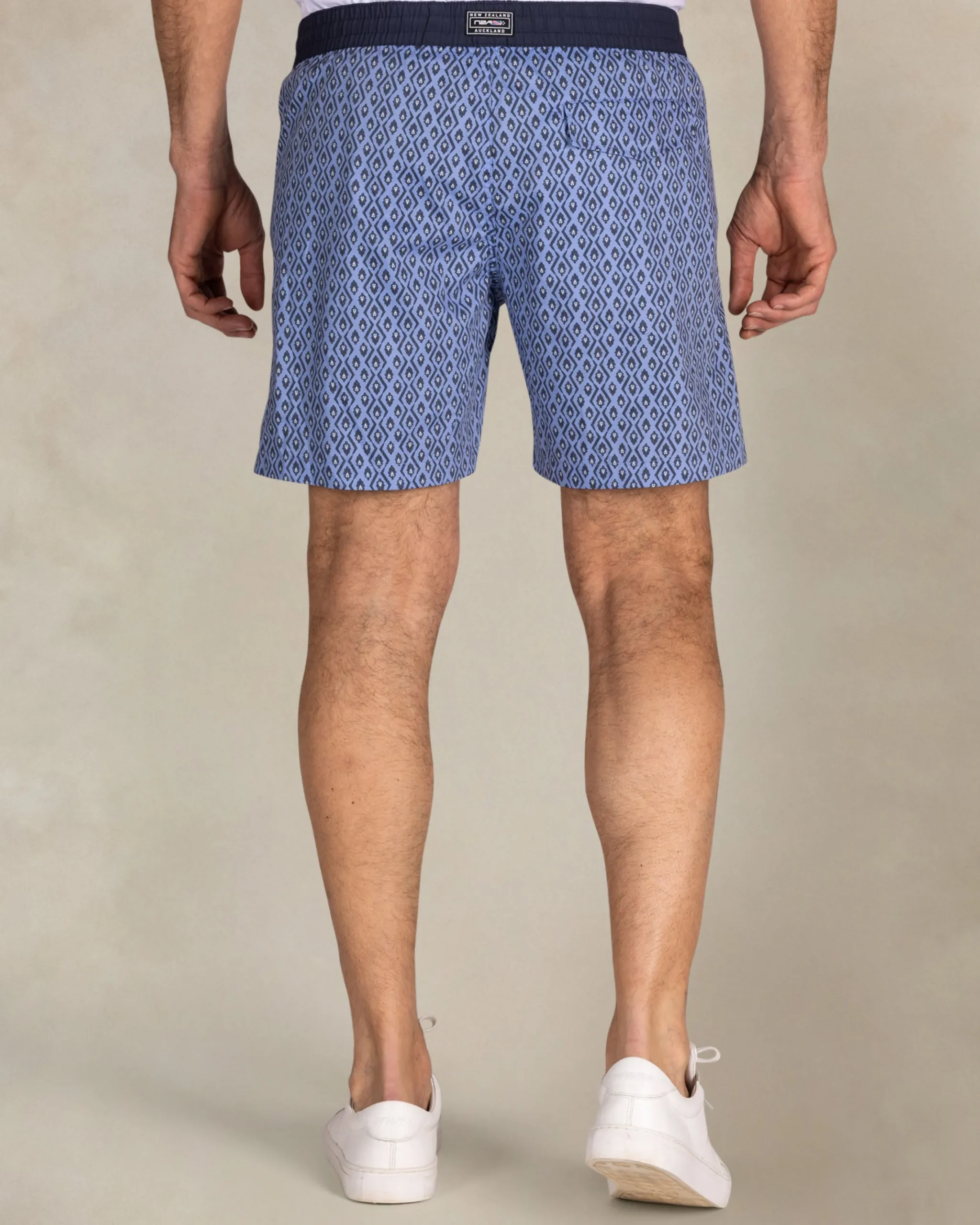 Blauwe geprinte zwembroek met navy rand
