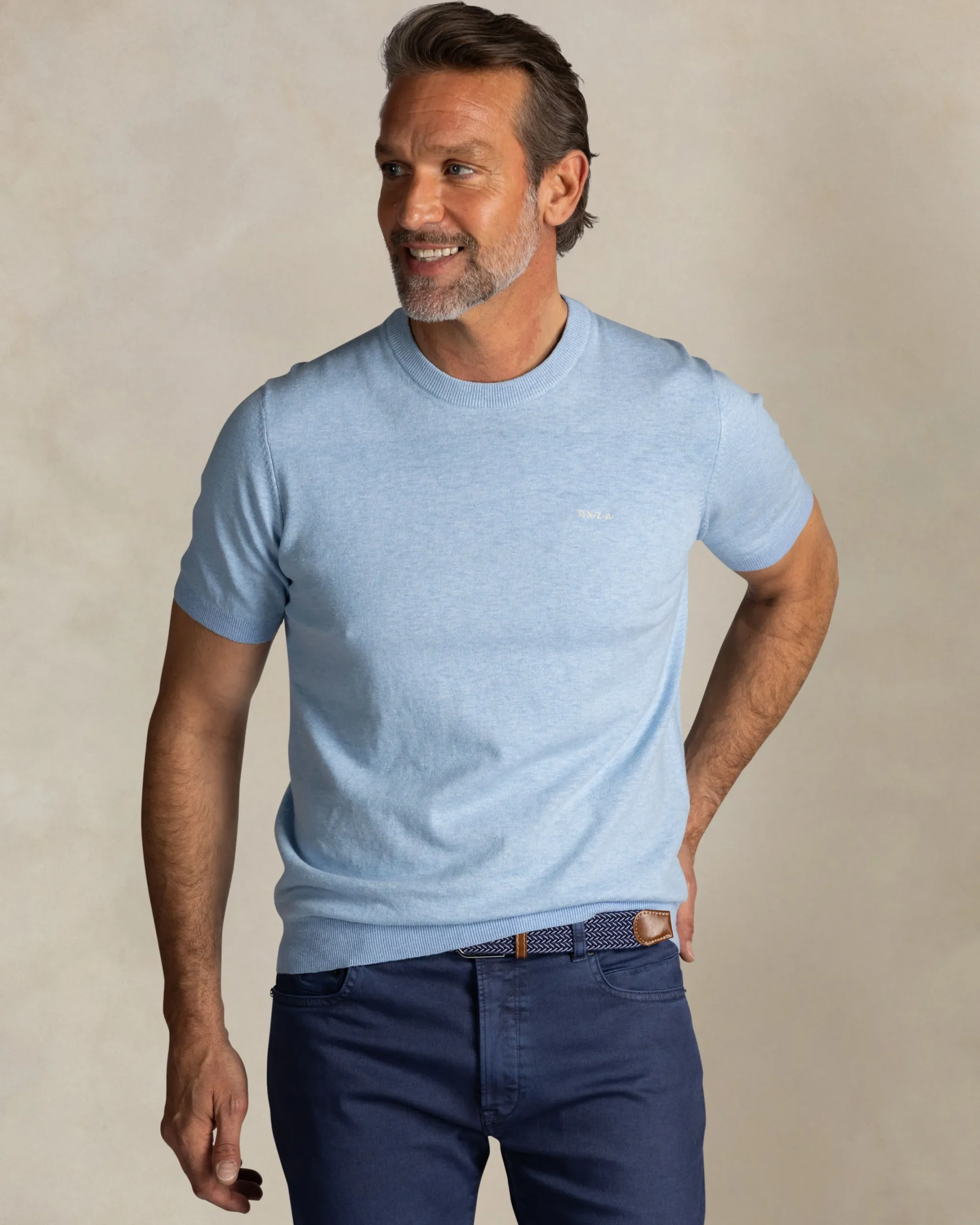 Dit shirt heeft een klassieke ronde hals en korte mouwen, wat resulteert in een tijdloze maar eigentijdse uitstraling. Gemaakt van puur katoen, voelt het bijzonder zacht aan op de huid en draagt het de hele dag comfortabel. Het subtiele geborduurde logo voegt een verfijnd detail toe. Combineer het moeiteloos met een nette chino of een strakke jeans voor een look die ontspannen en verzorgd tegelijk is.