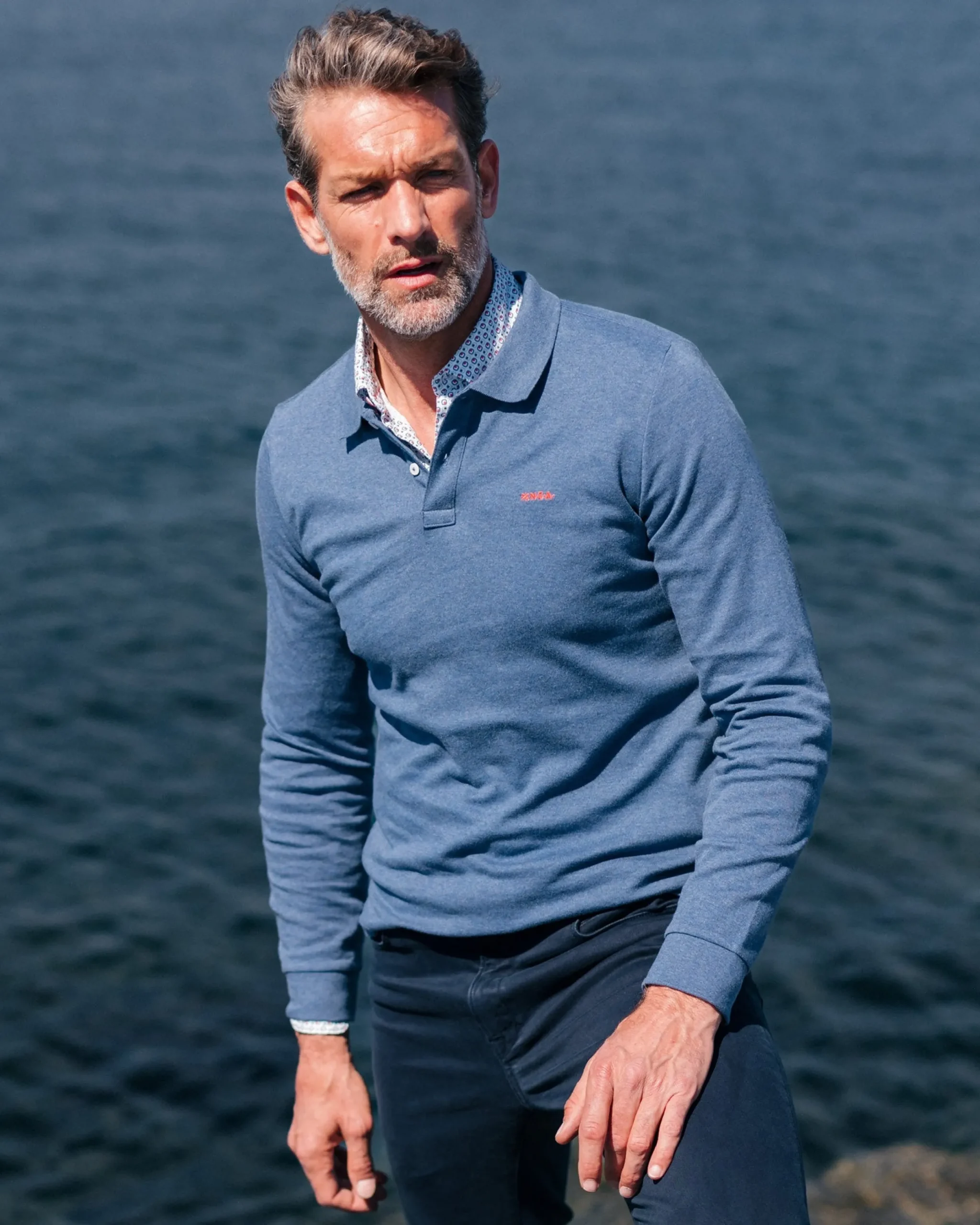 Blauwe katoenen longsleeve polo
