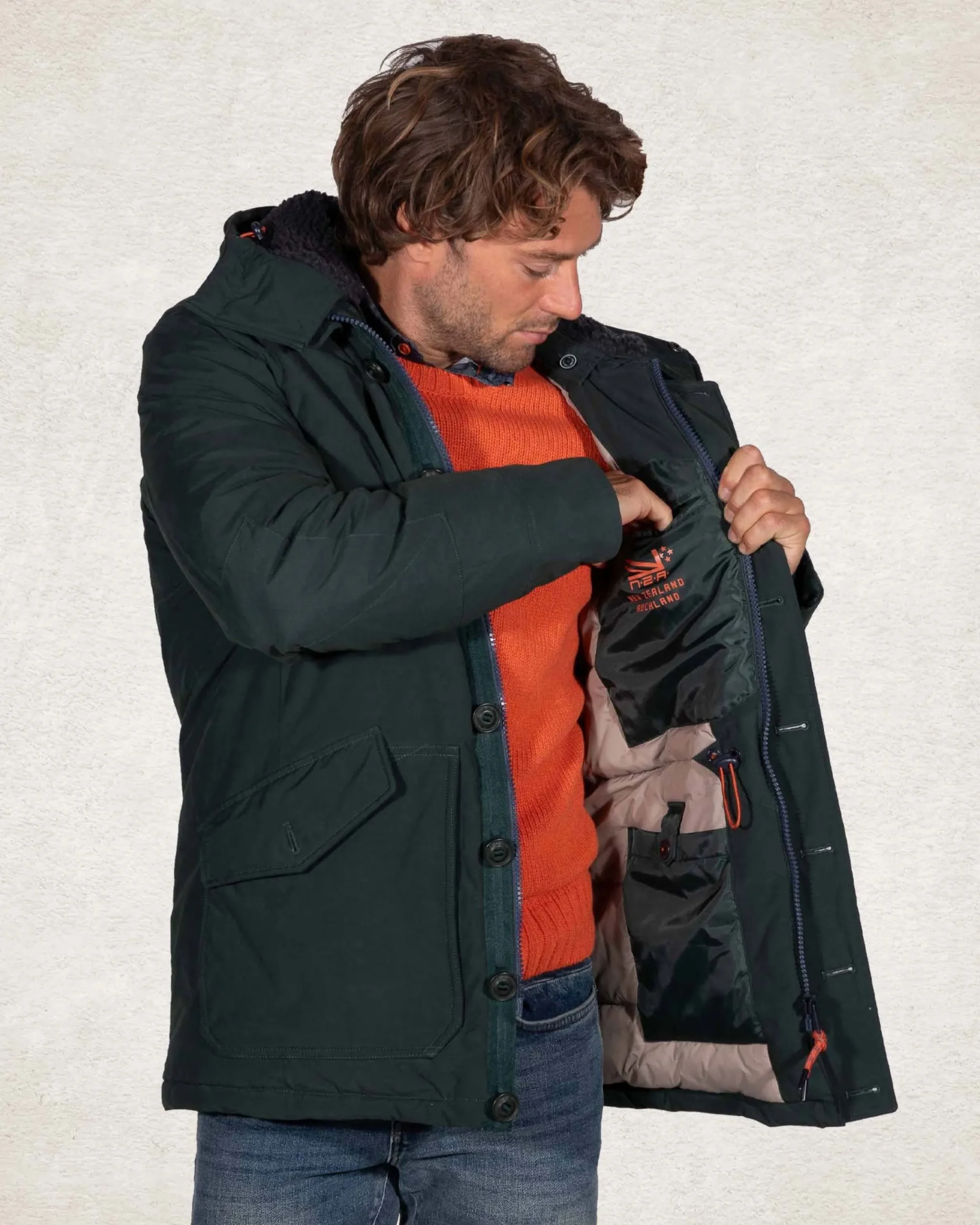 Canvas parka jas met capuchon – Crushing Green