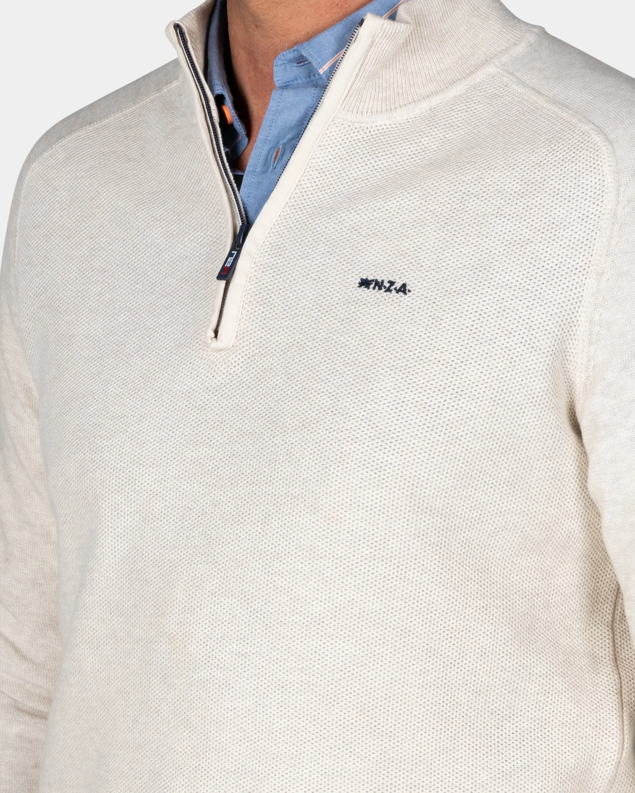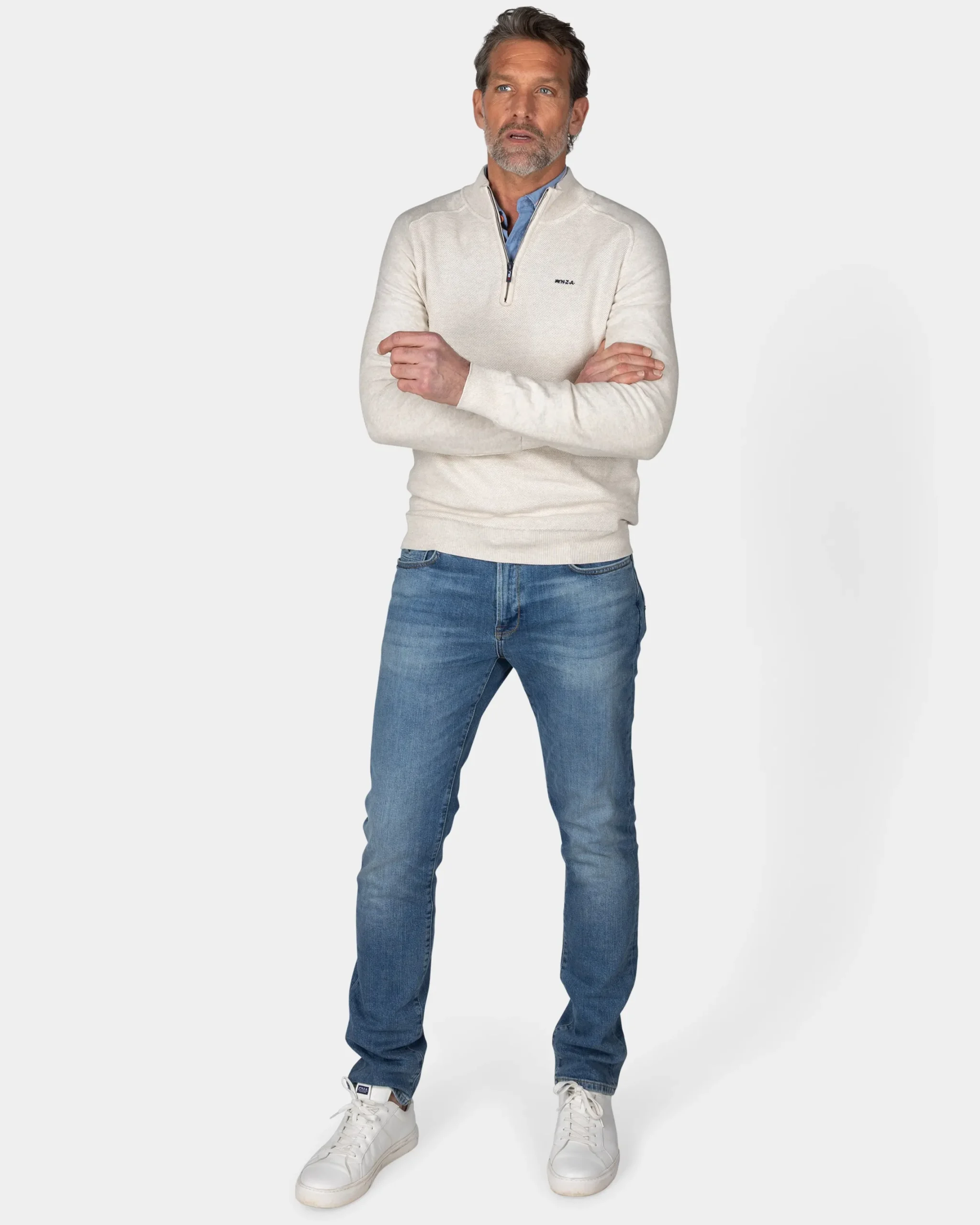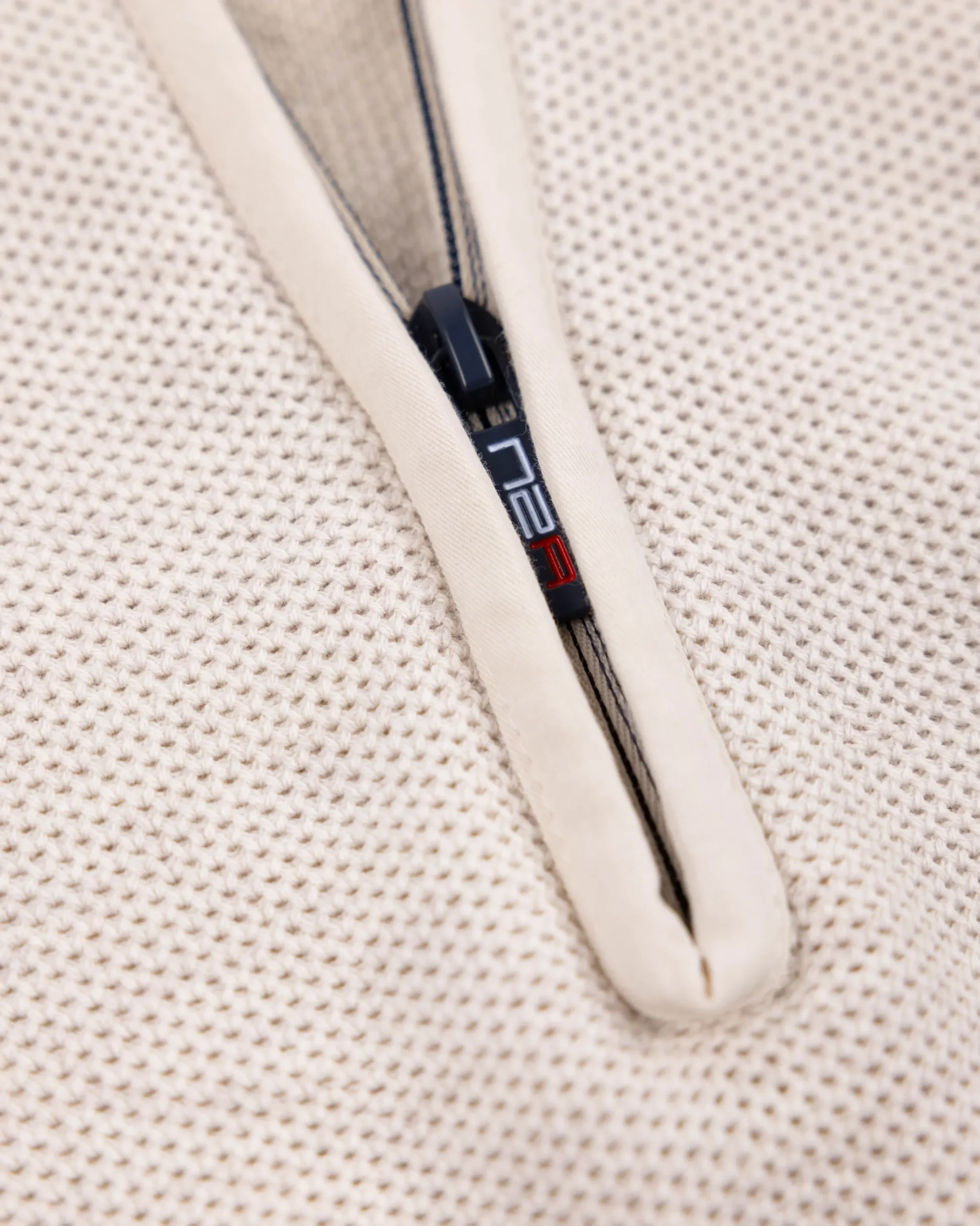- Bijpassende ribmanchetten, onderzoom en kraag