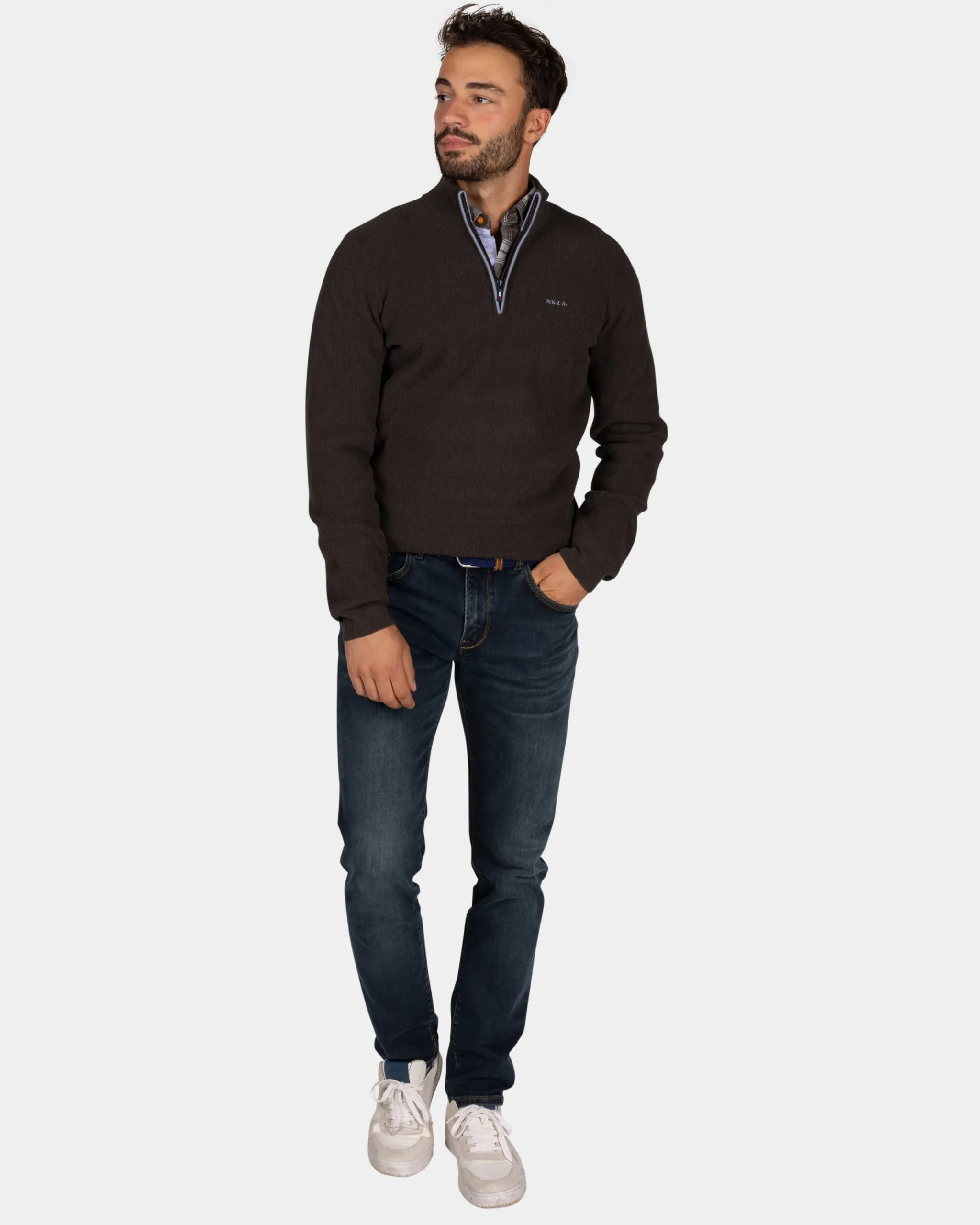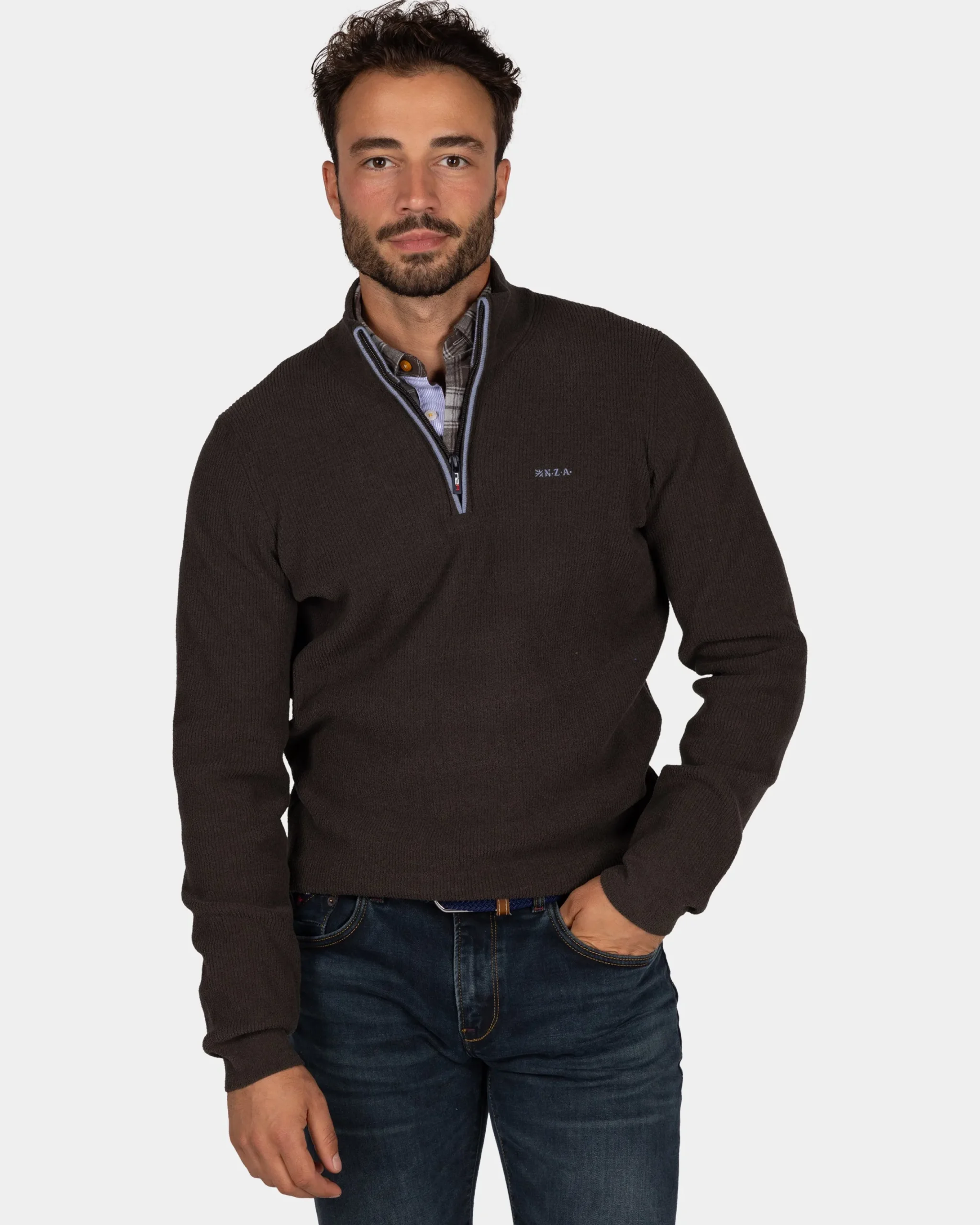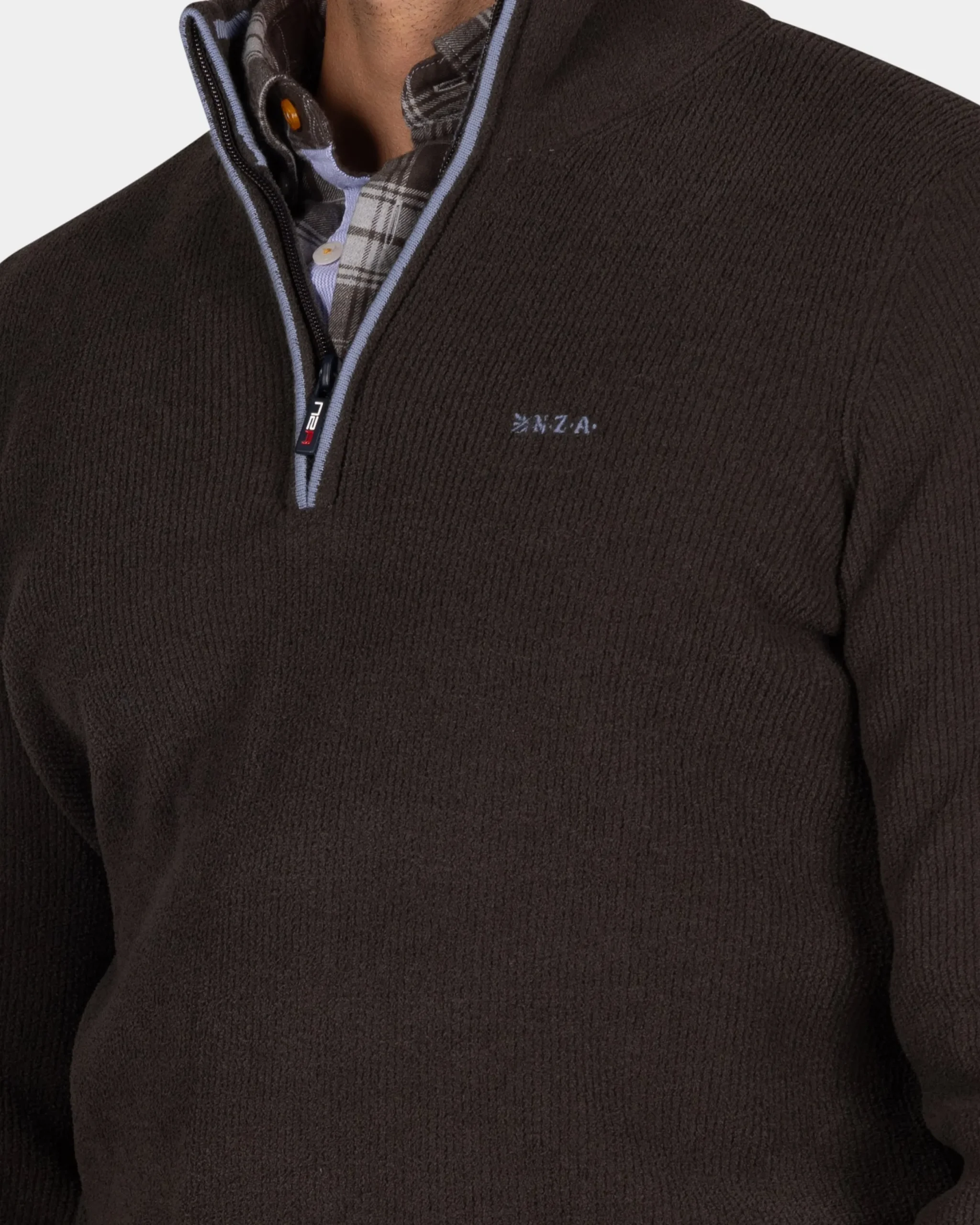 Donkerbruine chenille trui met halve rits – Dark Mocca