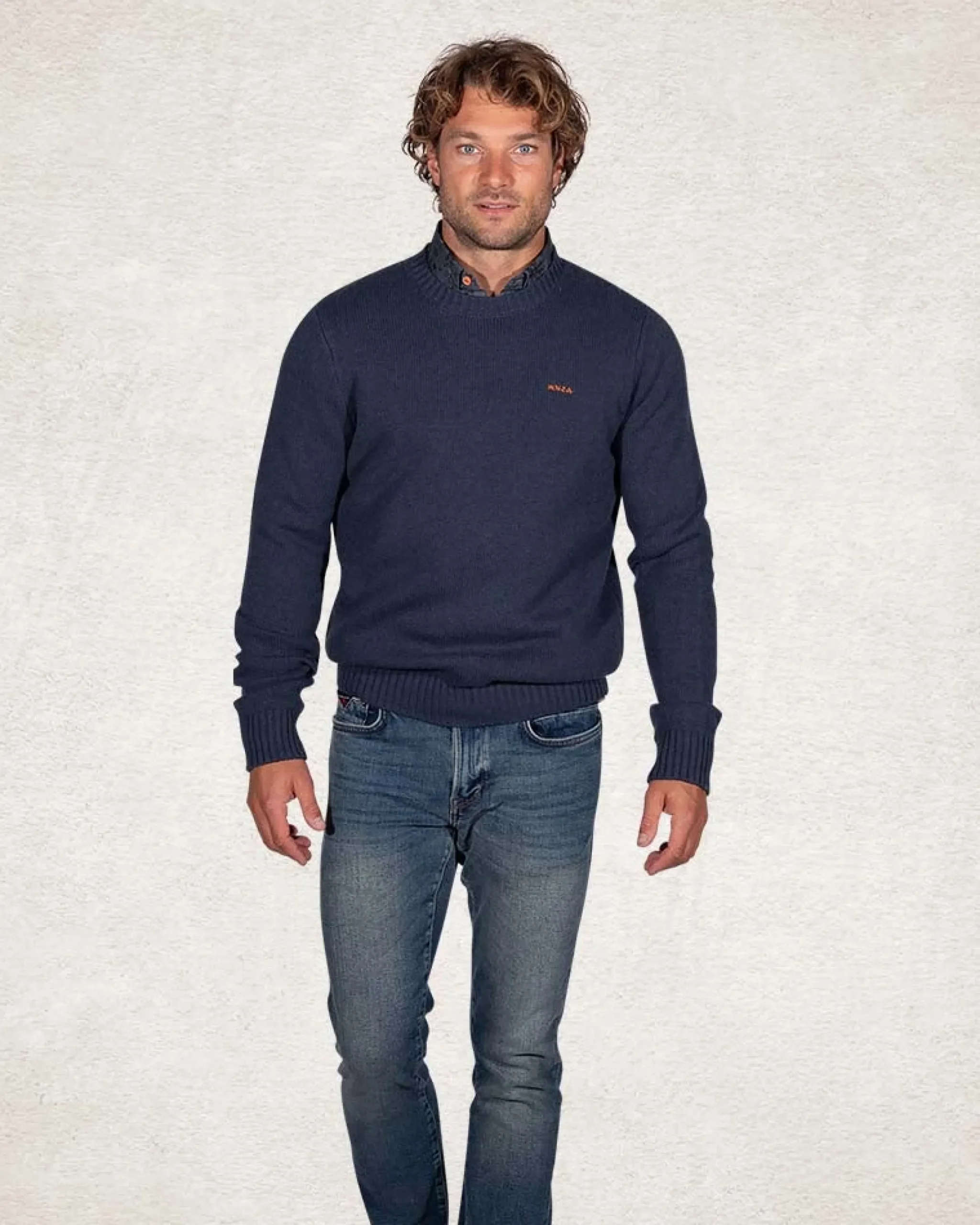 Effen gebreide trui met ronde hals – Trent Petrol