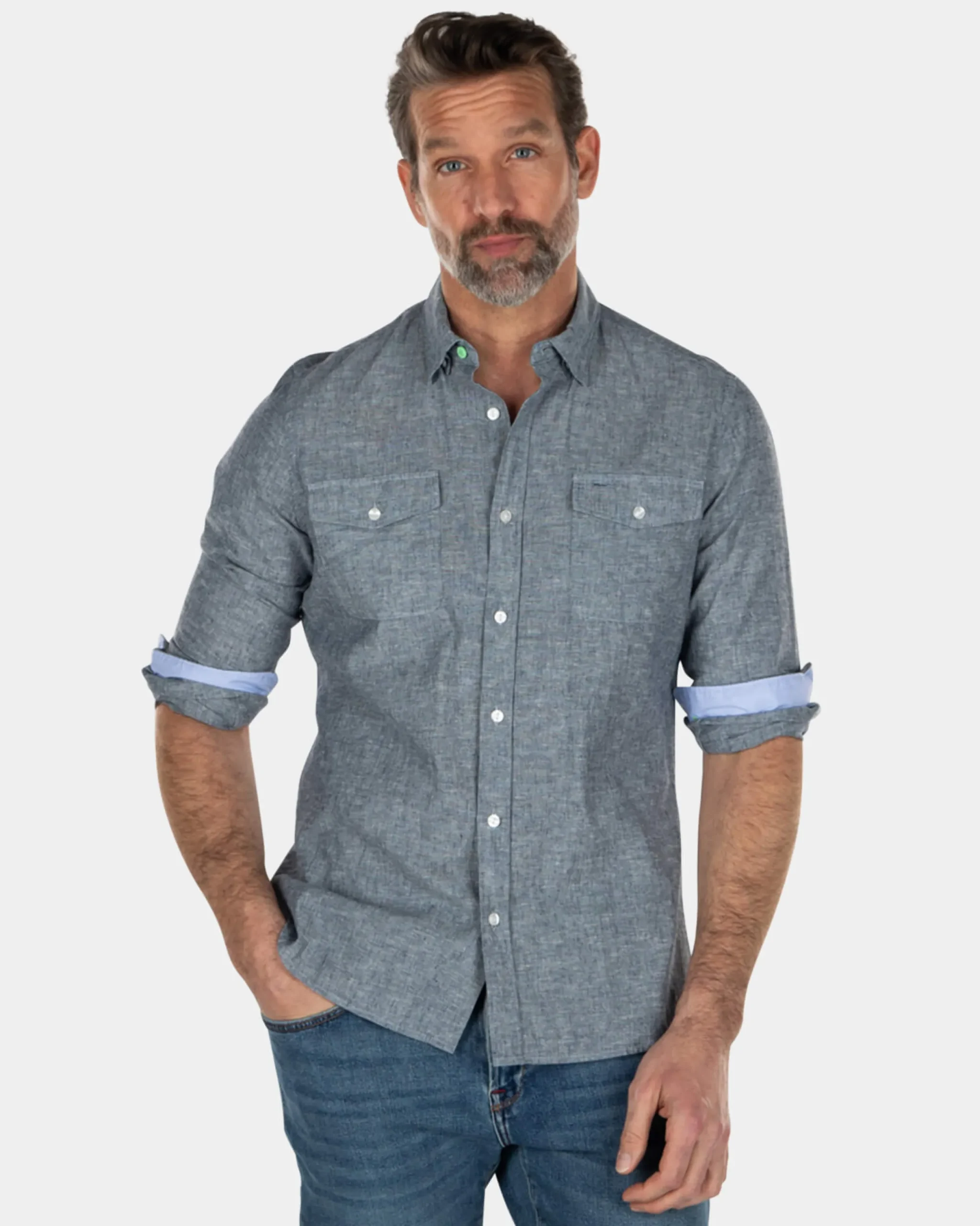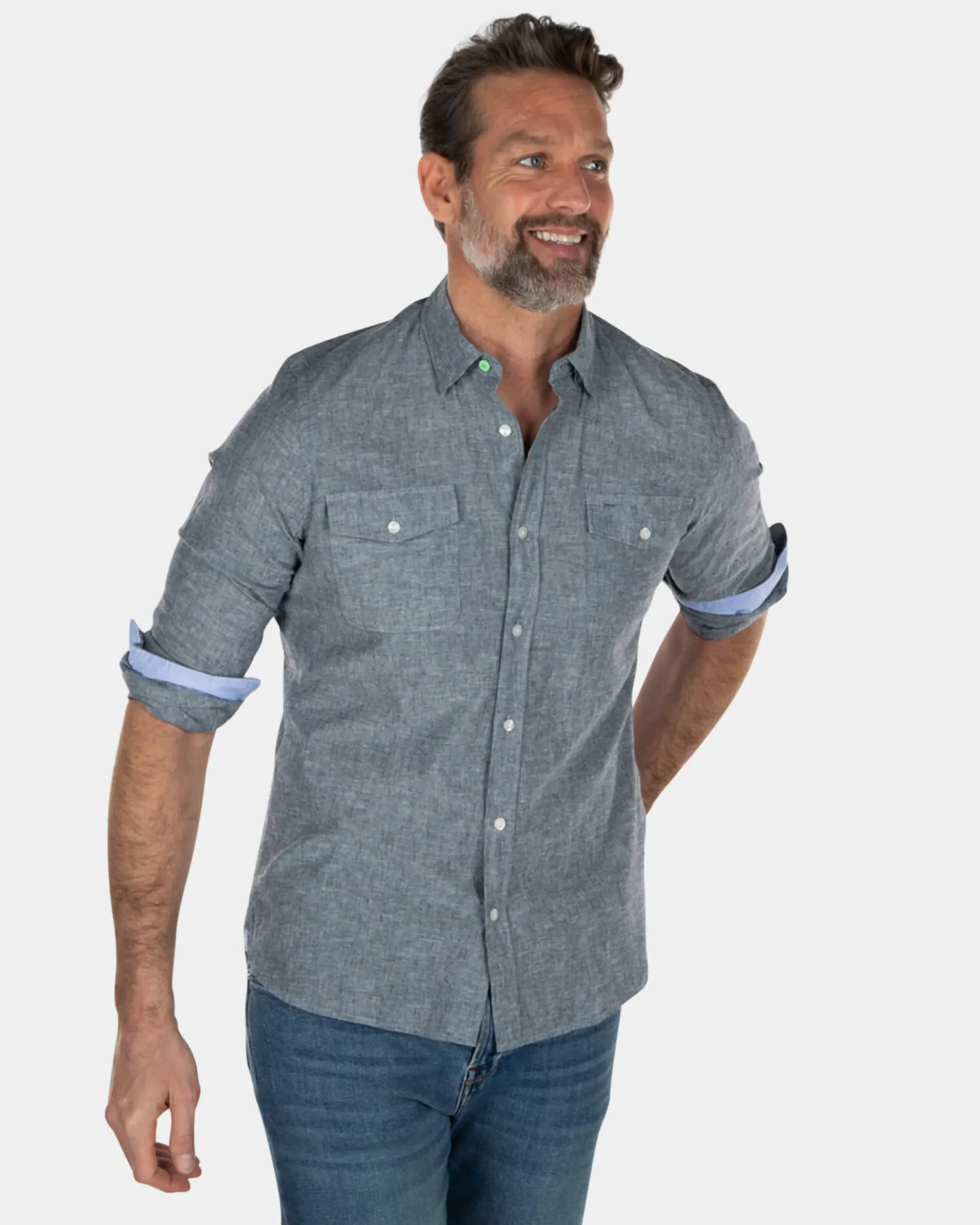 Effen katoenen linnen overhemd – Key Navy