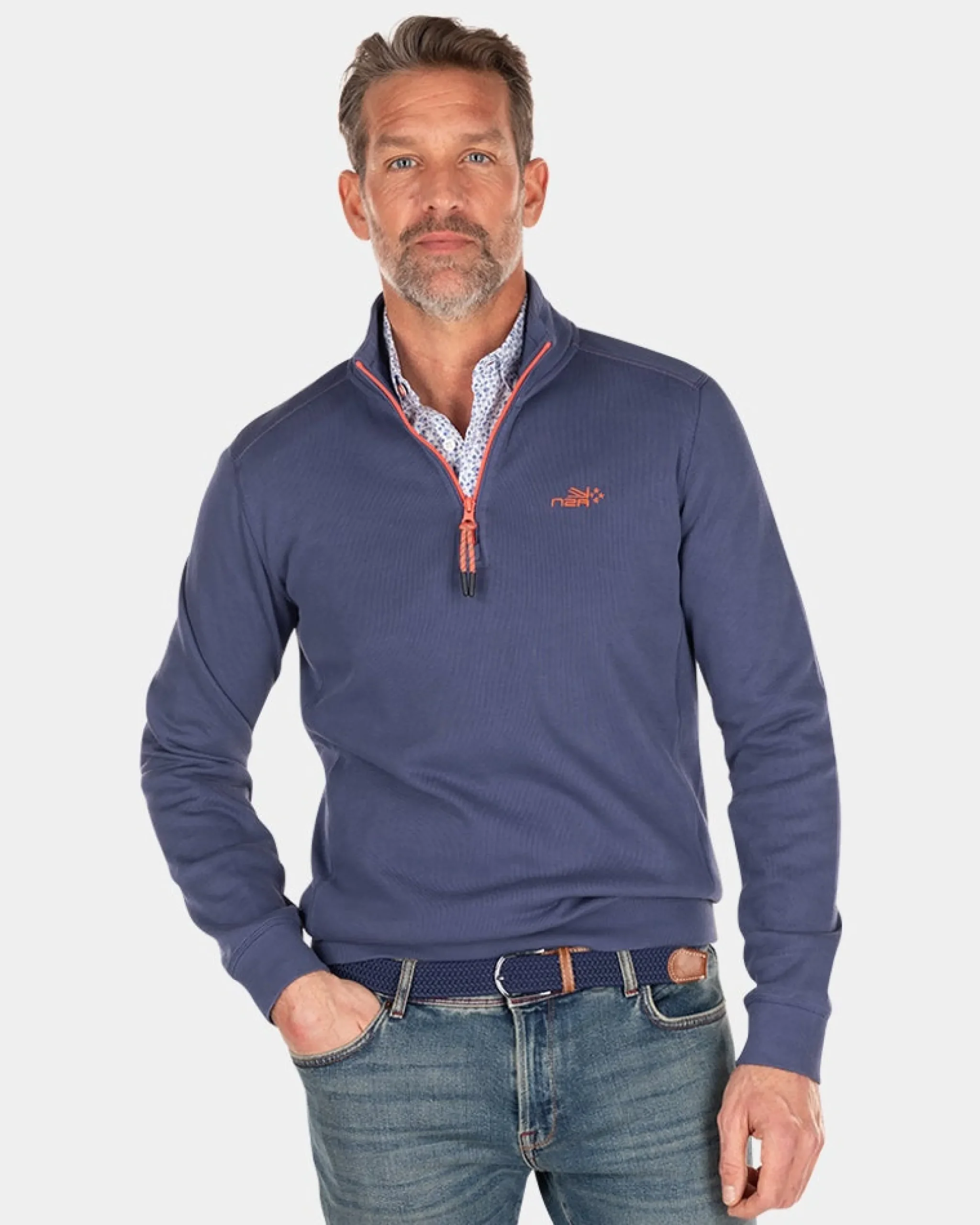 Effen katoenen trui met rits – Dusk Navy