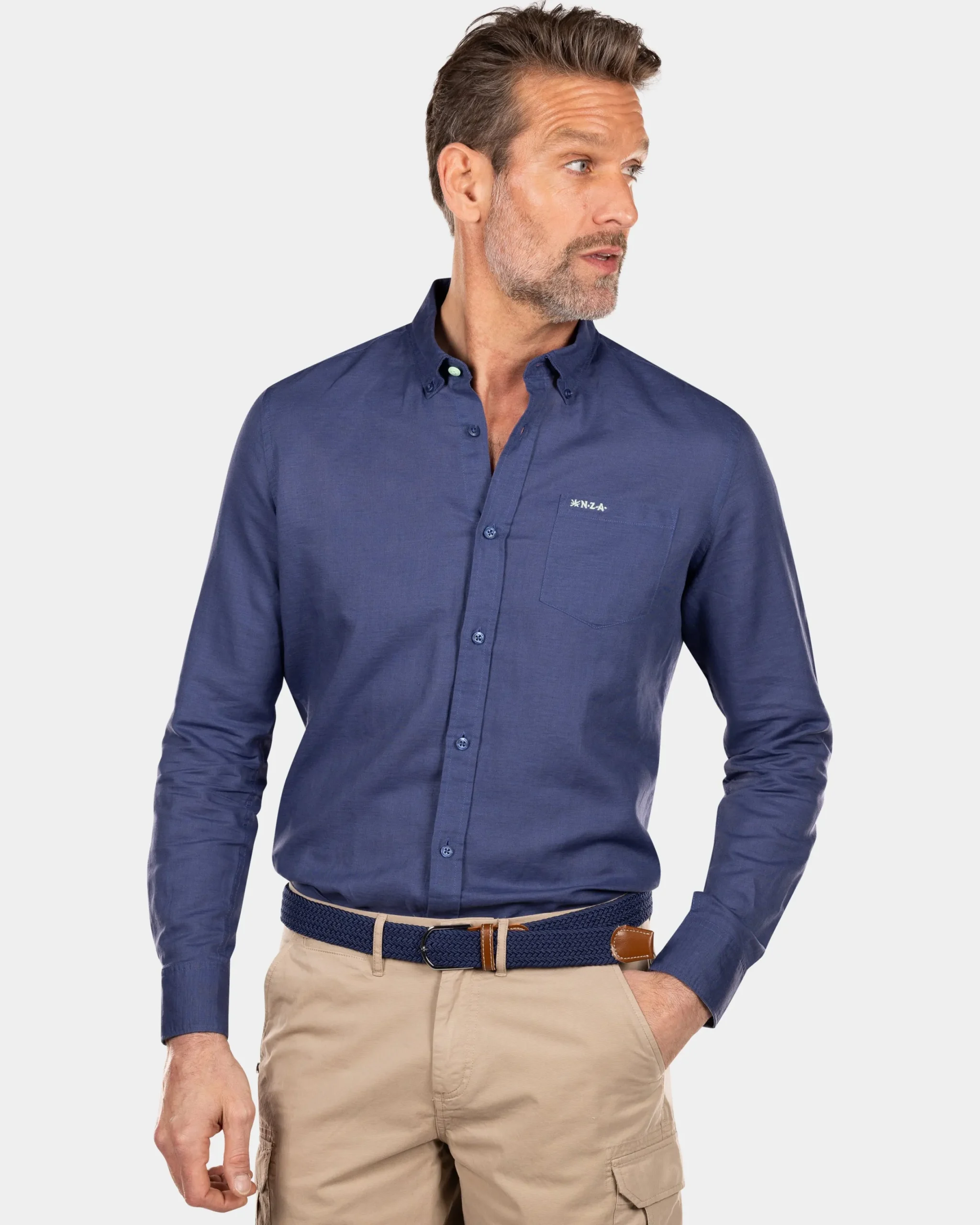 Effen linnen overhemd in veel kleuren – Dusk Navy