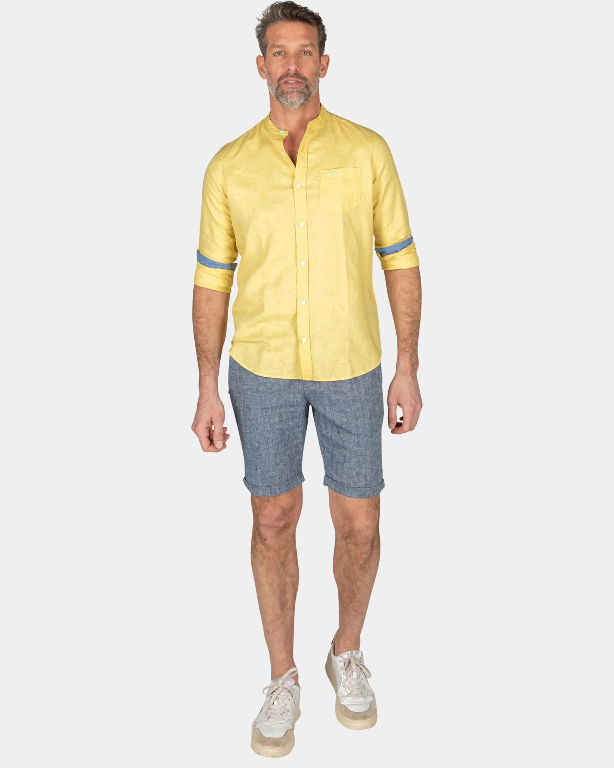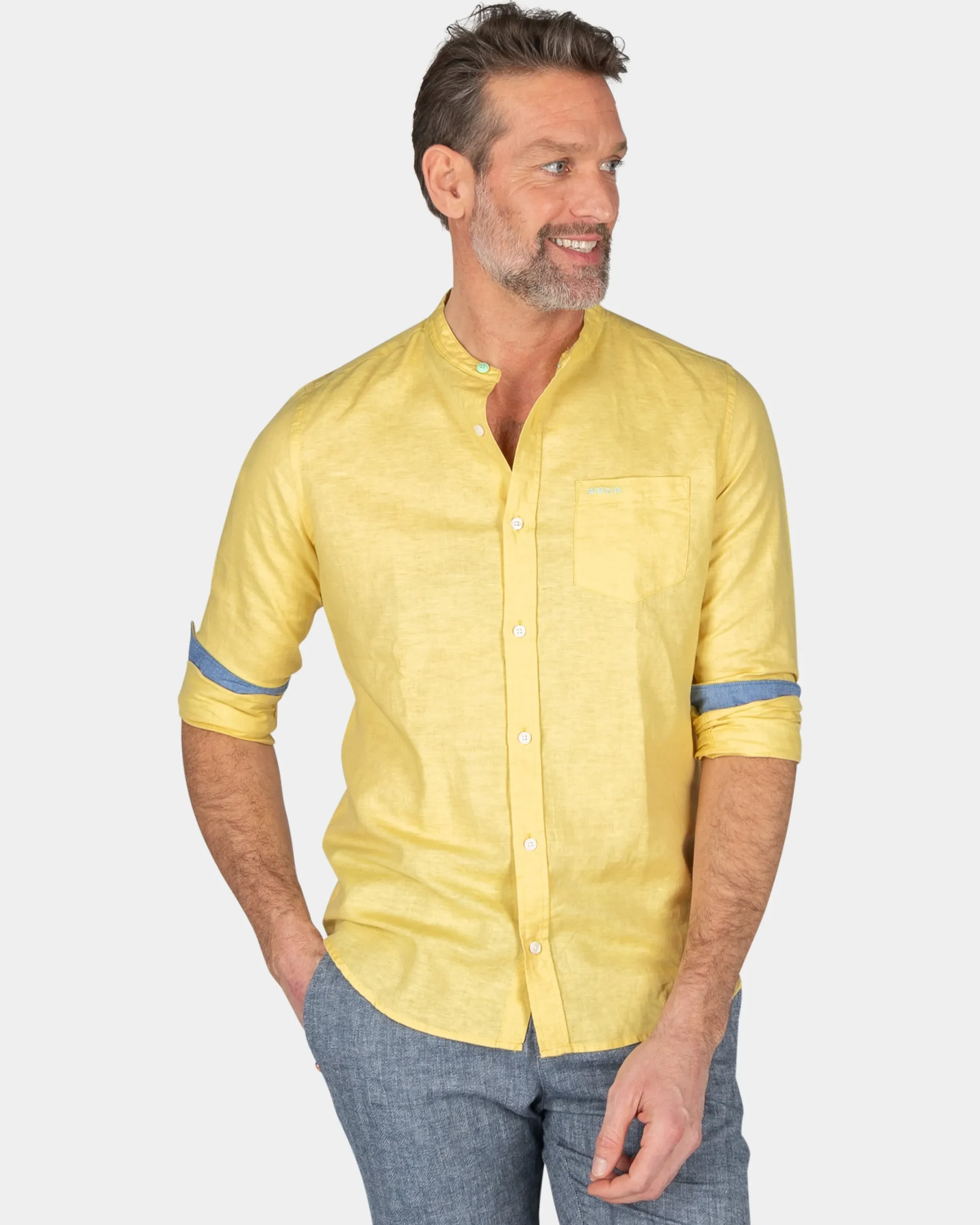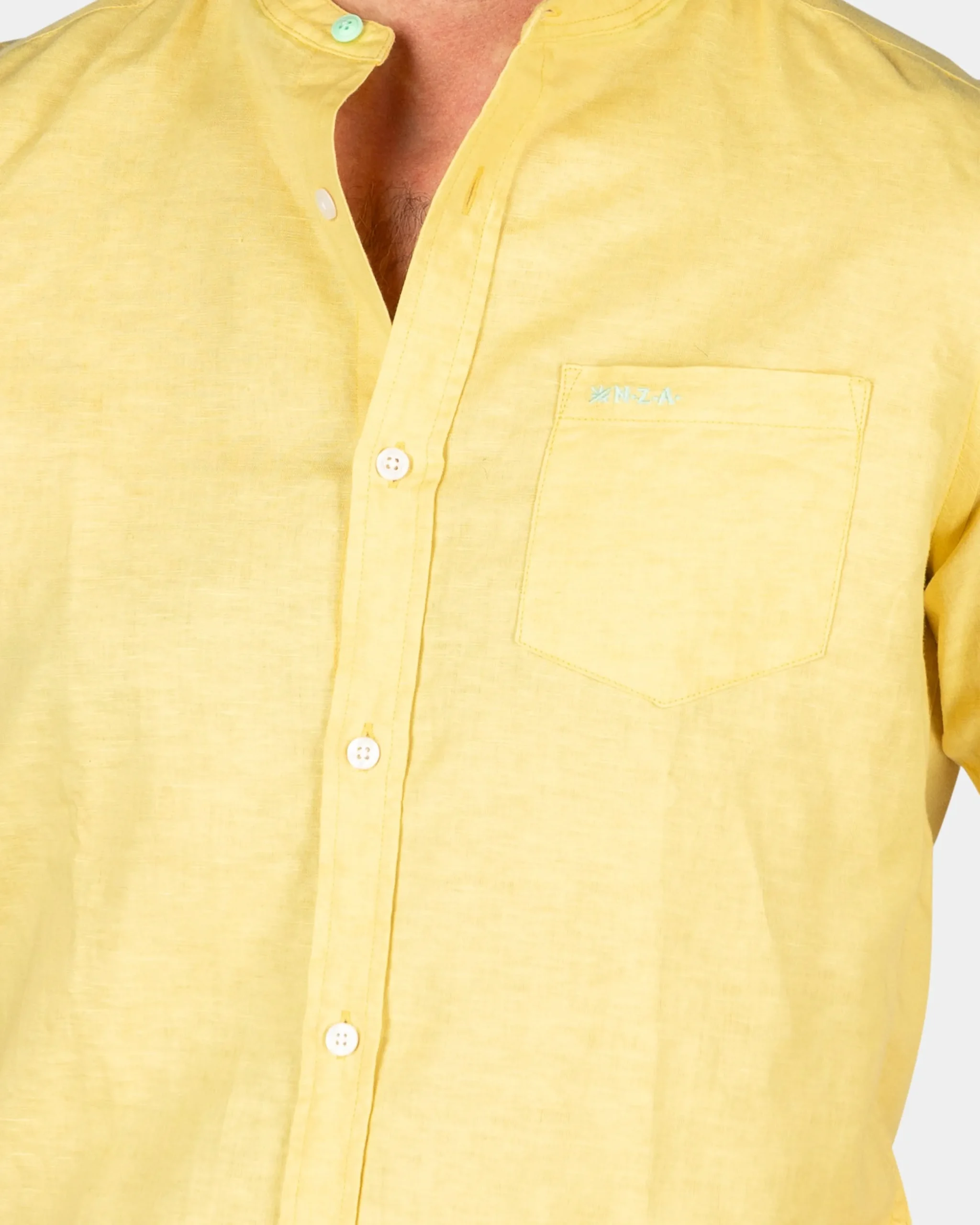 Effen overhemd zonder kraag – Iguana Yellow