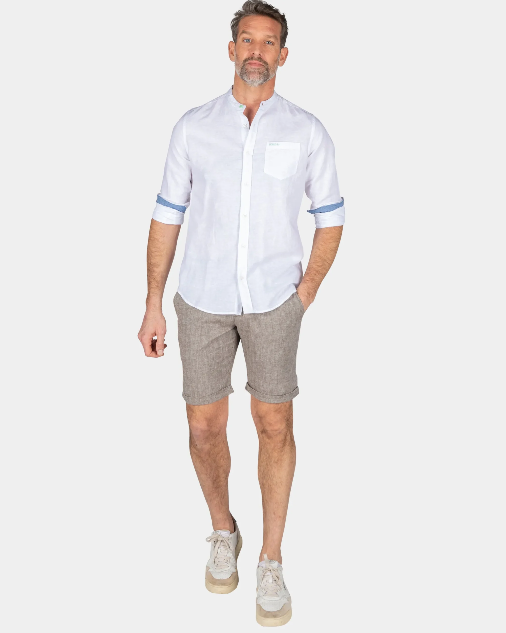 Effen overhemd zonder kraag – White
