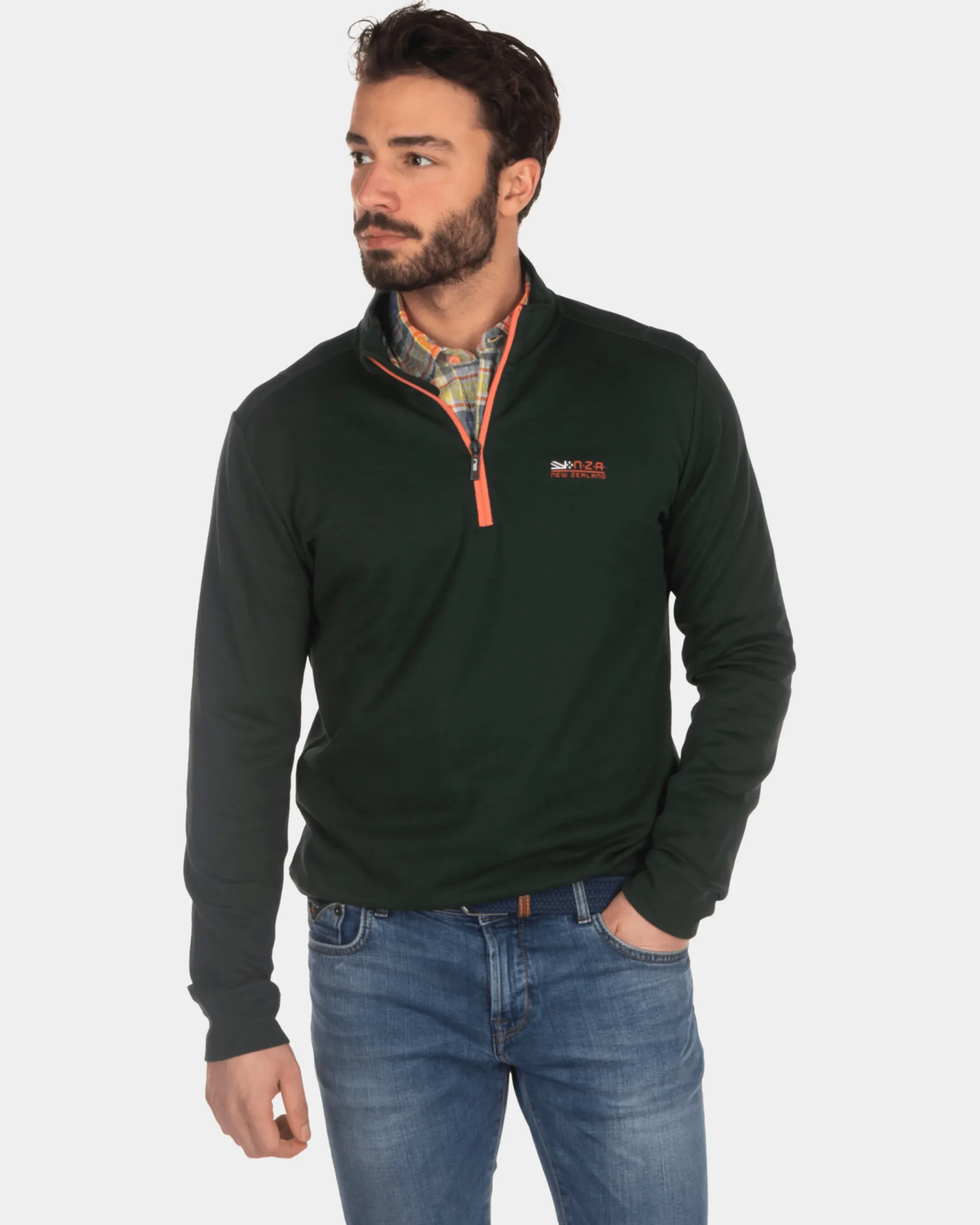 Effen sweater met halve rits – Dark Pine