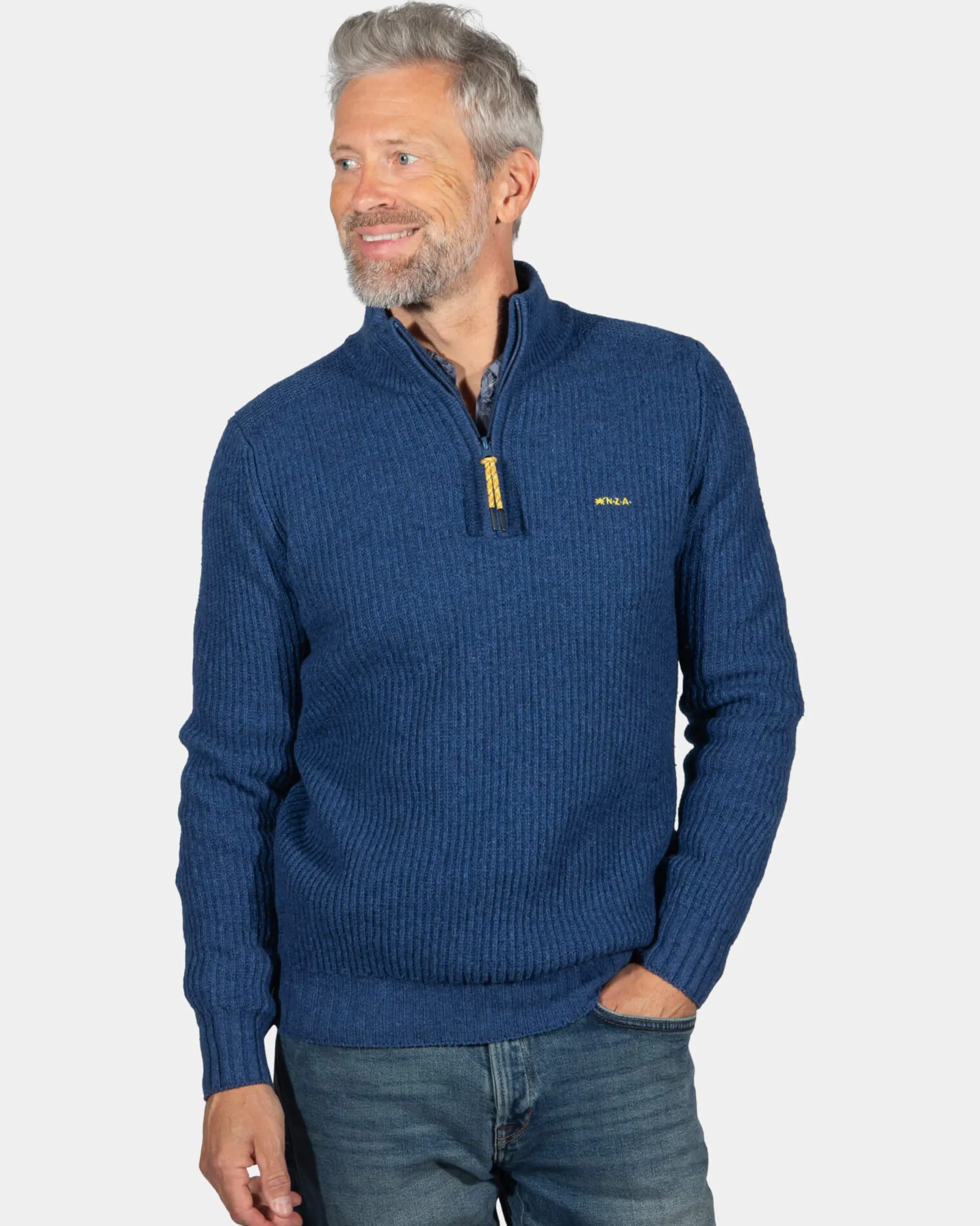Effen trui met halve rits Dry – Storm Blue