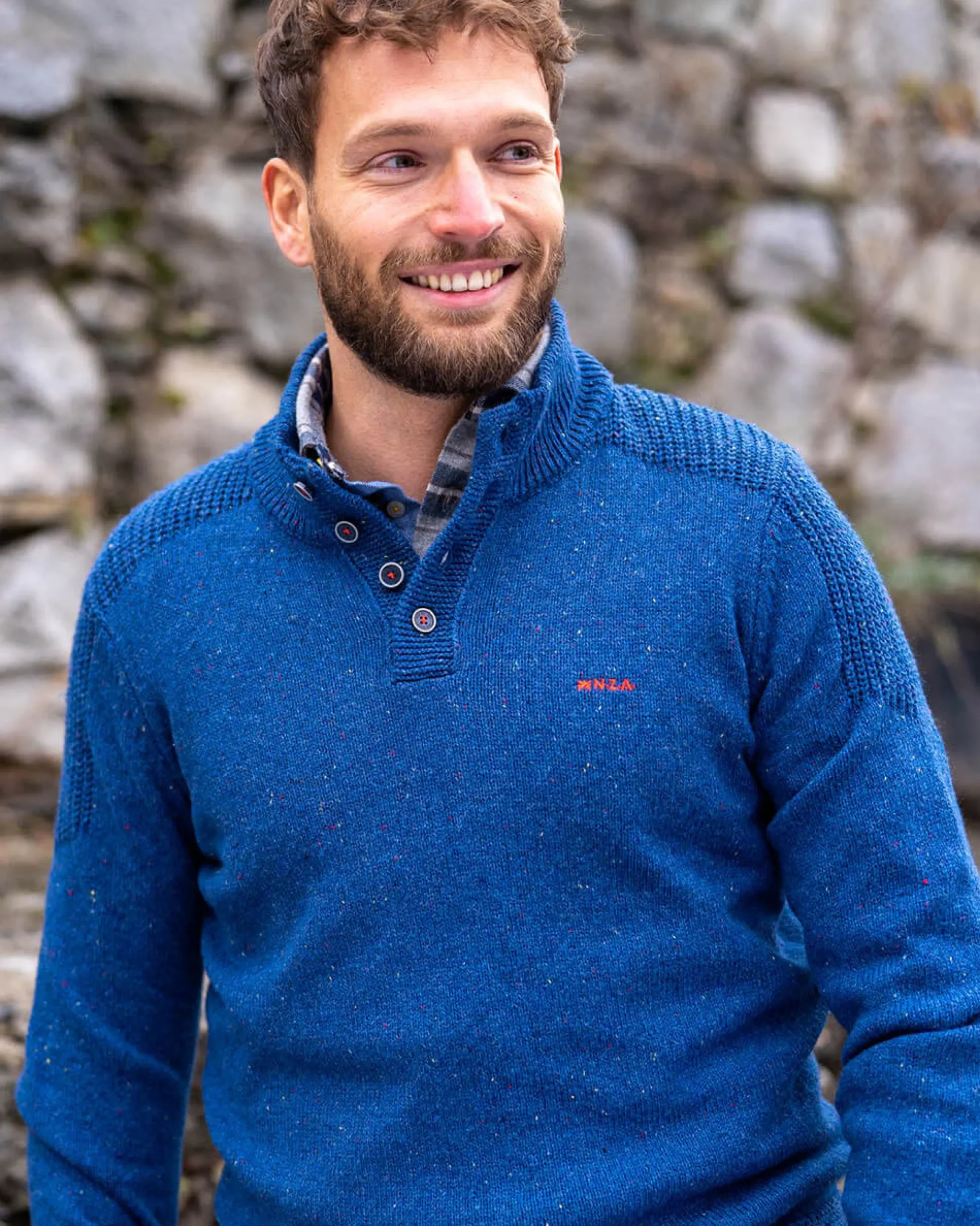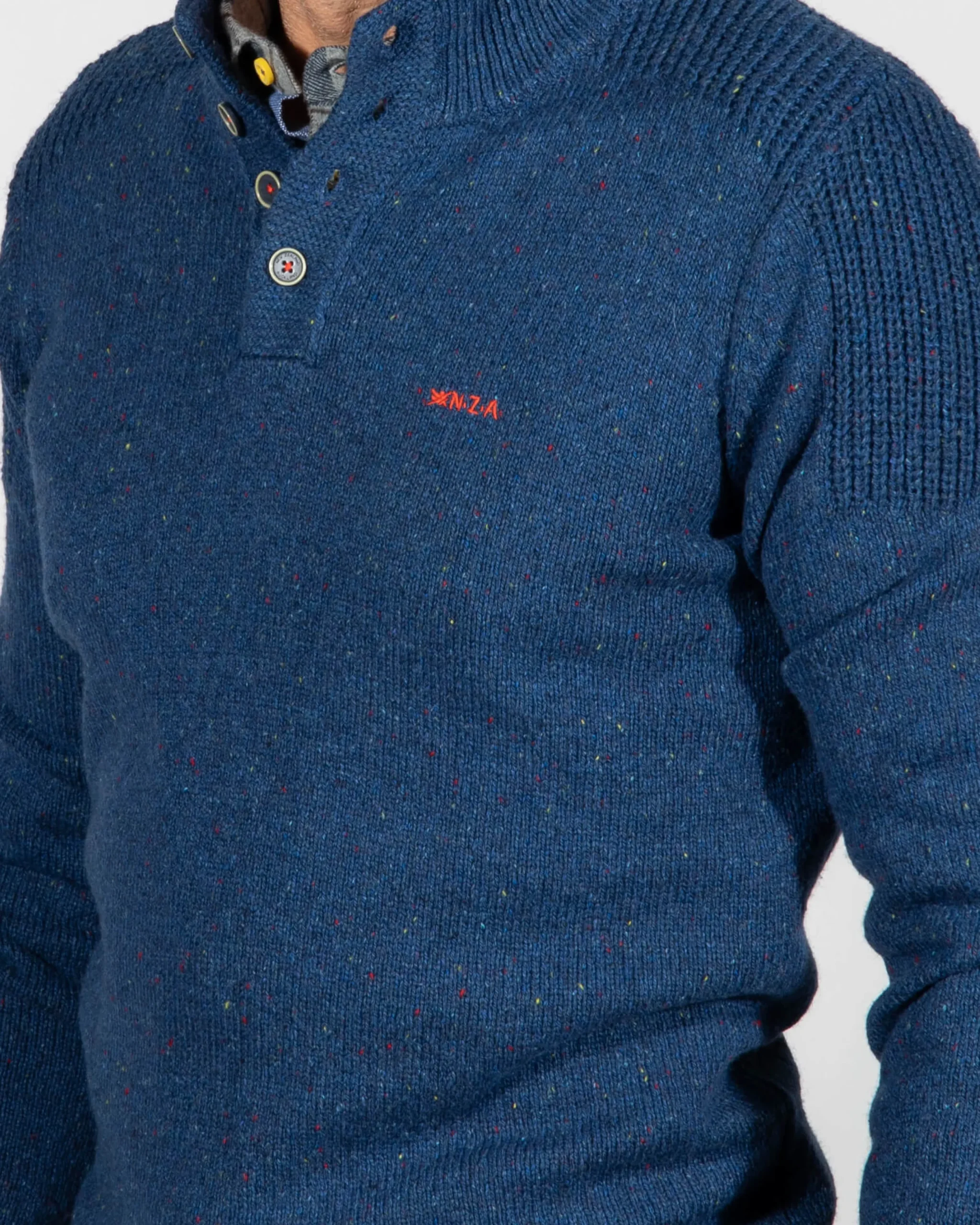 Effen trui met knopen Brownlee – Storm Blue