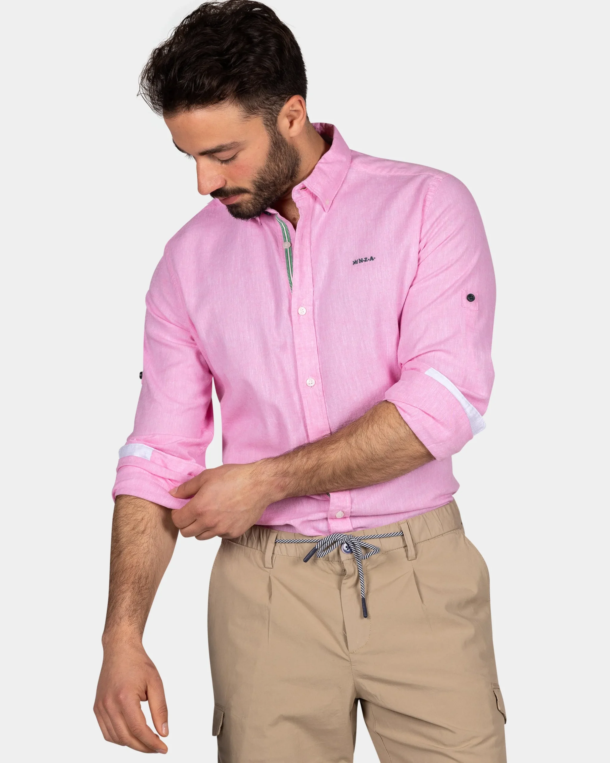 Felgekleurd effen overhemd – Bright Pink
