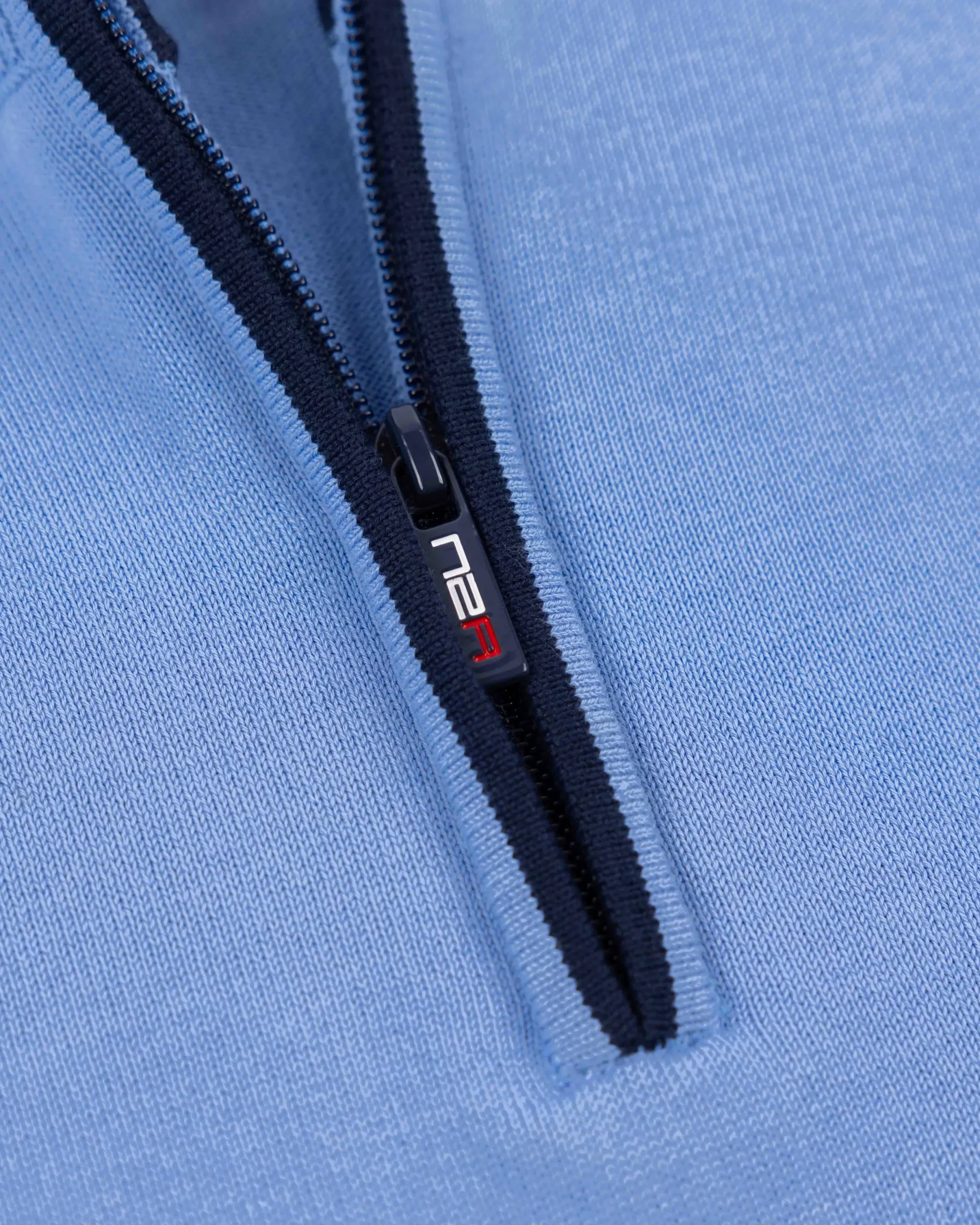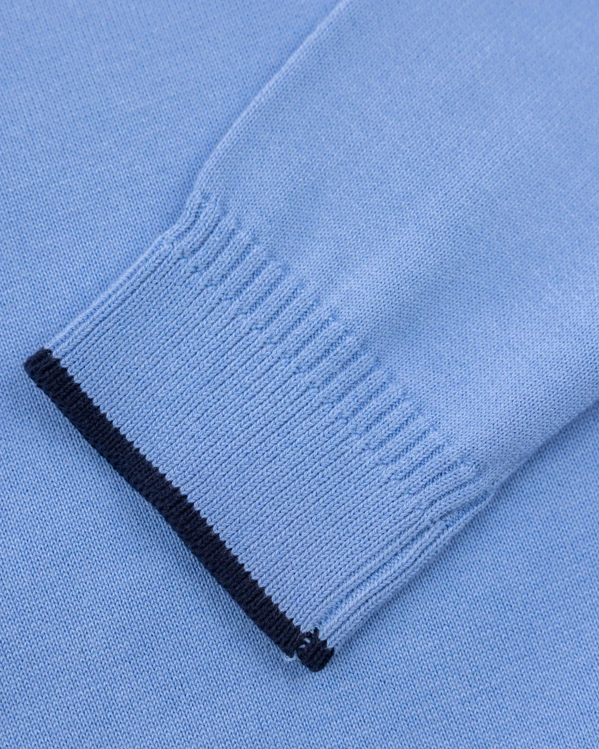 Fijngebreide blauwe trui met halve rits – Frozen Blue