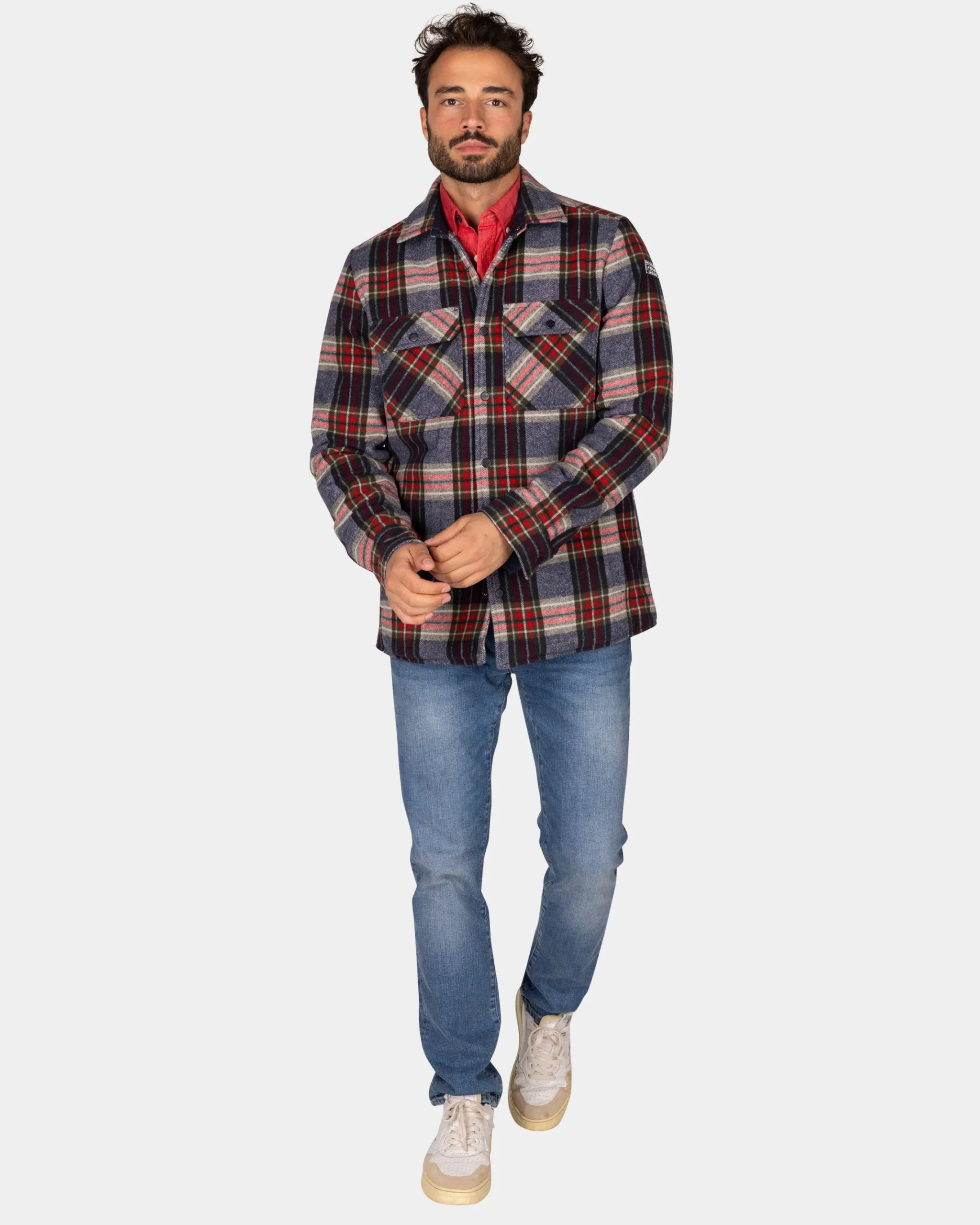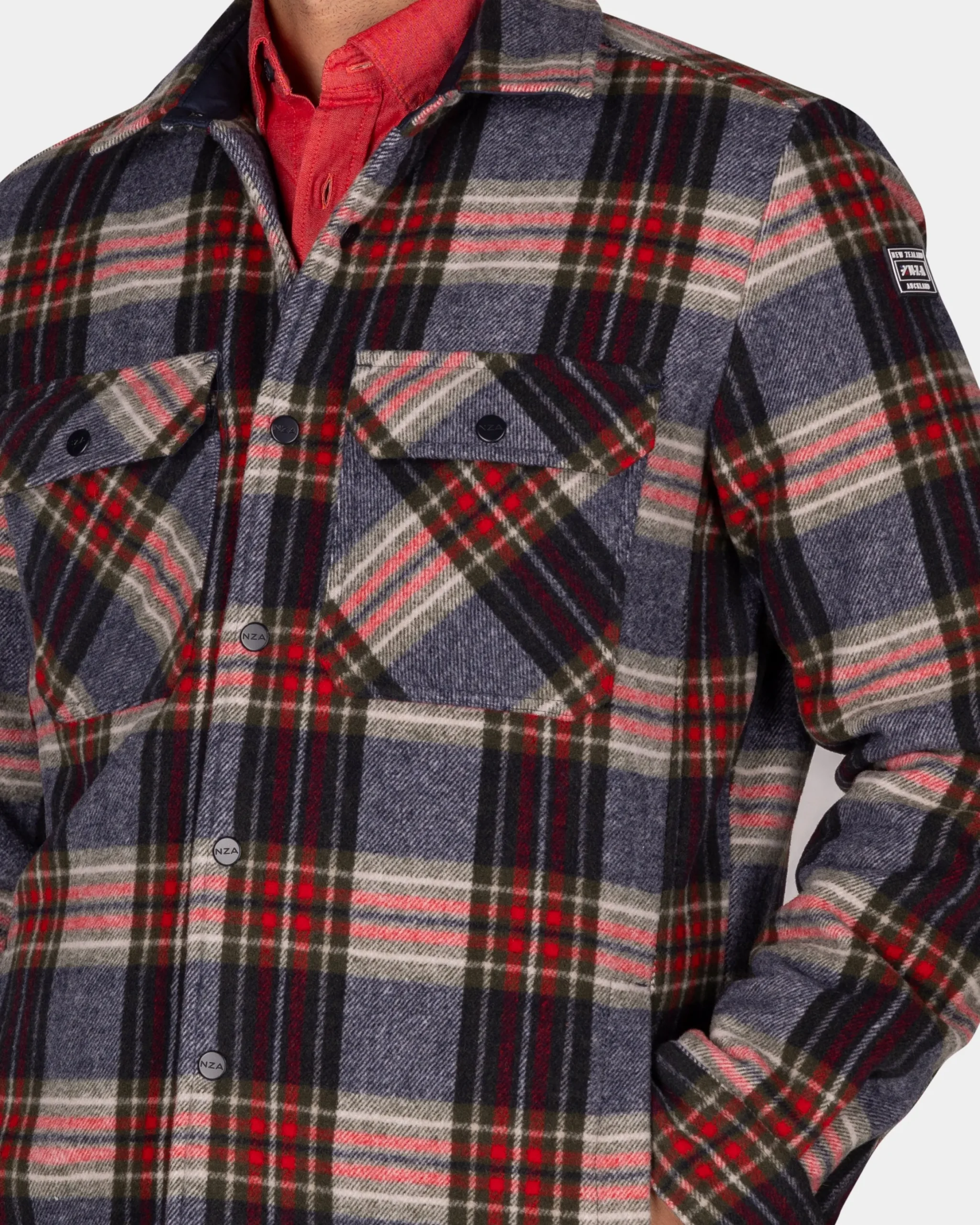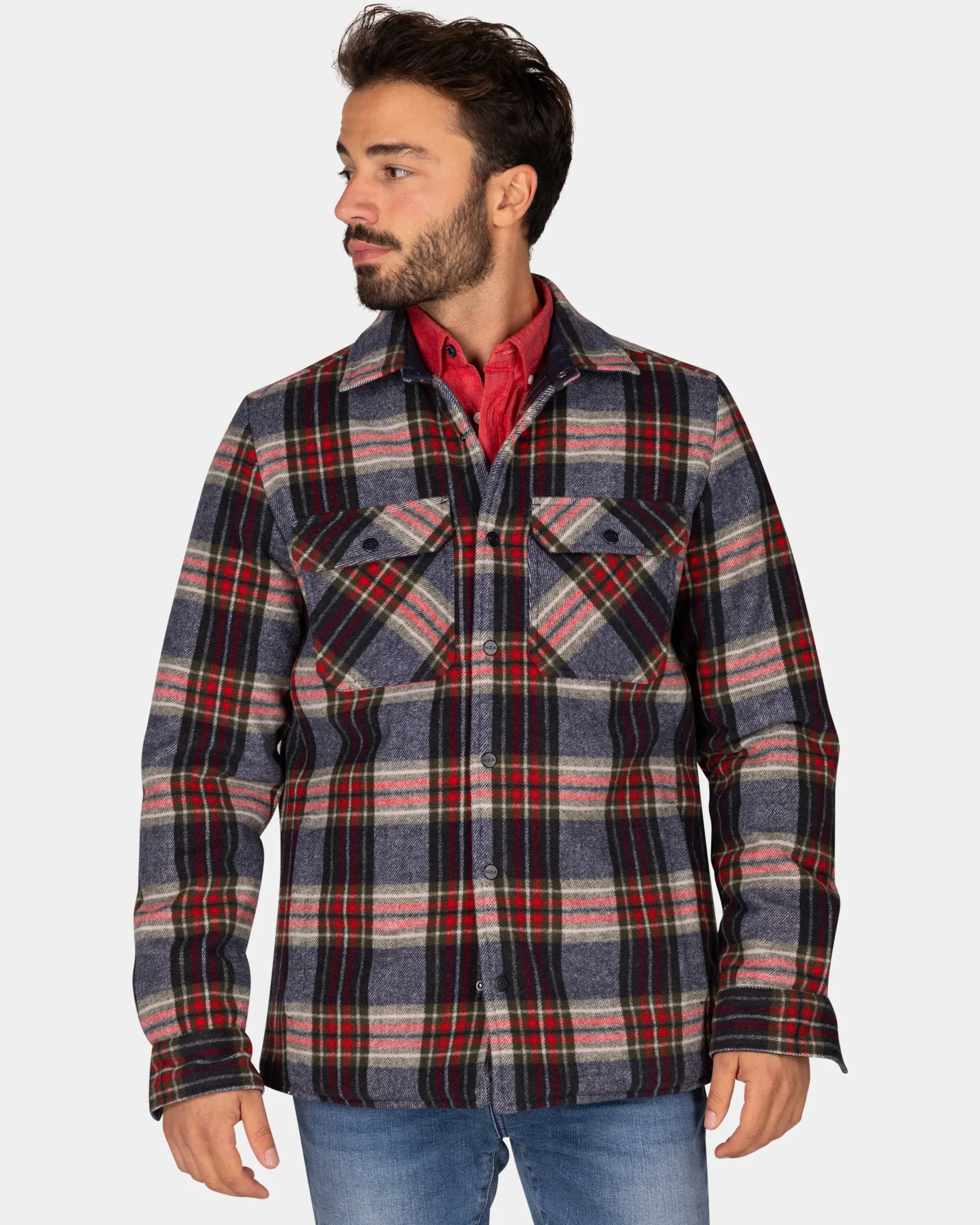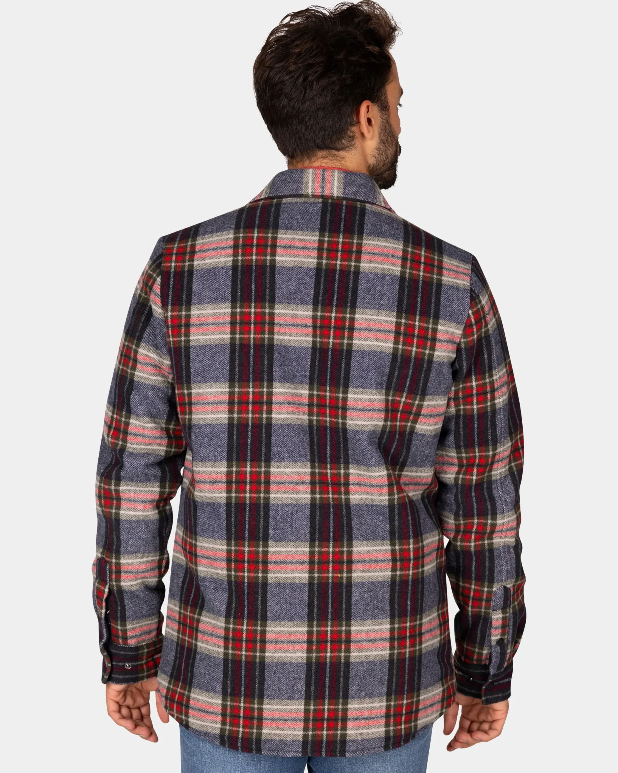 Flannellen gewateerd overhemd grijs groen rood – Winter Navy