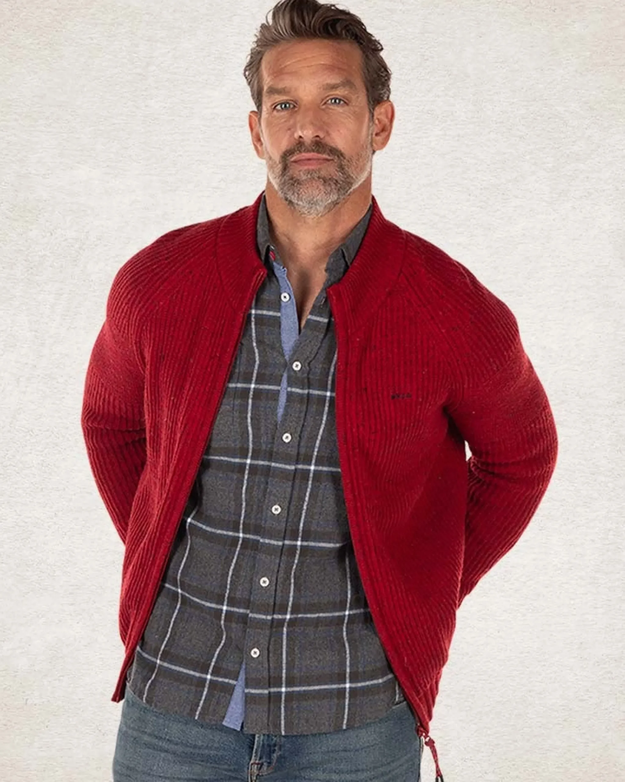 Gebreid vest van katoen en wol – Carmine red