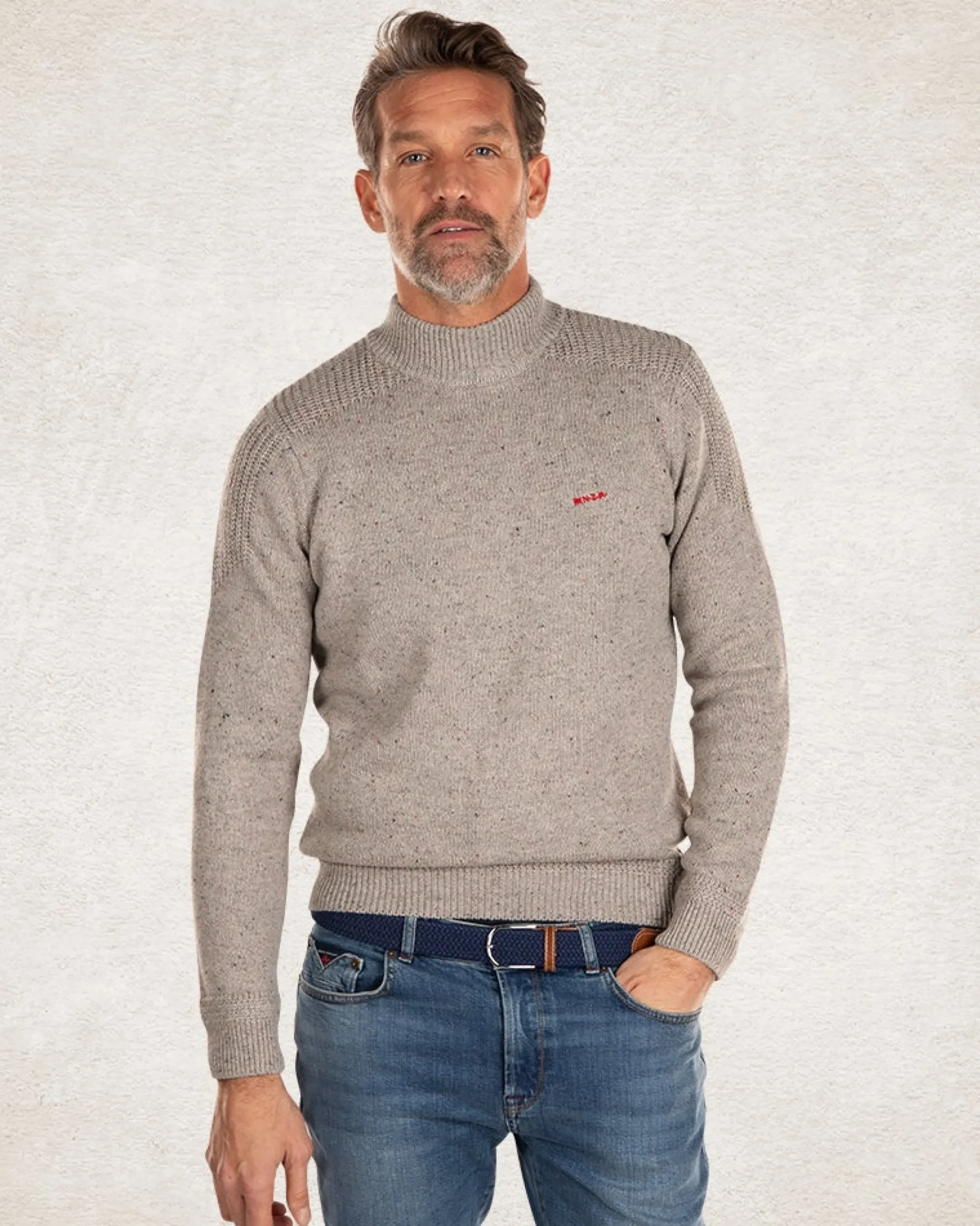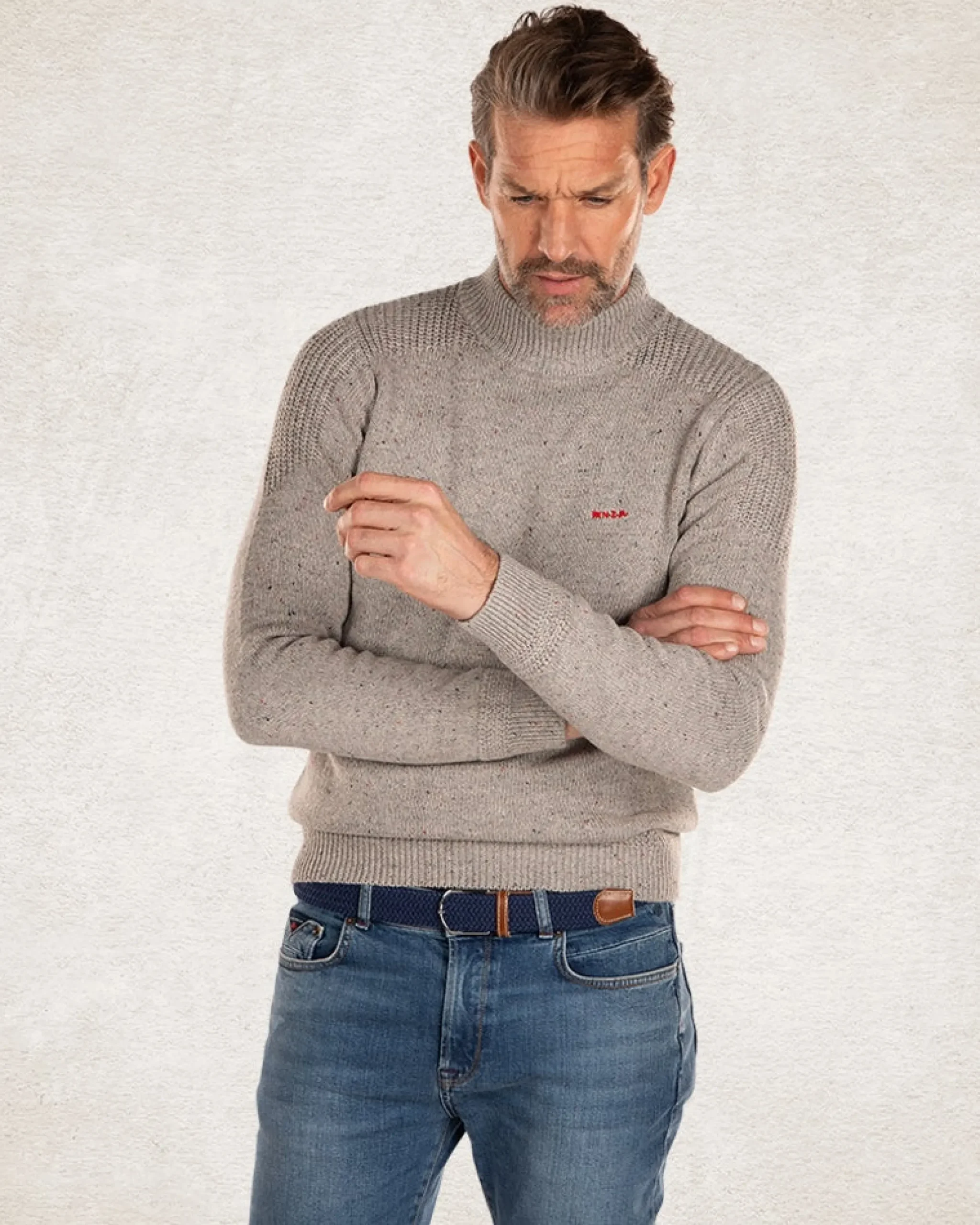 Gebreide effen coltrui – Grey Melange