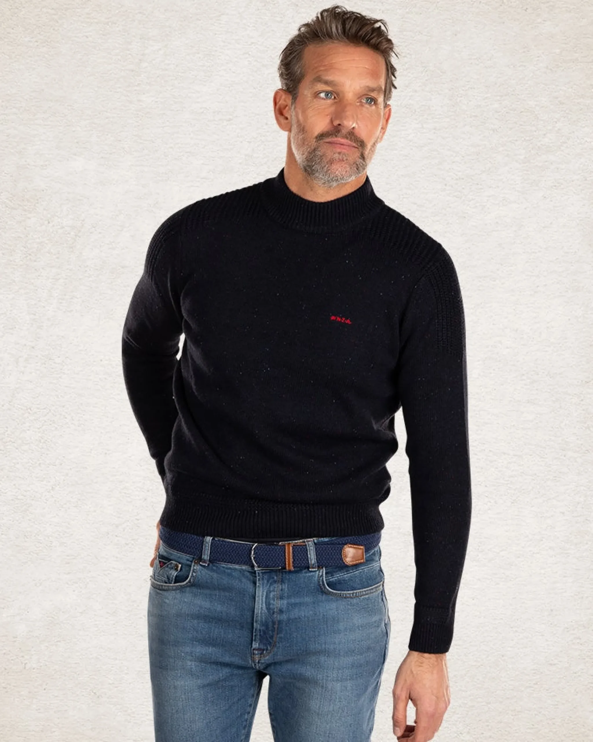 Gebreide effen coltrui – Pitch navy