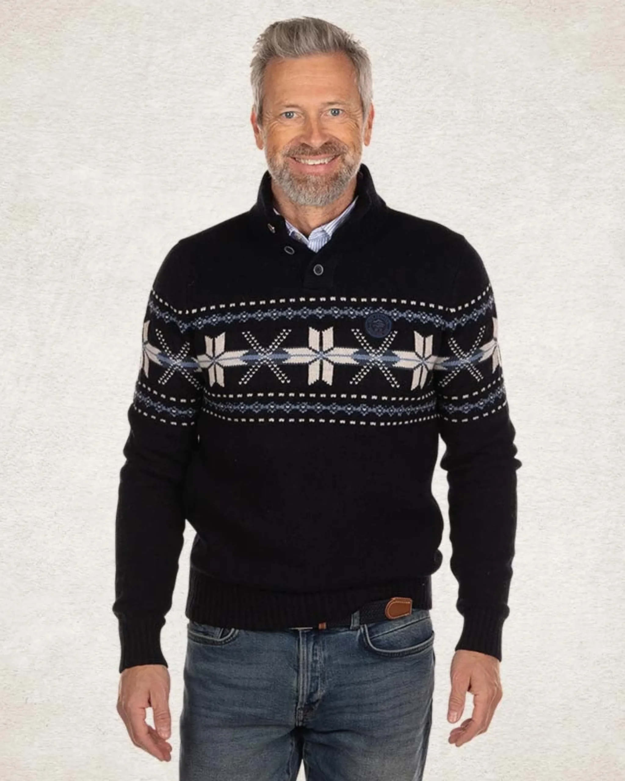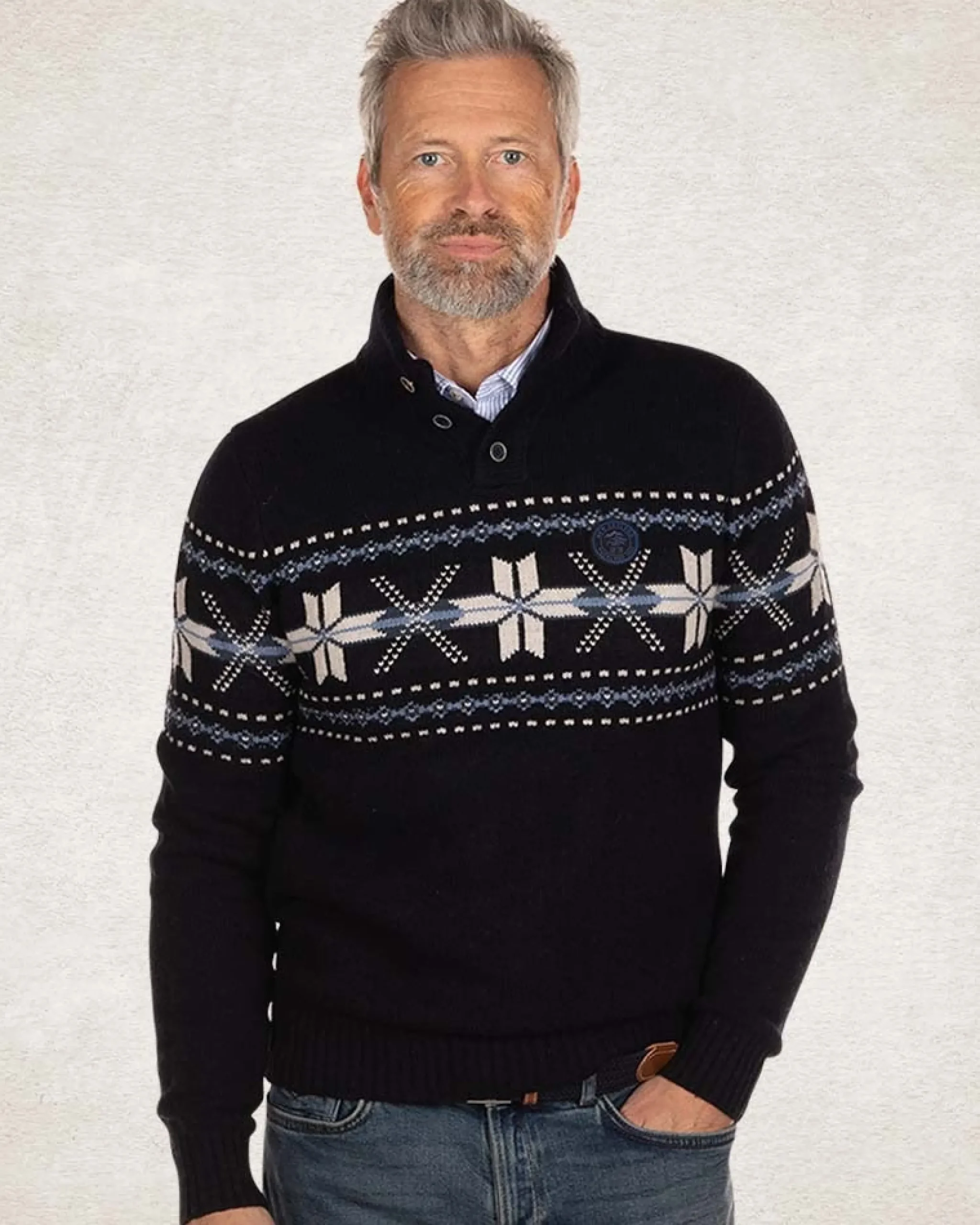 Gebreide trui met halve knoopssluiting – Pitch Navy