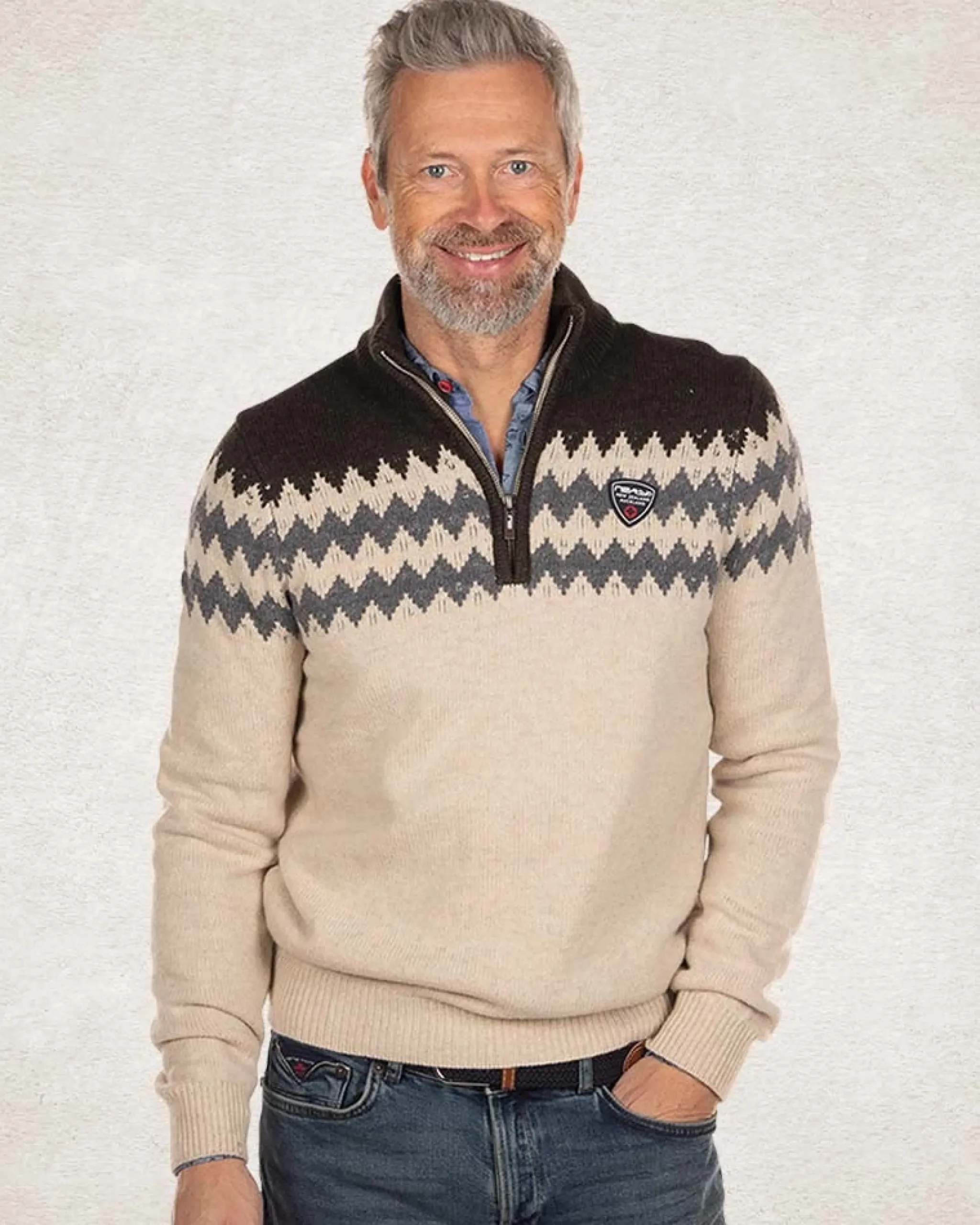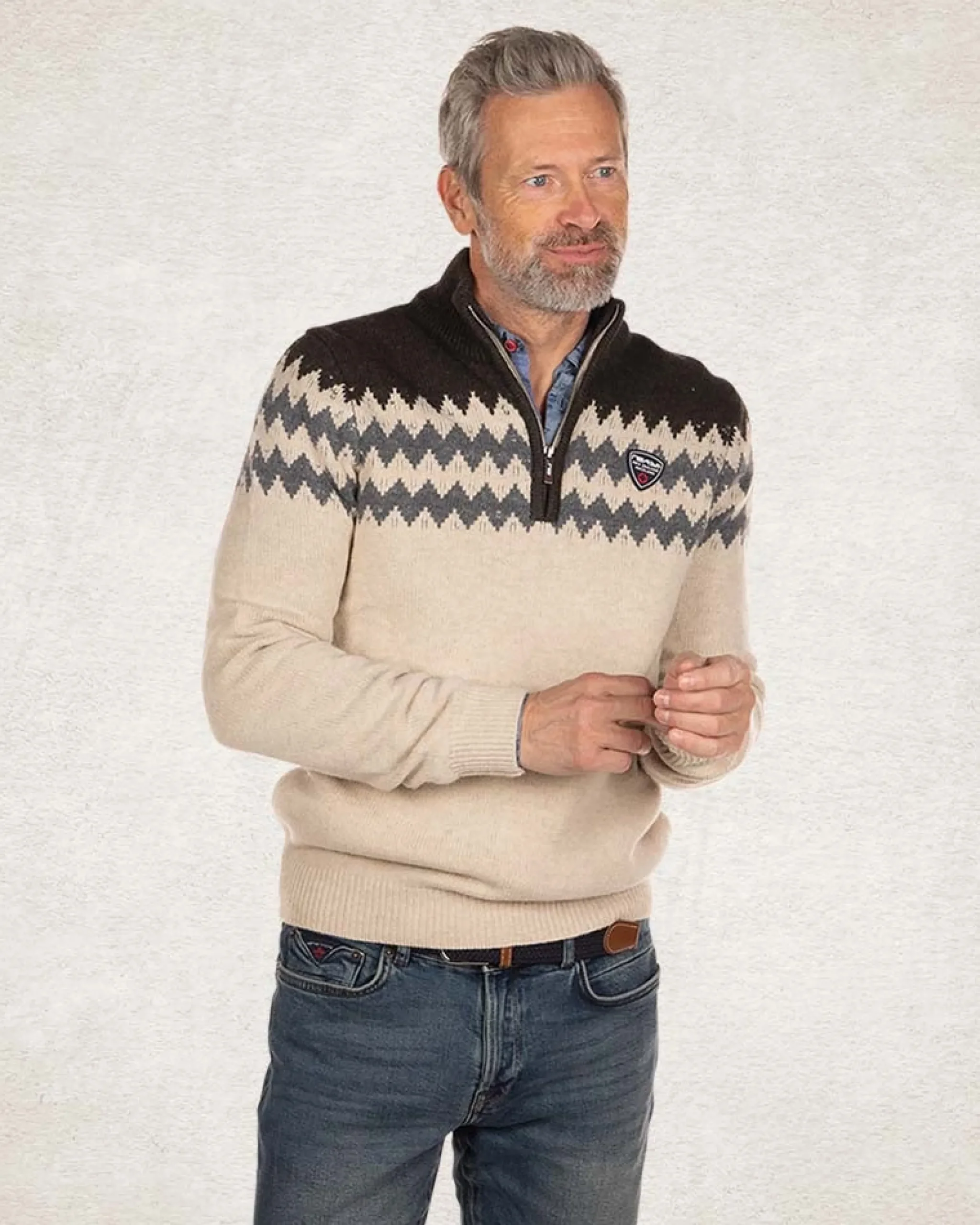 Gebreide trui met halve rits – Milky Ecru