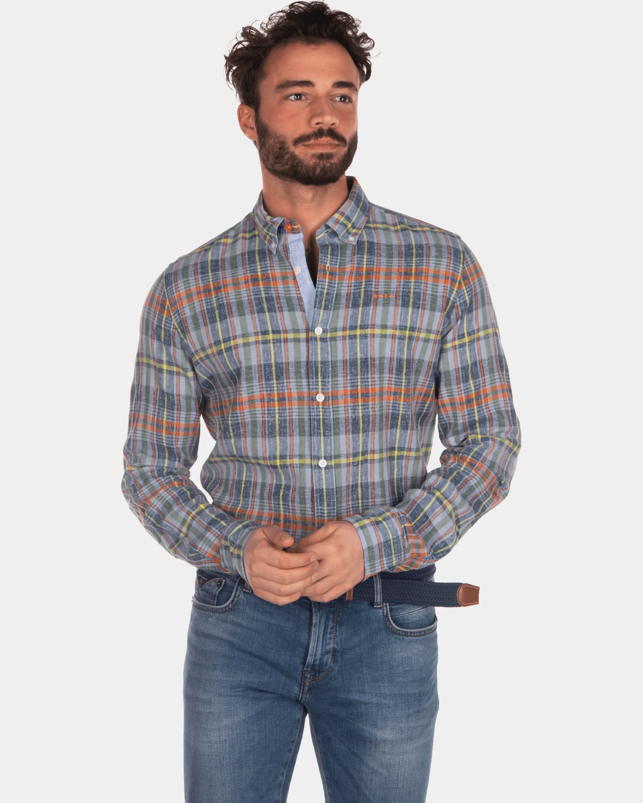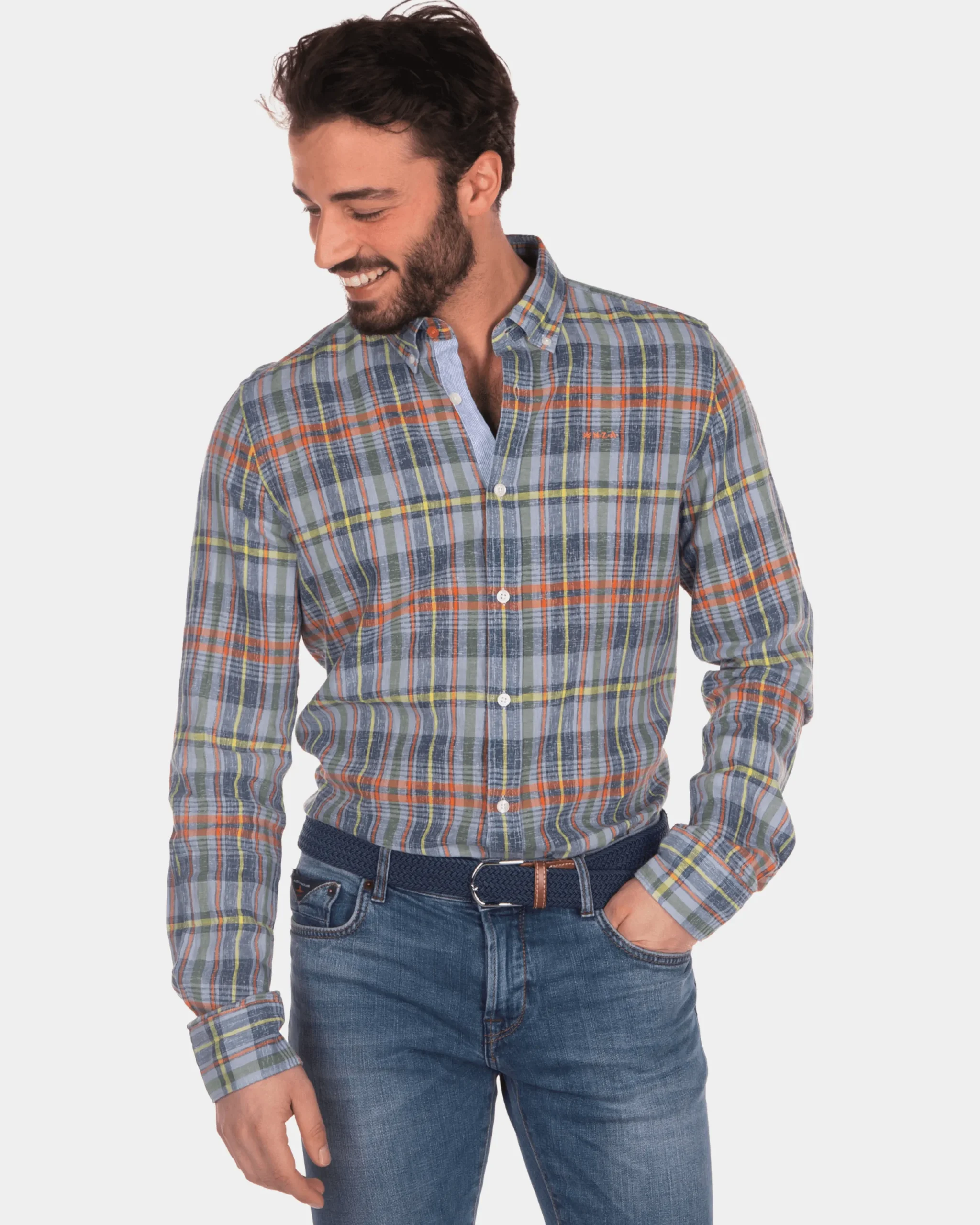 Geruit linnen overhemd blauw geel rood – Blue Multicolour