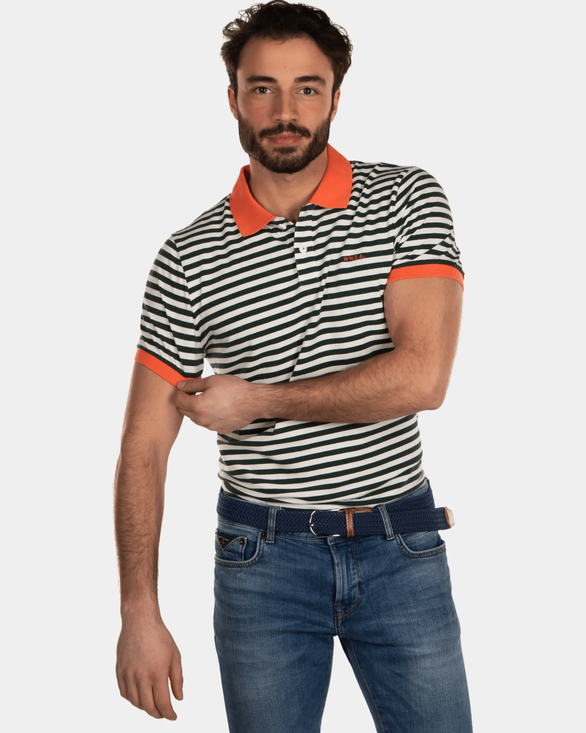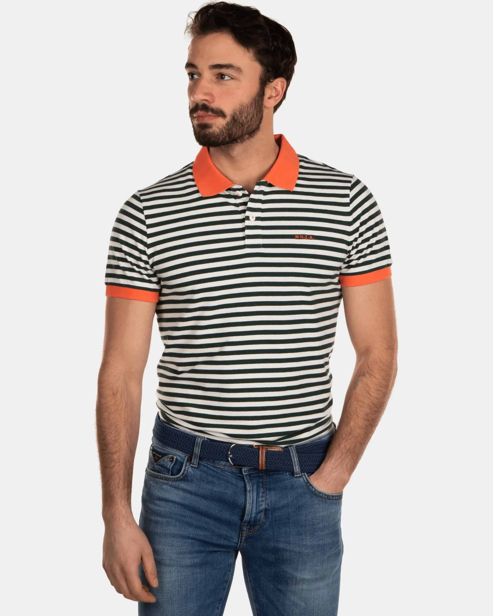 Gestreepte katoenen polo – Dark Pine