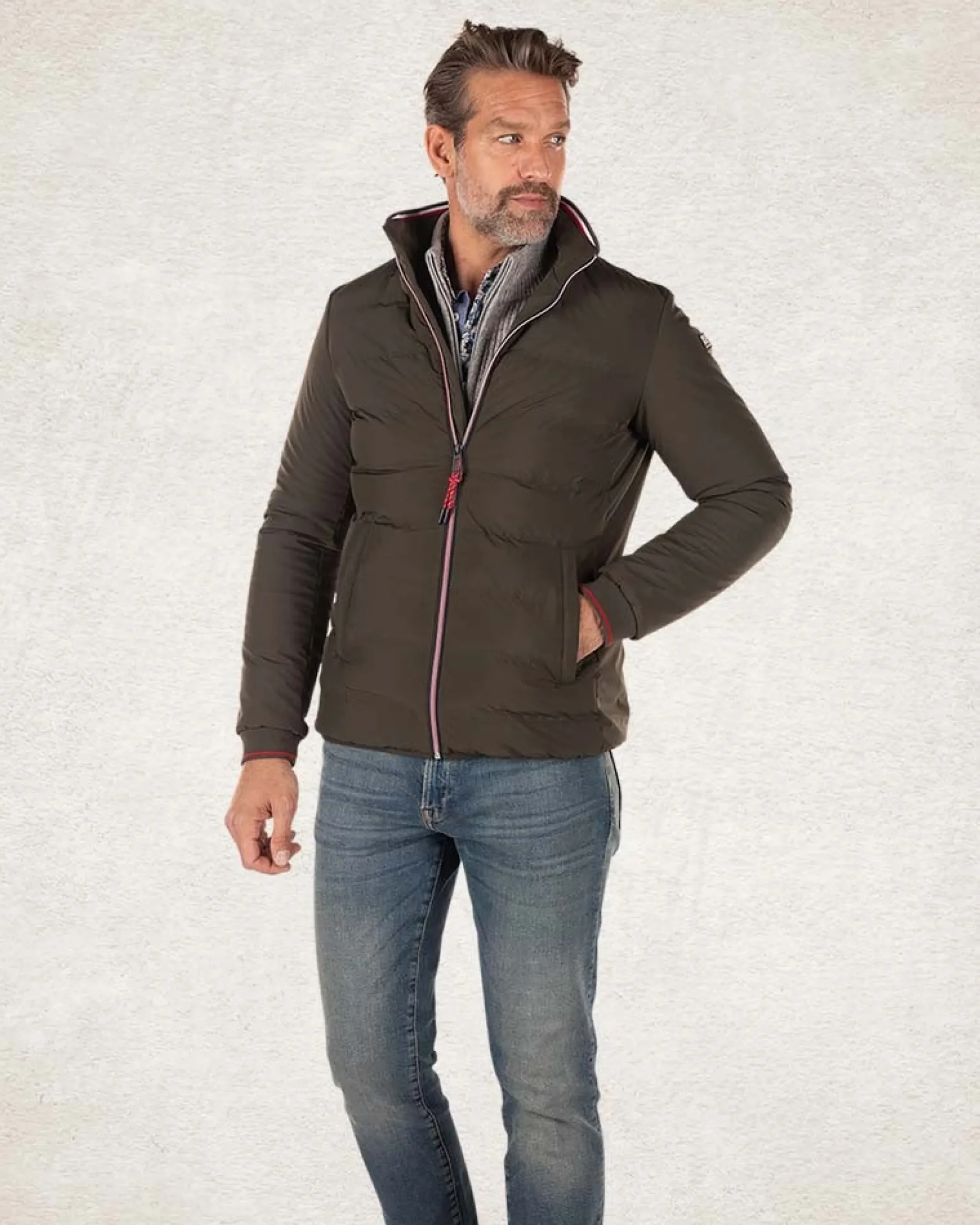 Gewatteerde effen jas – Smoked Green