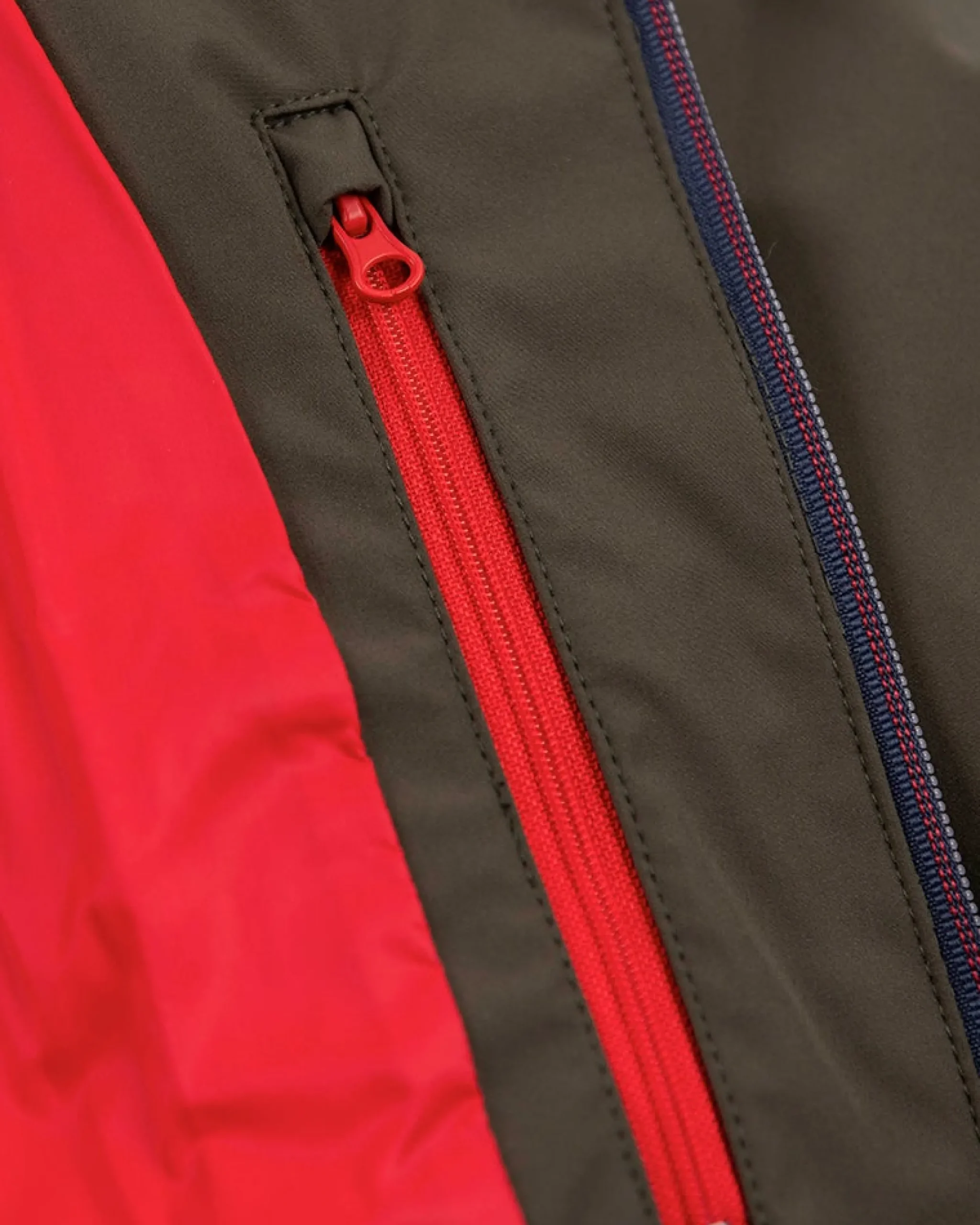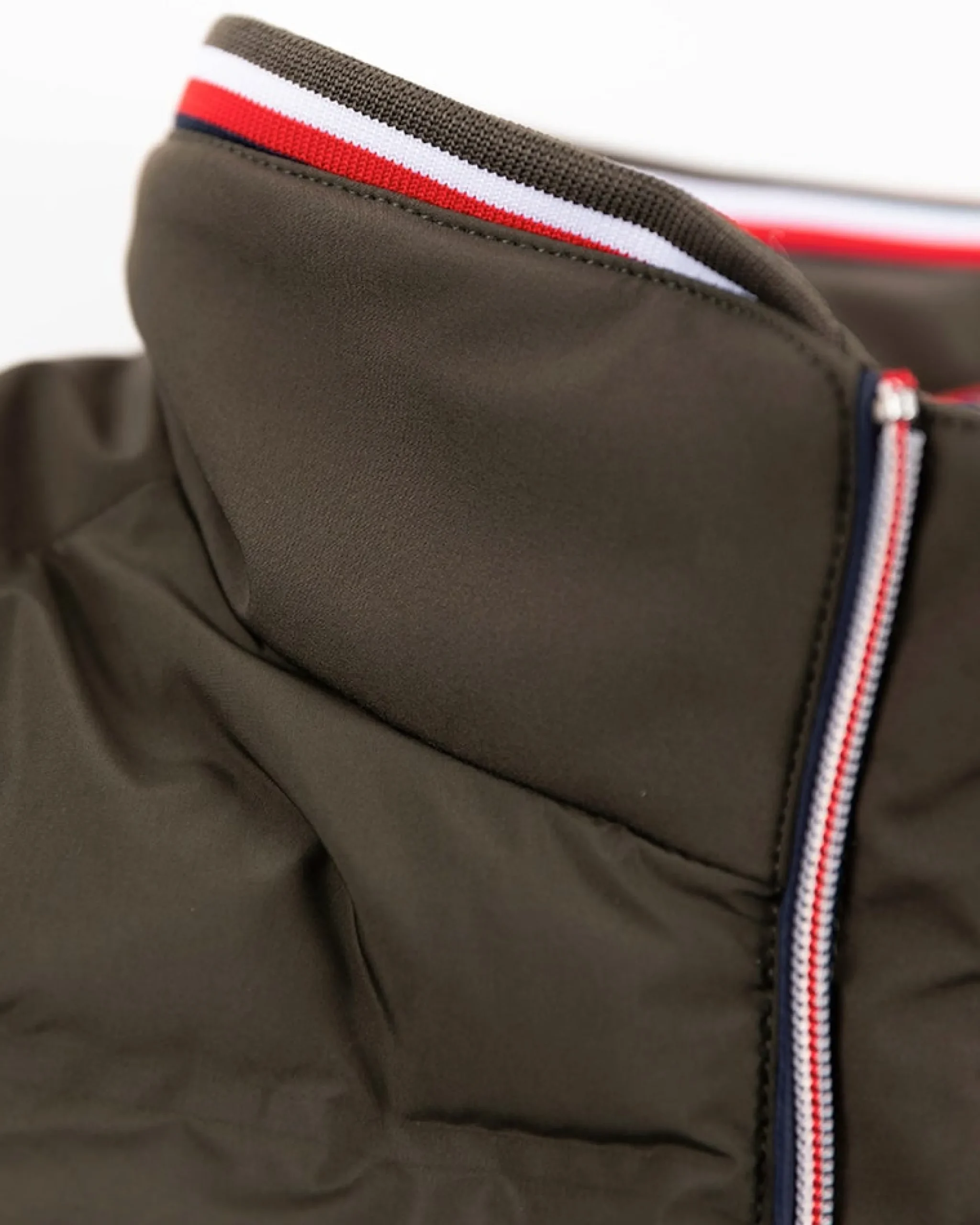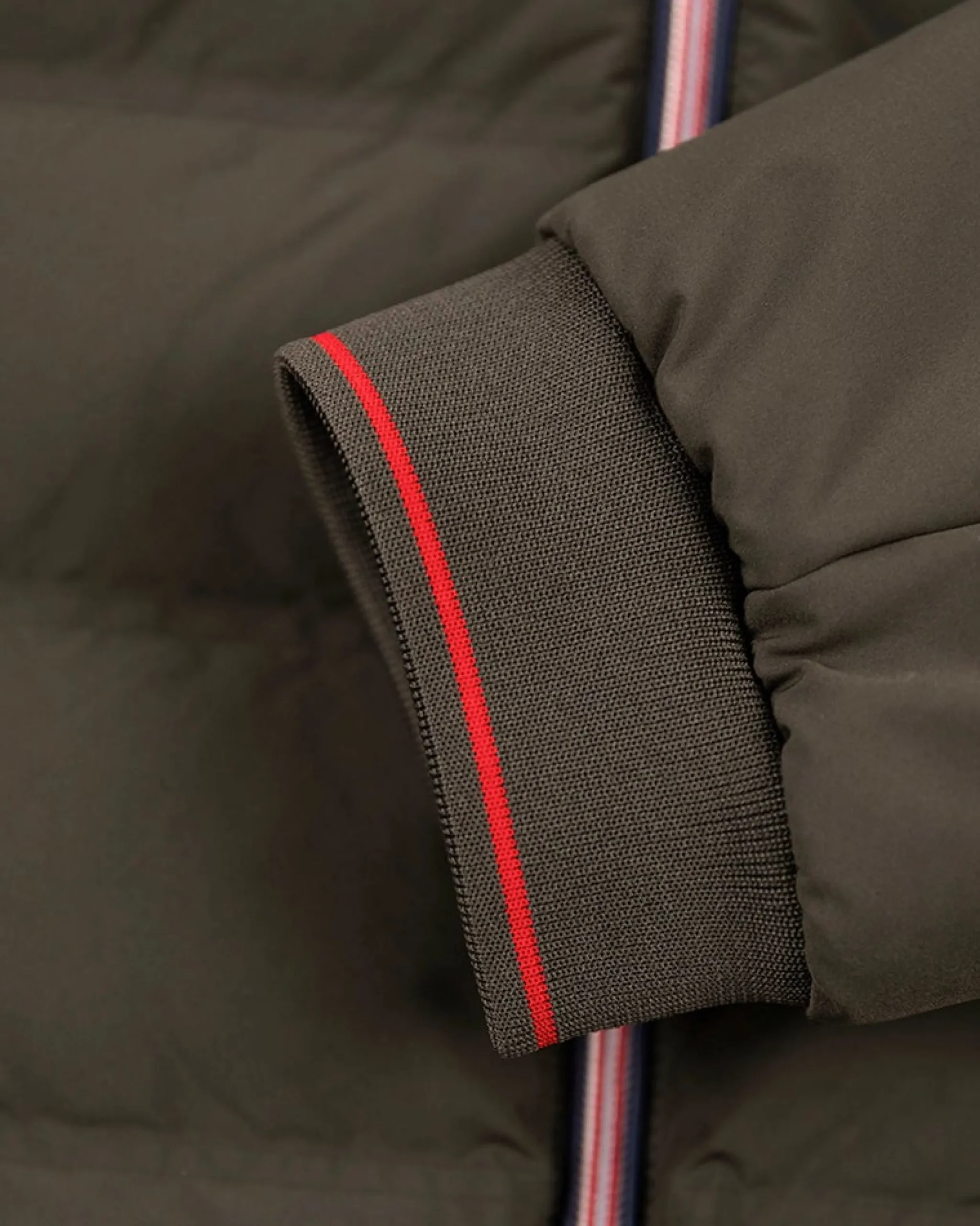 • Rib manchetten en onderzoom met accent kleurige bies