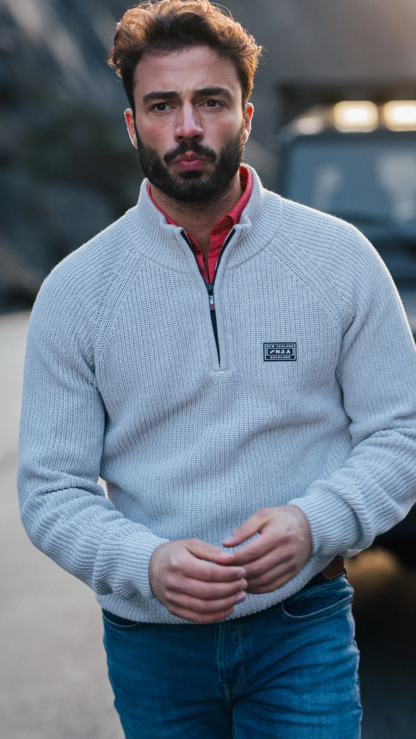 Grijze katoenen trui met halve rits – Grey Melange