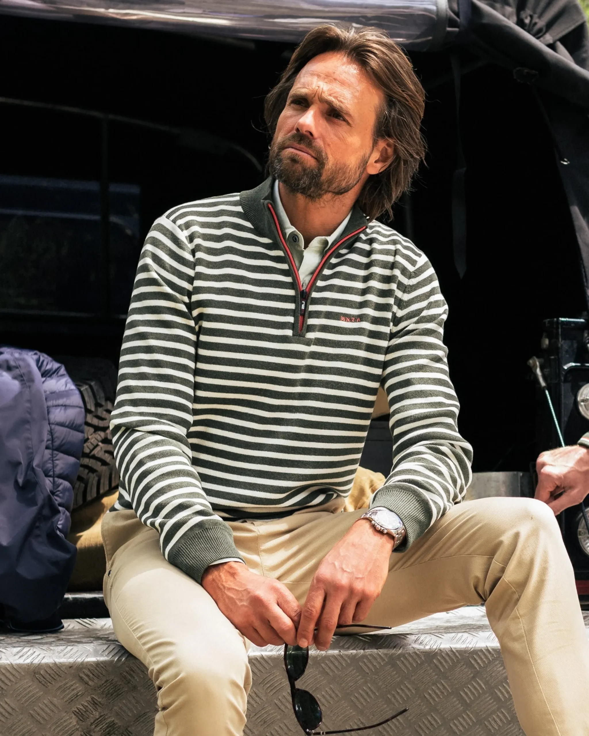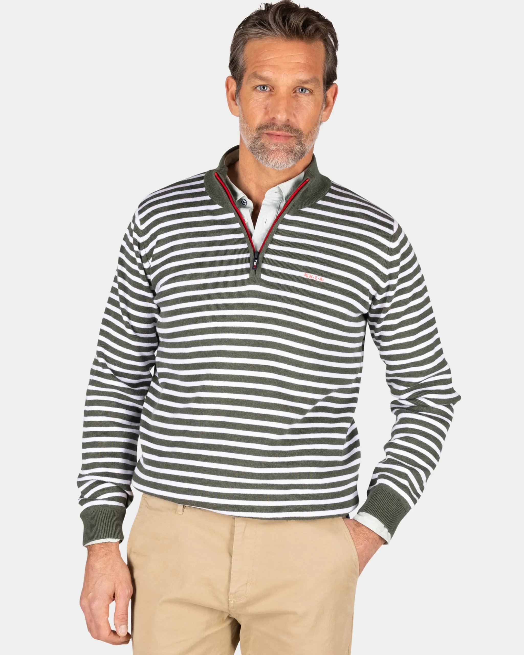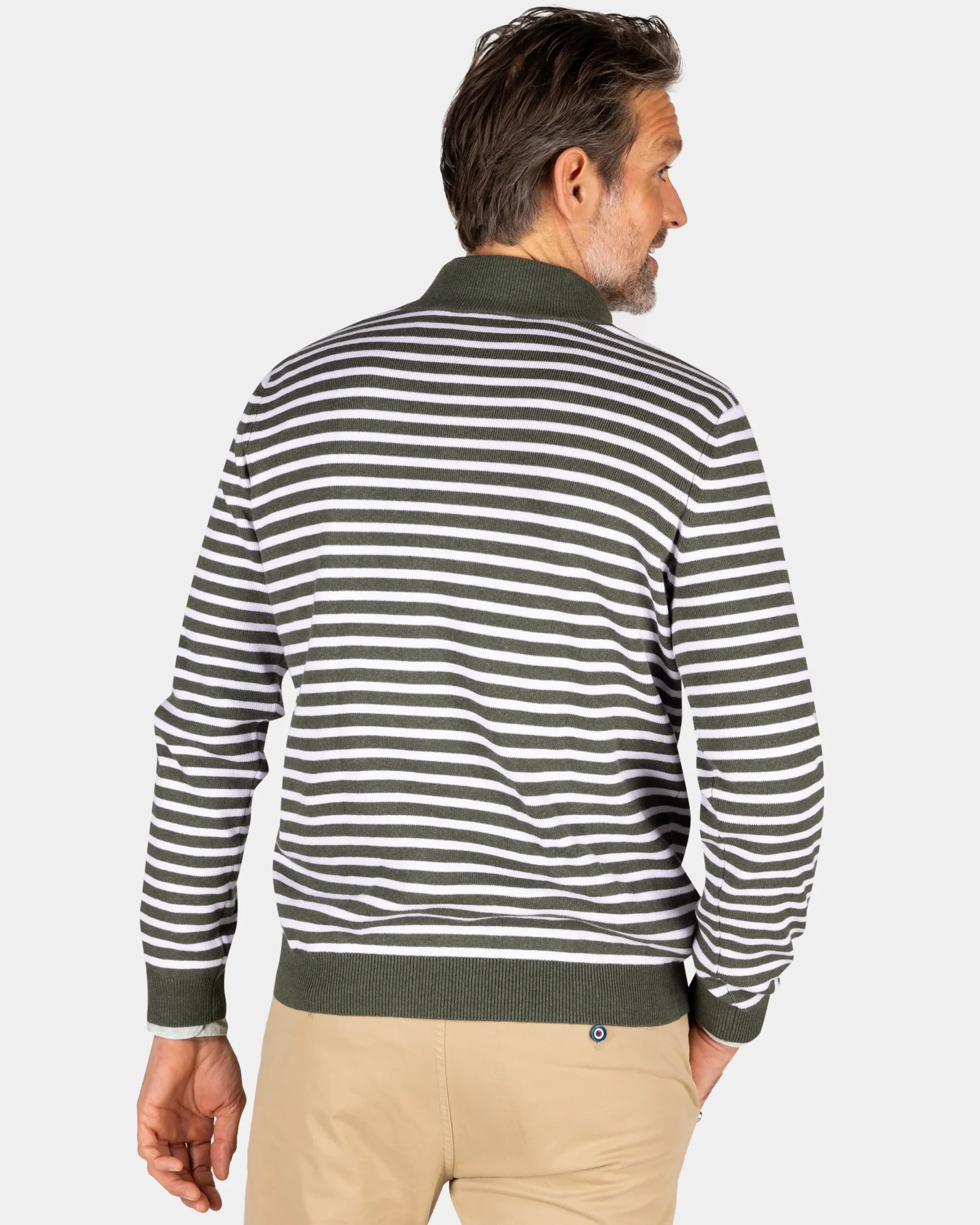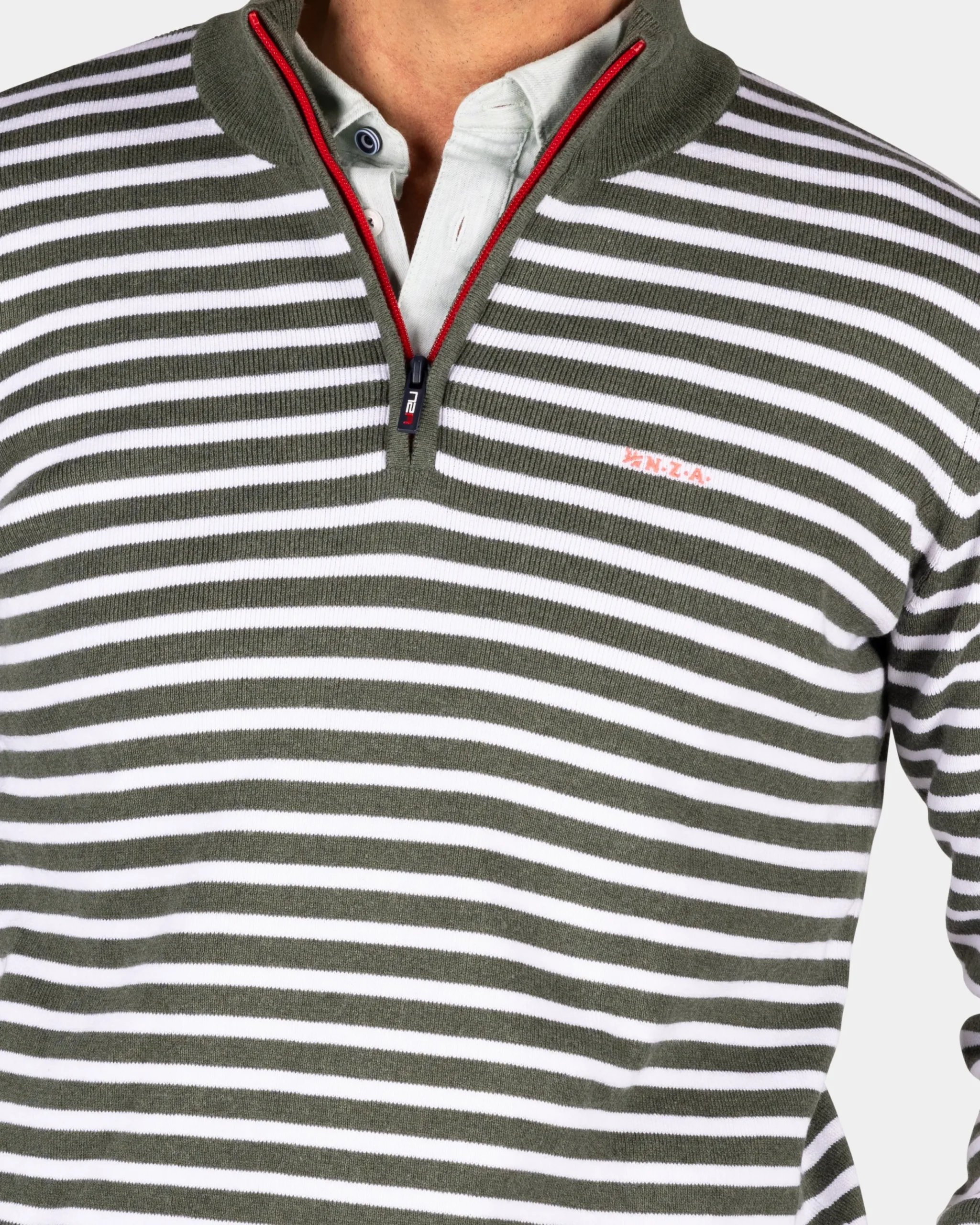 Groene gestreepte trui met halve rits