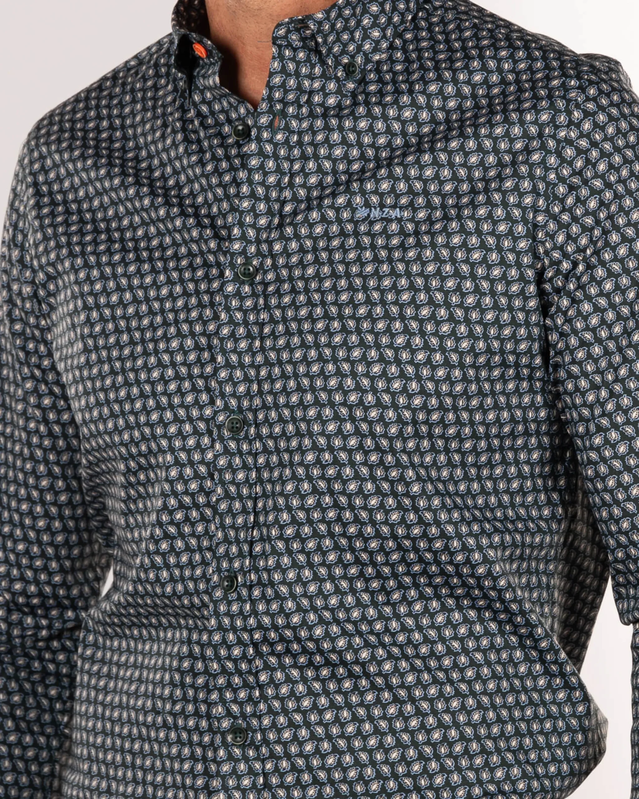 Katoen elastaan overhemd met lange mouw – Crushing Green