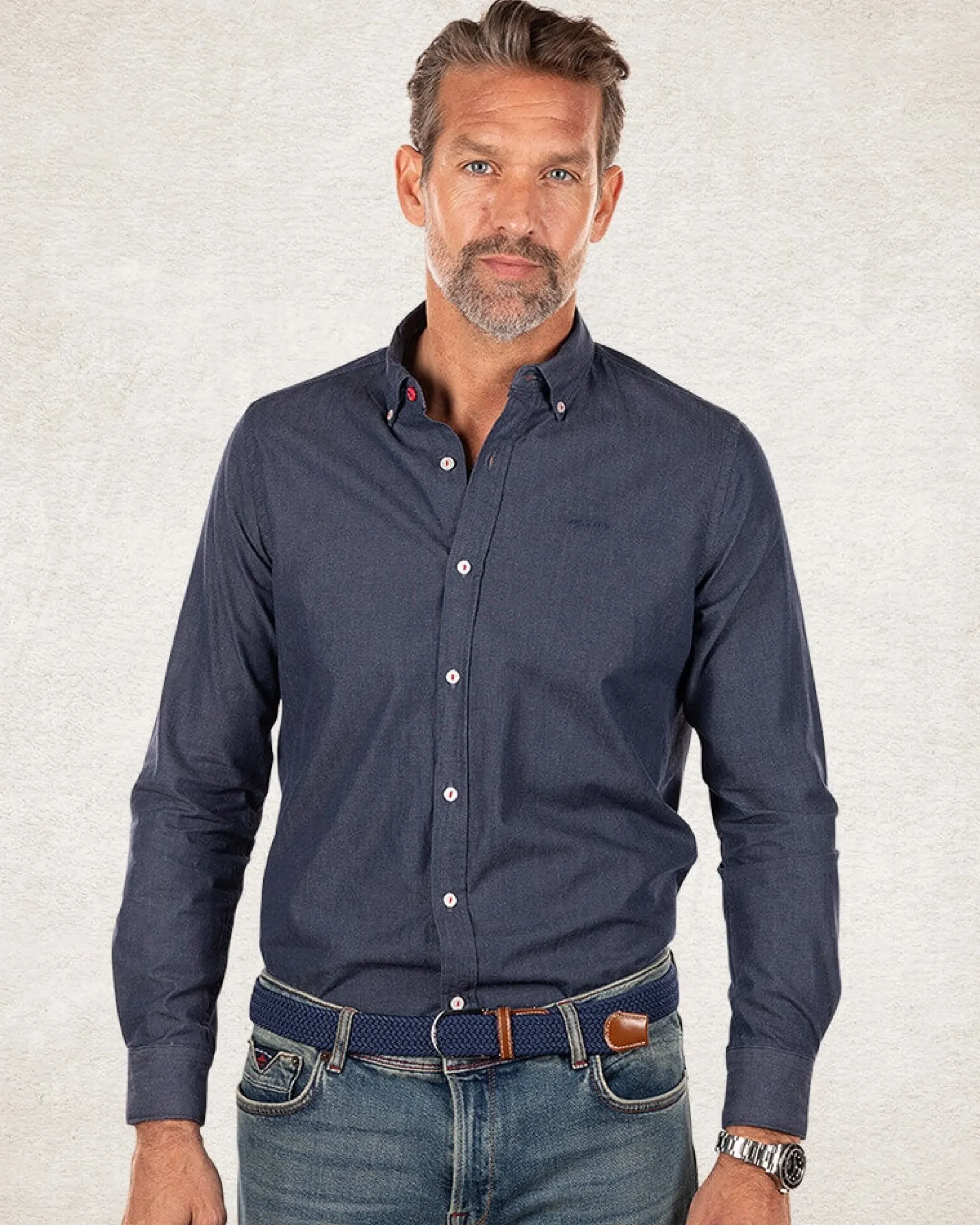 Katoenen effen overhemd – Pitch navy