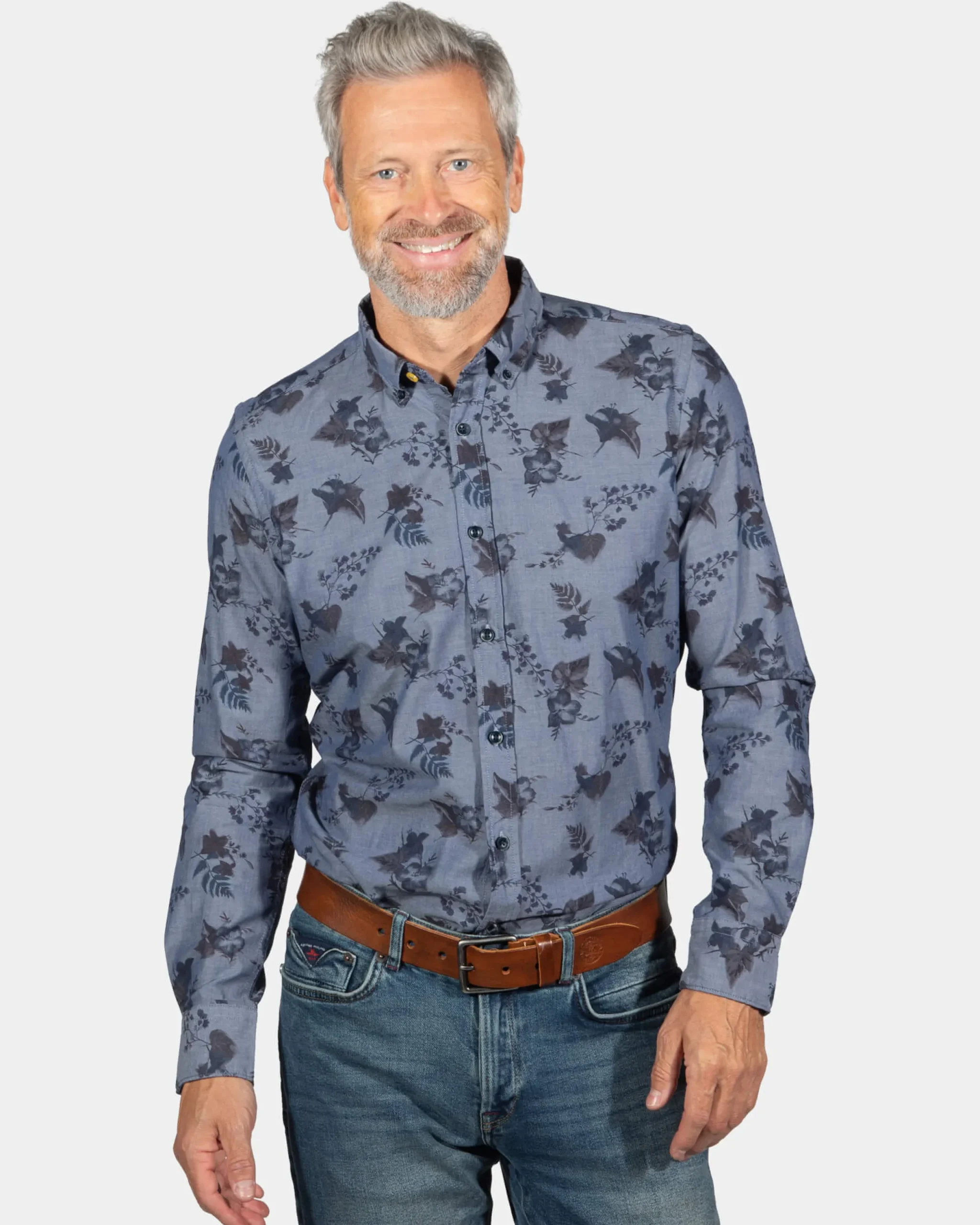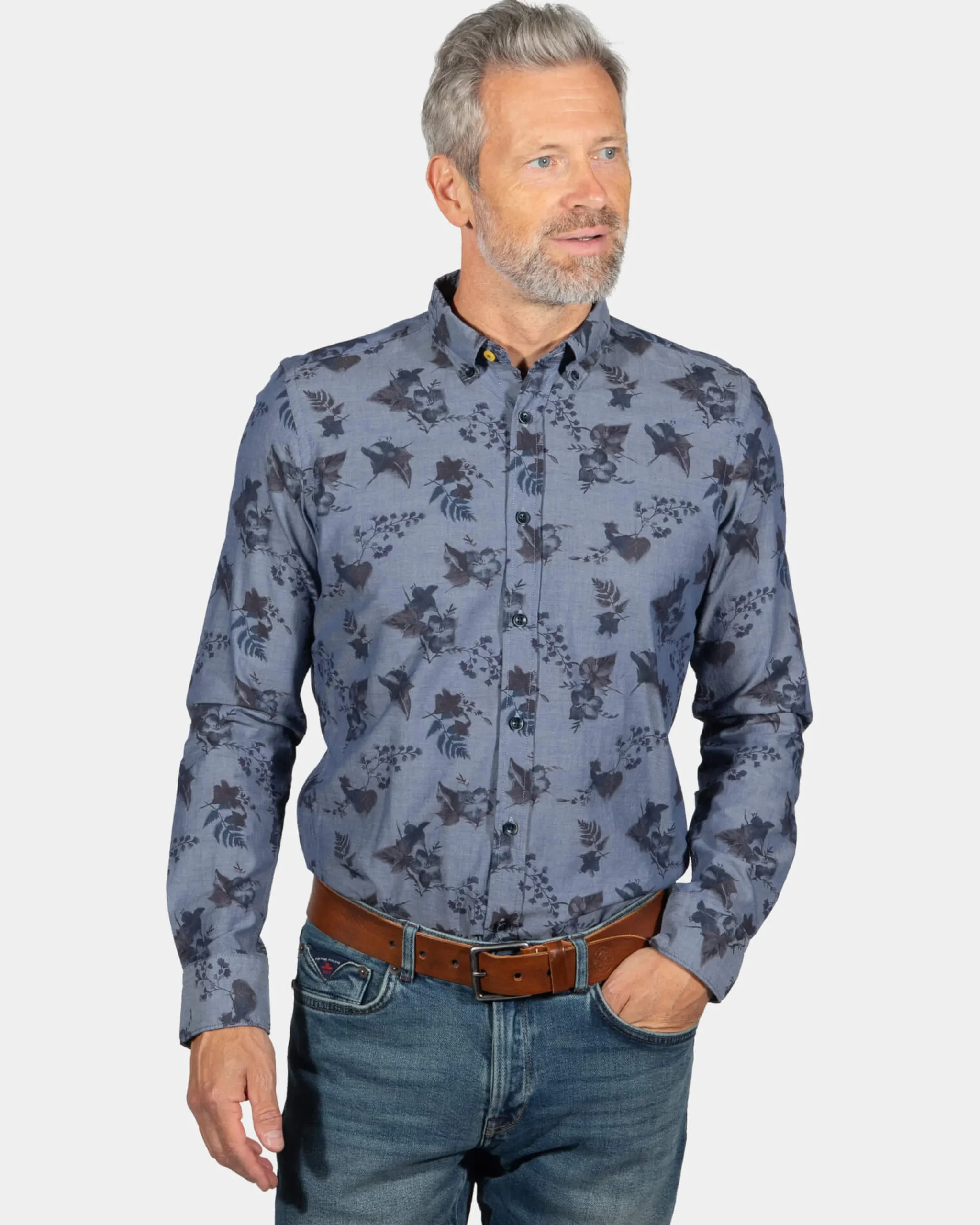 Katoenen overhemd met bloemenprint South Mavora – Storm Blue