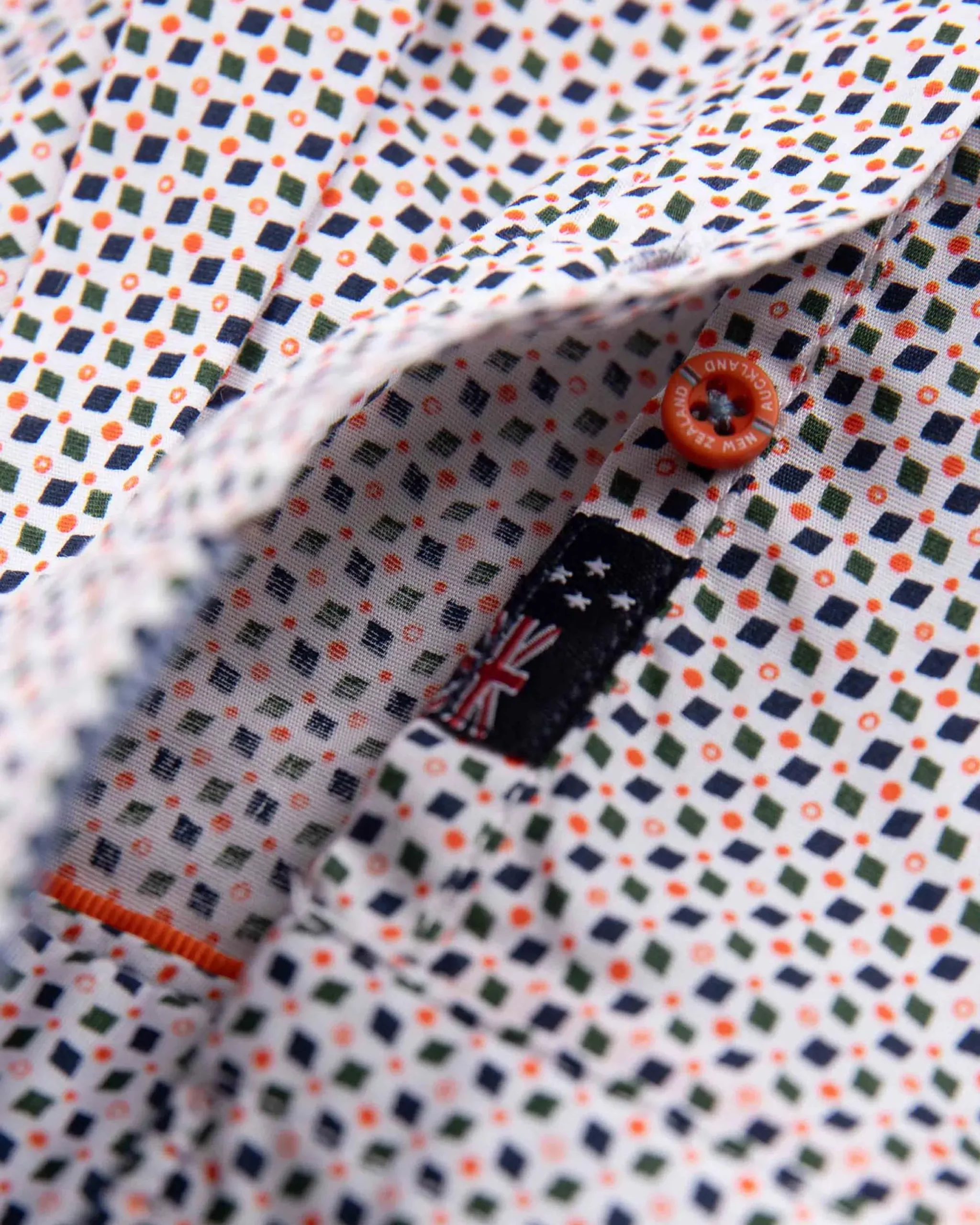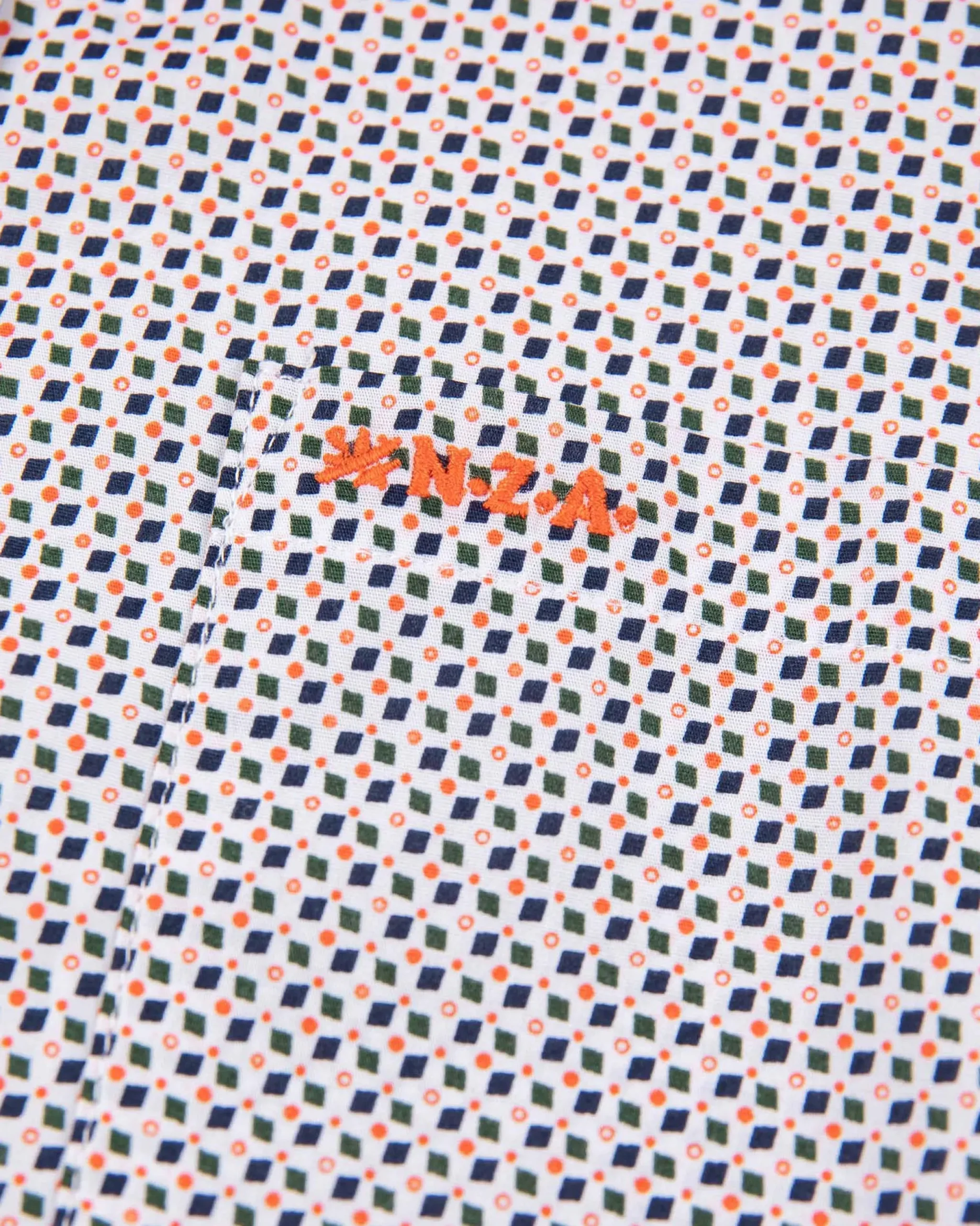 - Accentkleurige tape aan de binnenkant van de halslijn