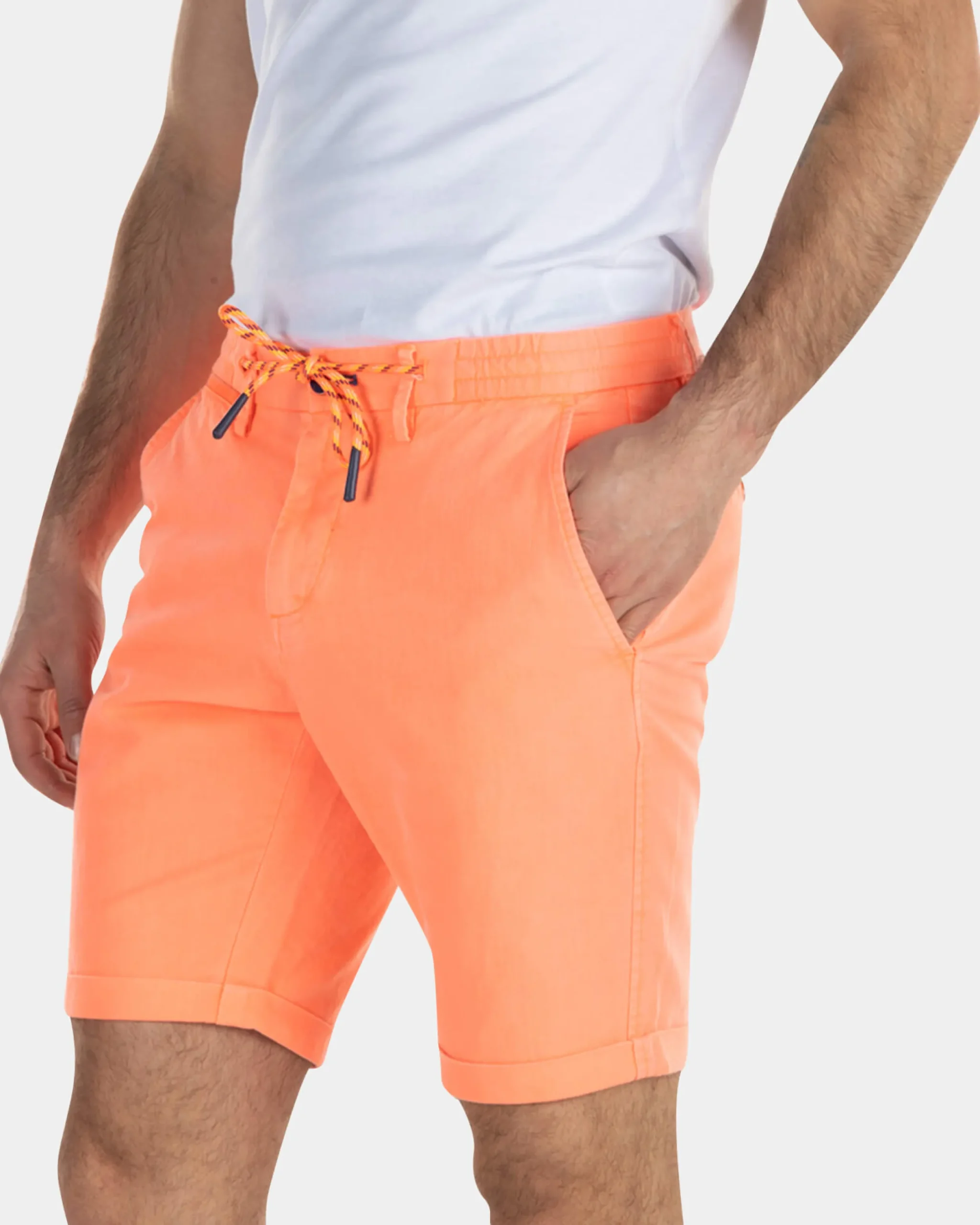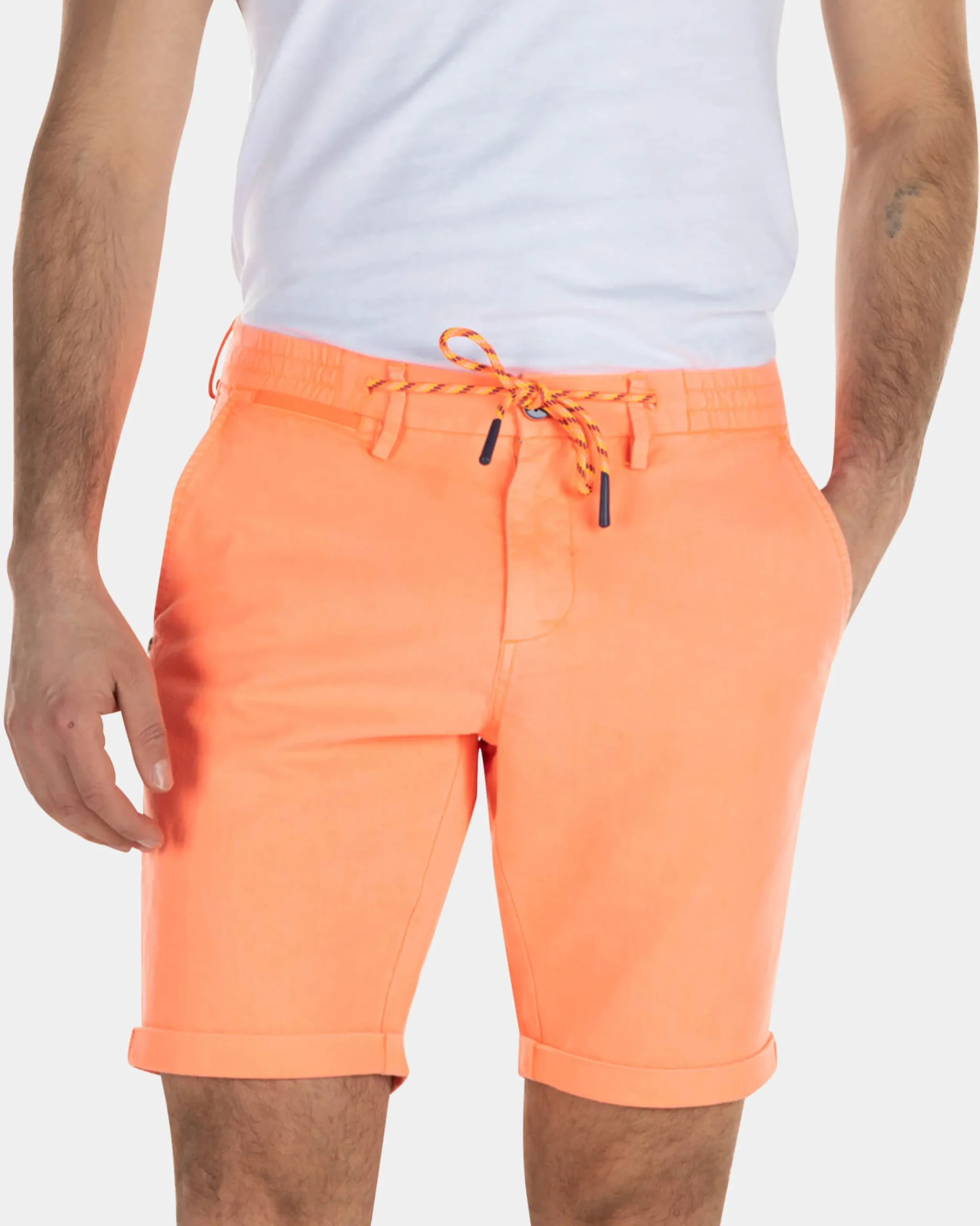 Korte chino van linnen met stretch – High Summer Orange