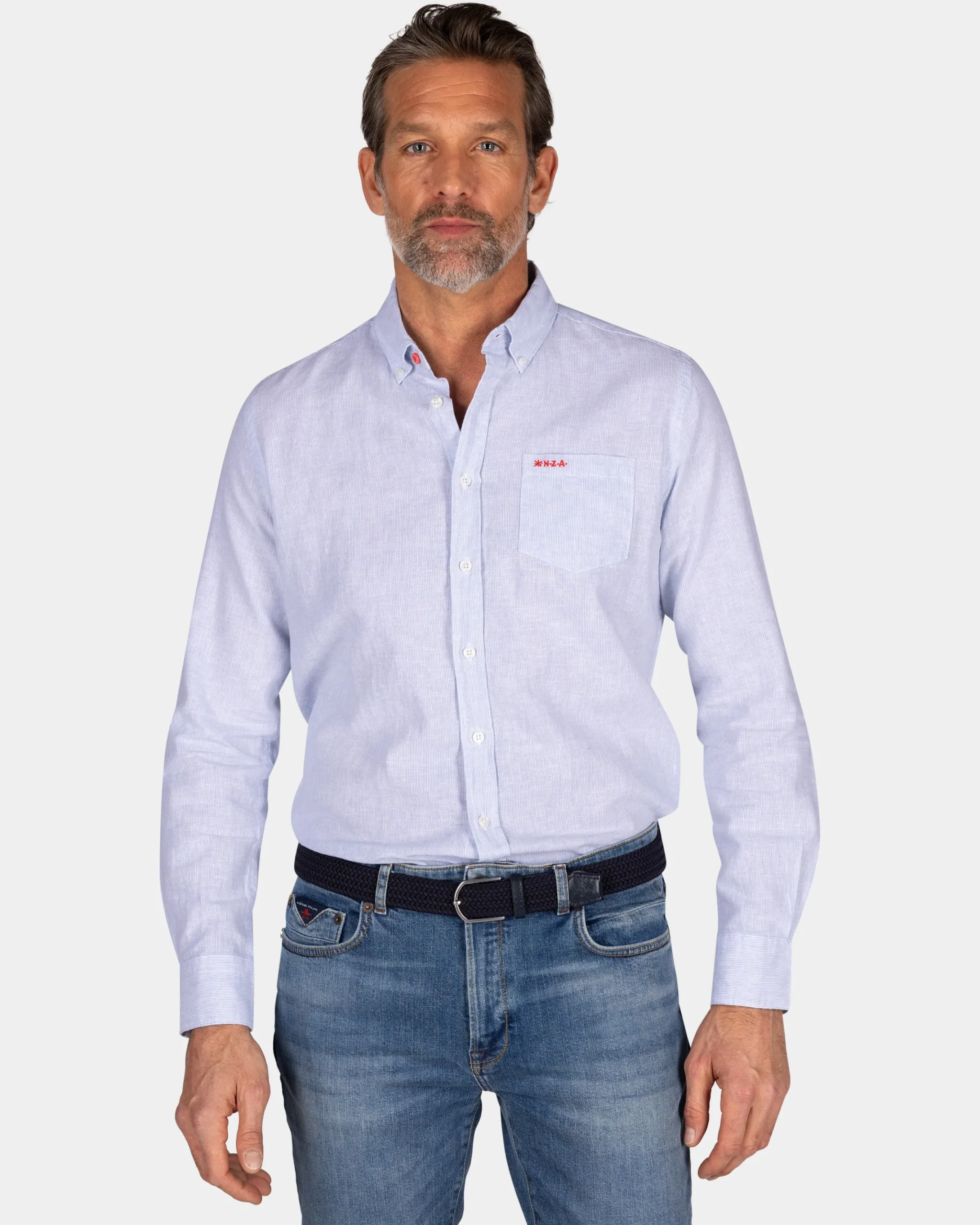 Lichtblauw linnen overhemd