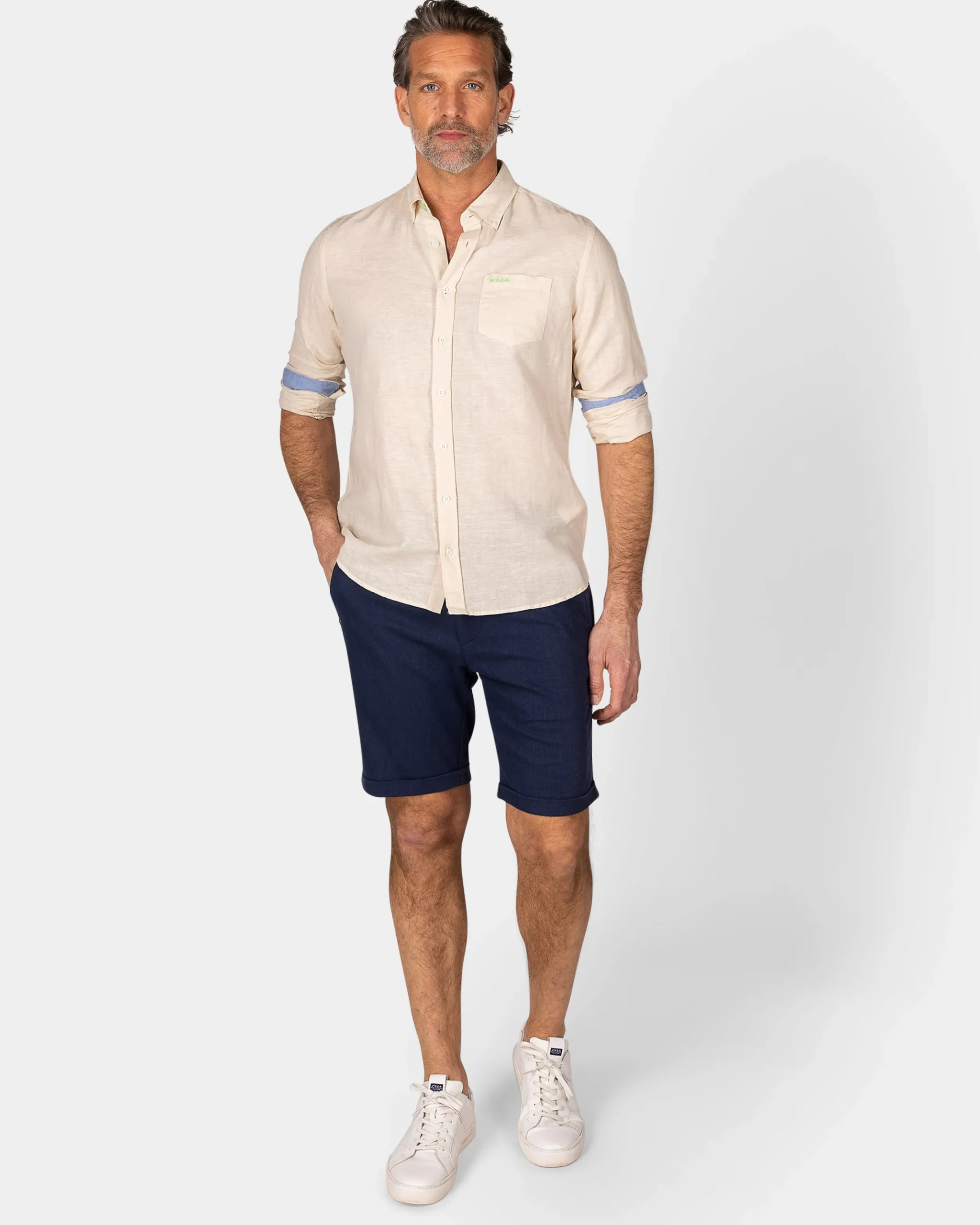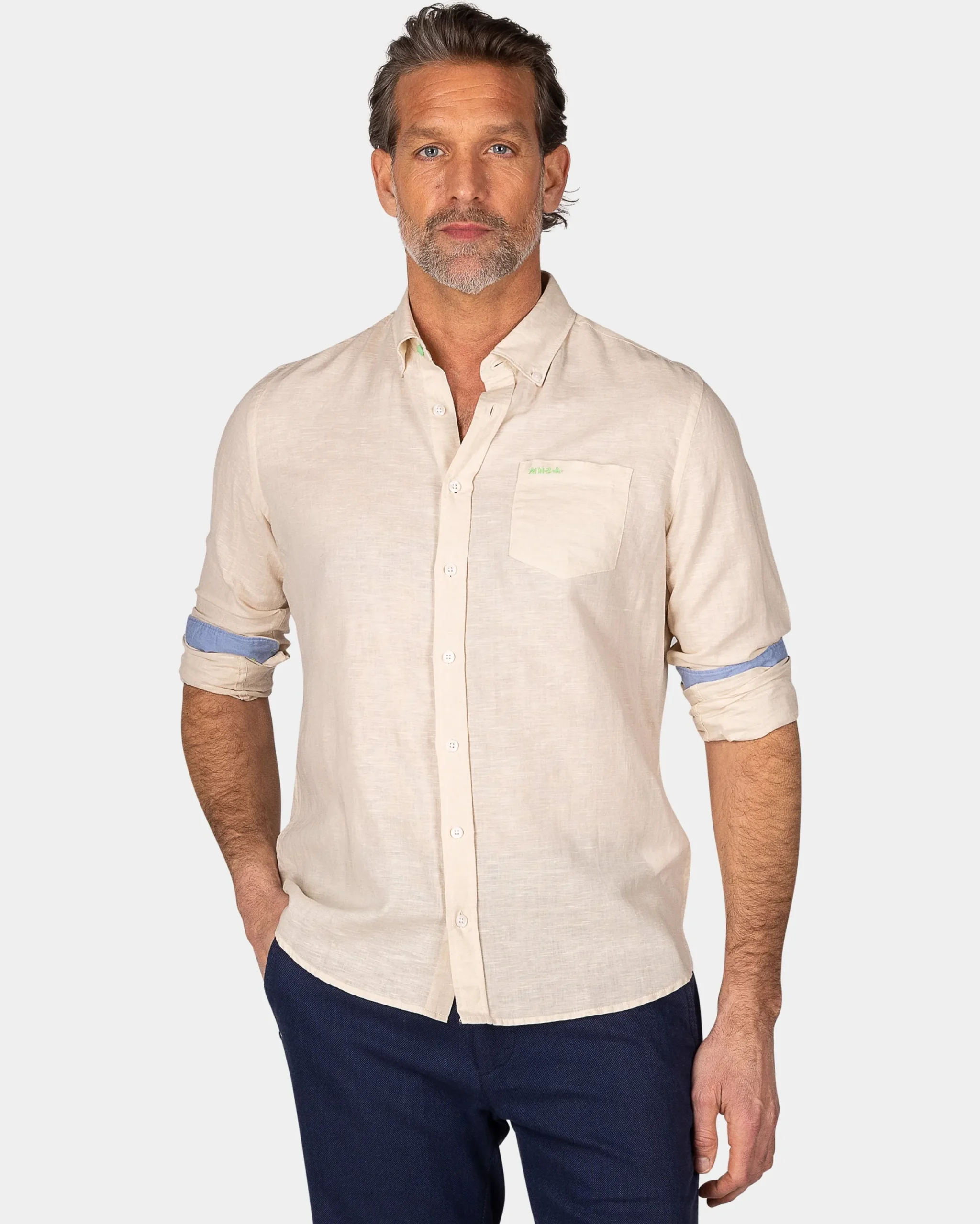 Linnen beige overhemd met lange mouw