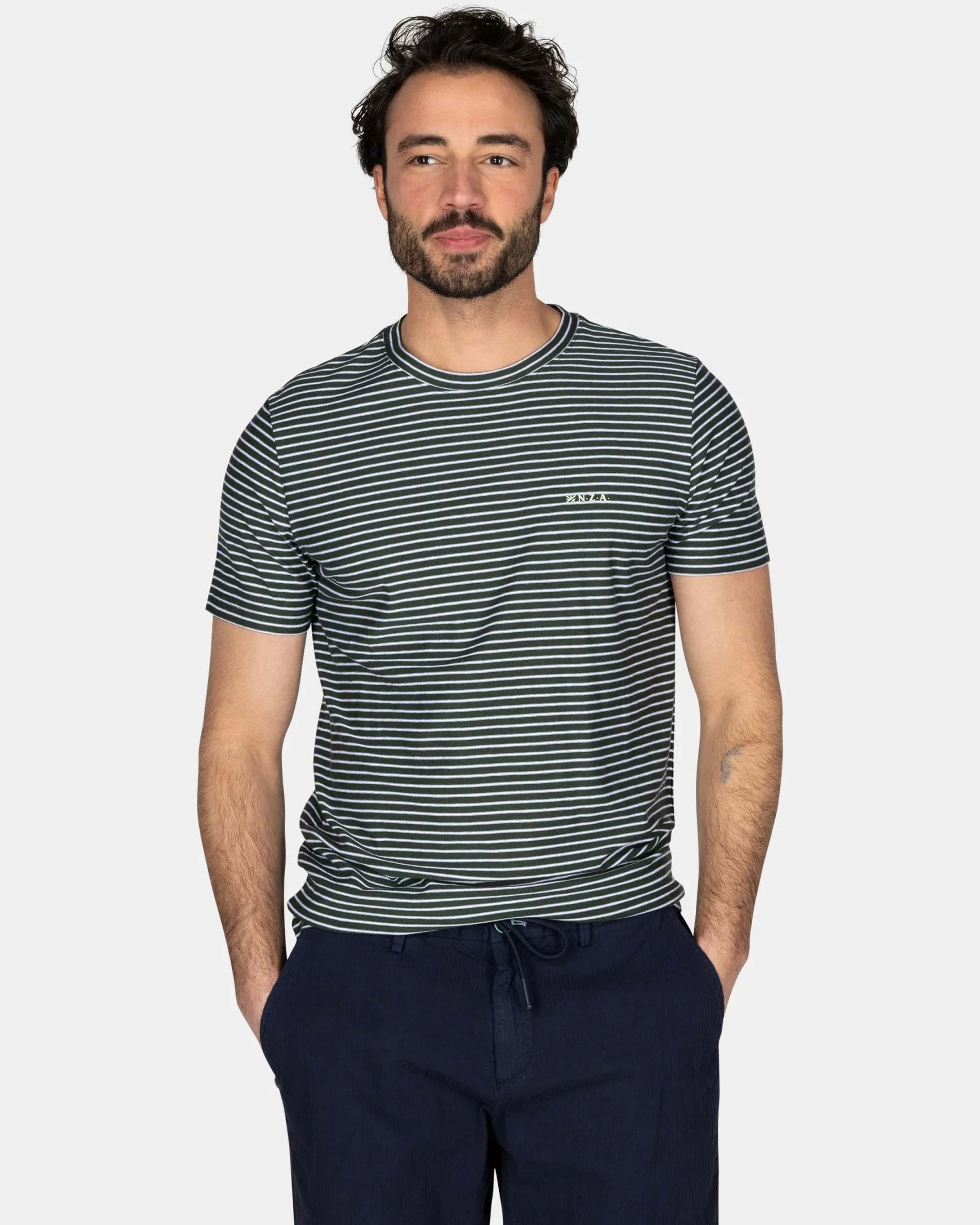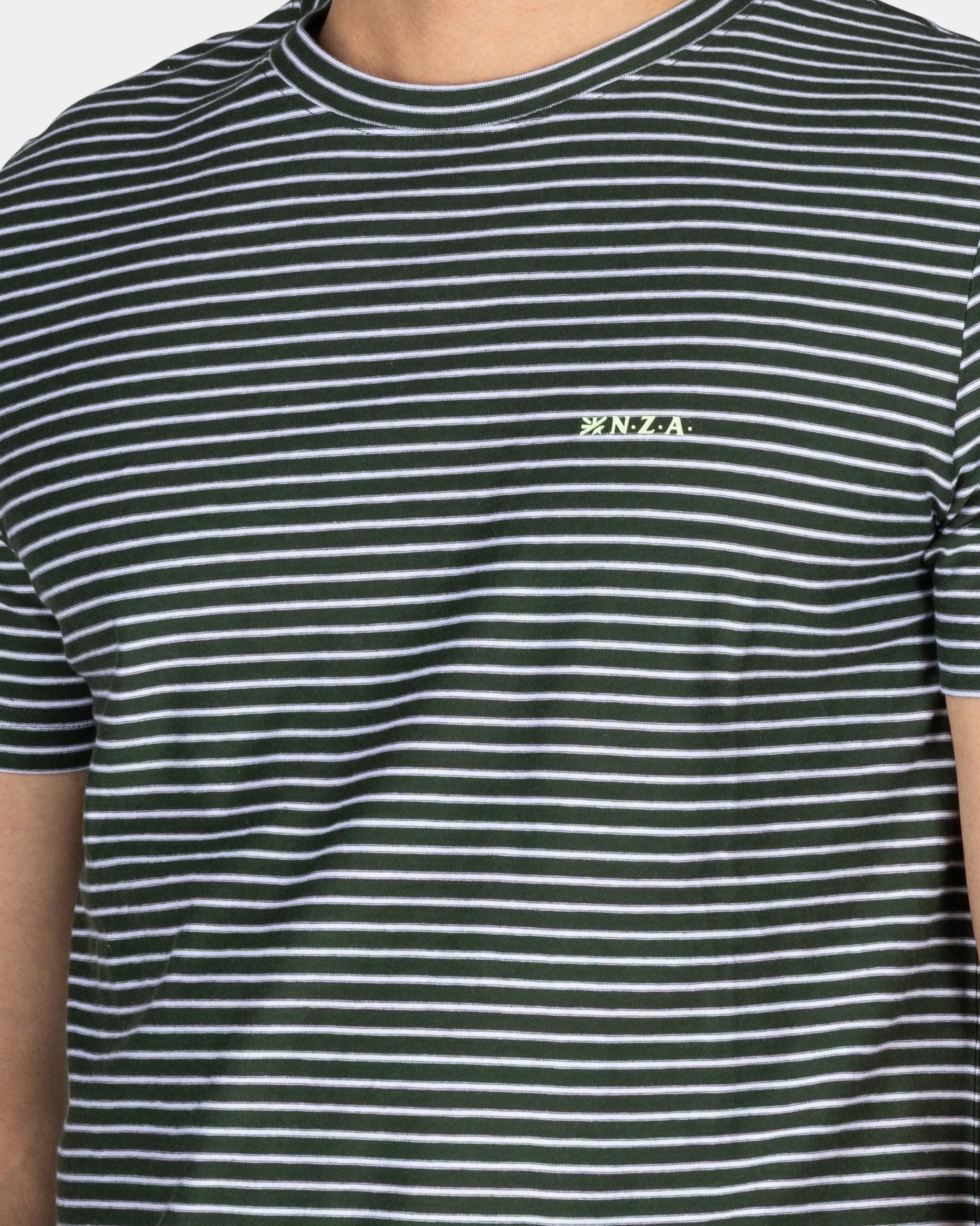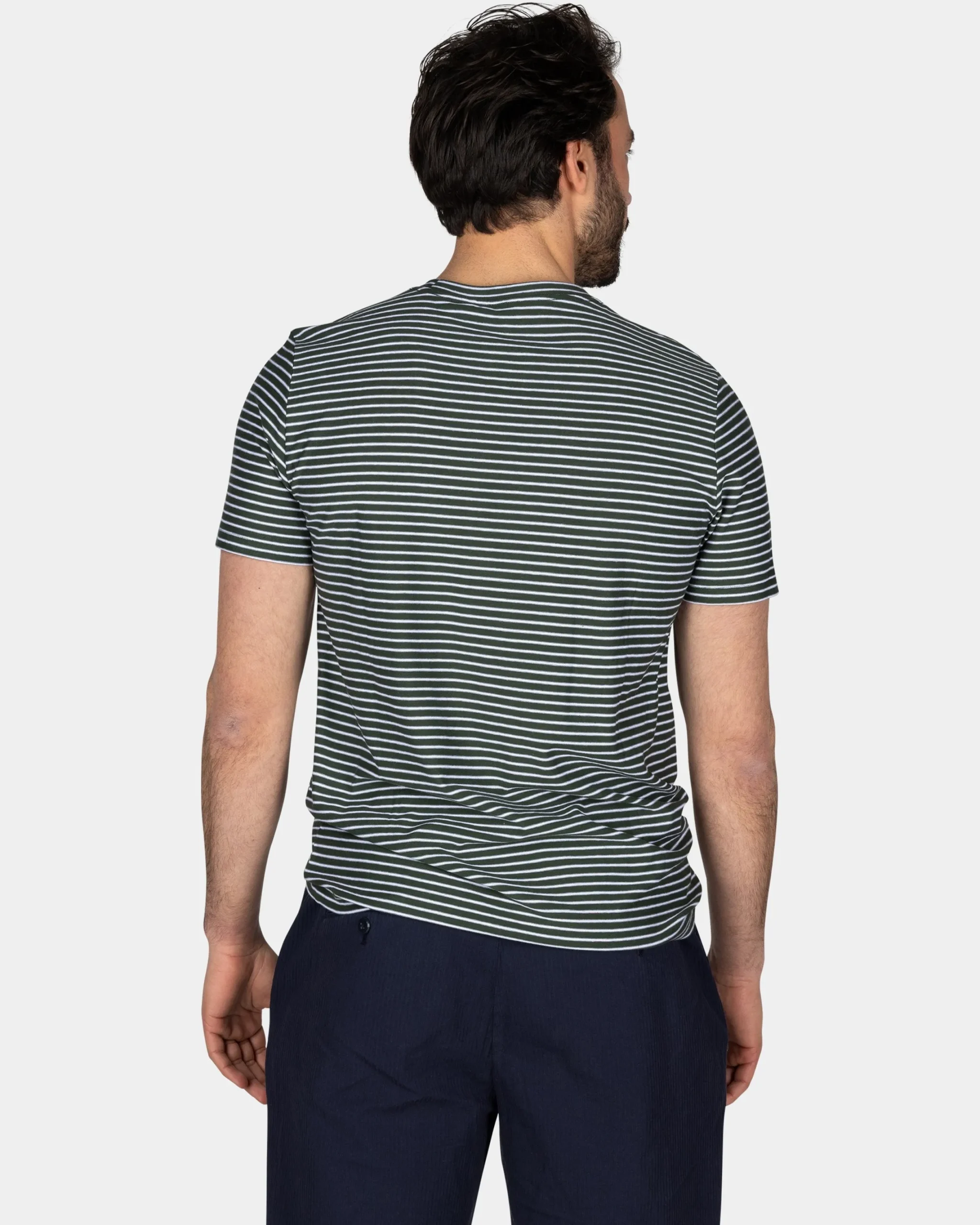 Mosgroen t-shirt met kleine witte streep
