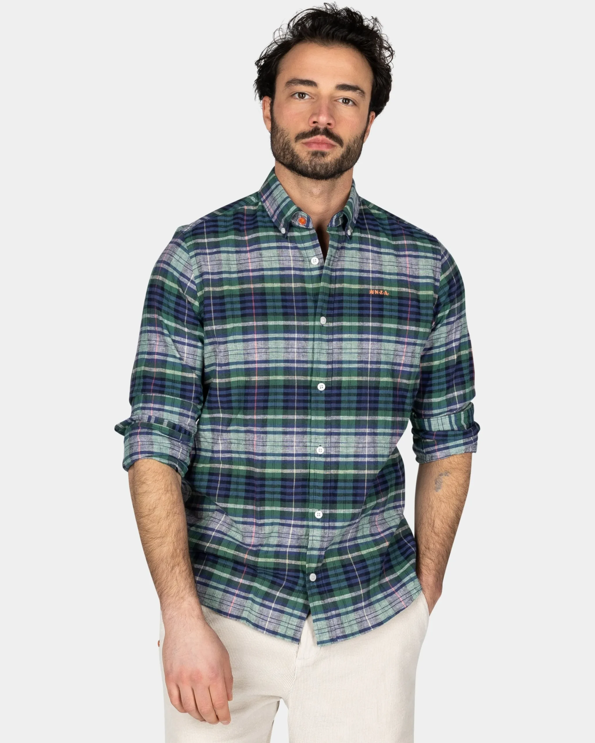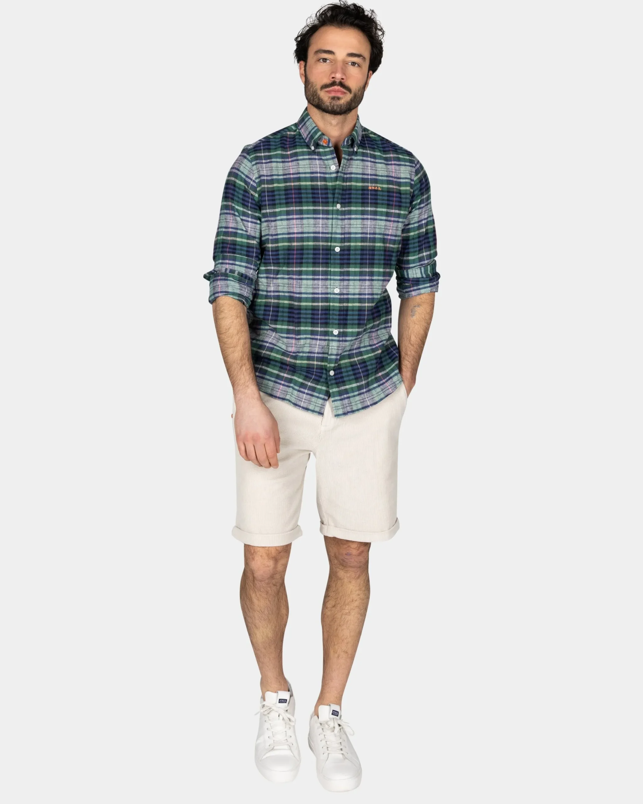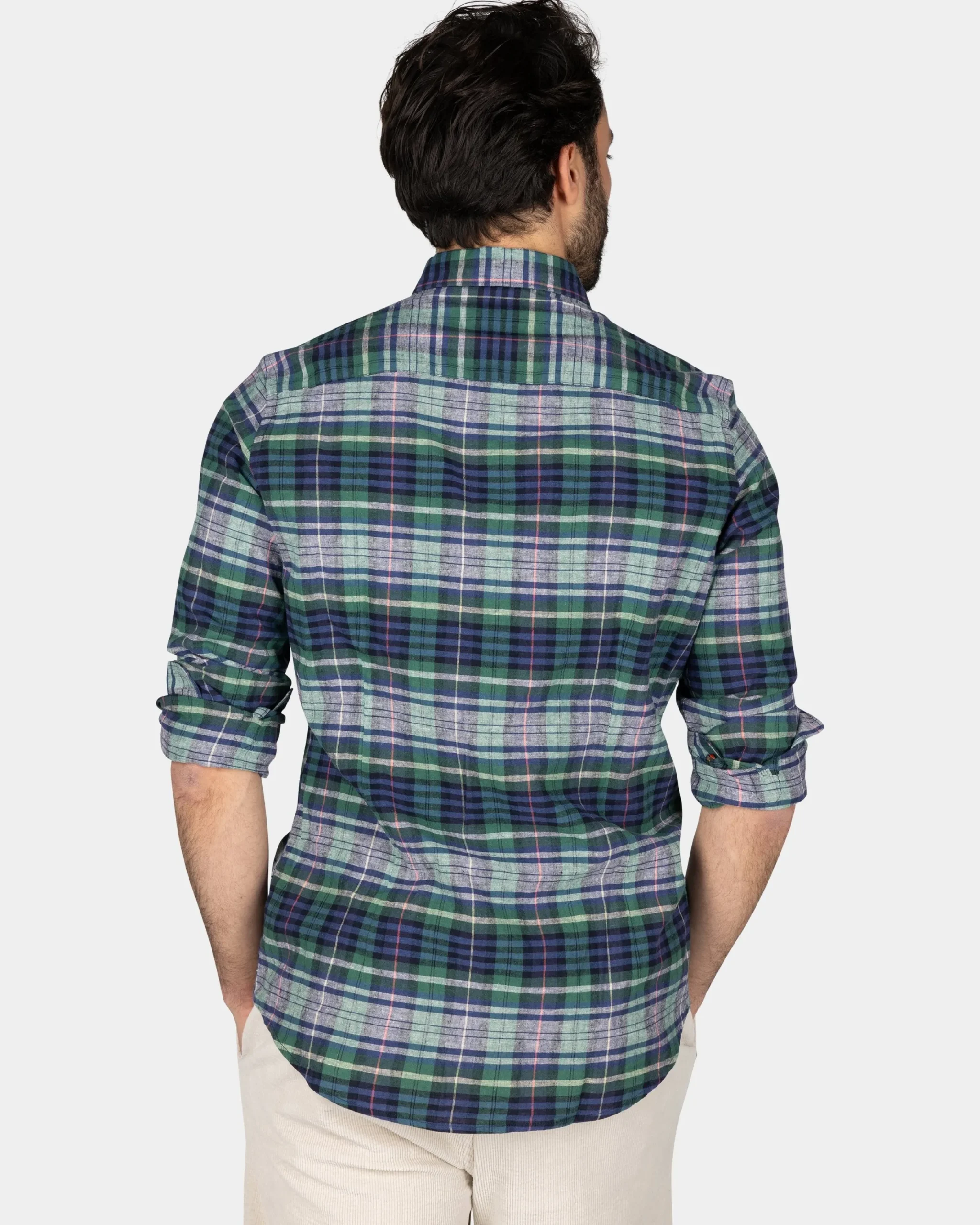 Navy groen paars geruit overhemd
