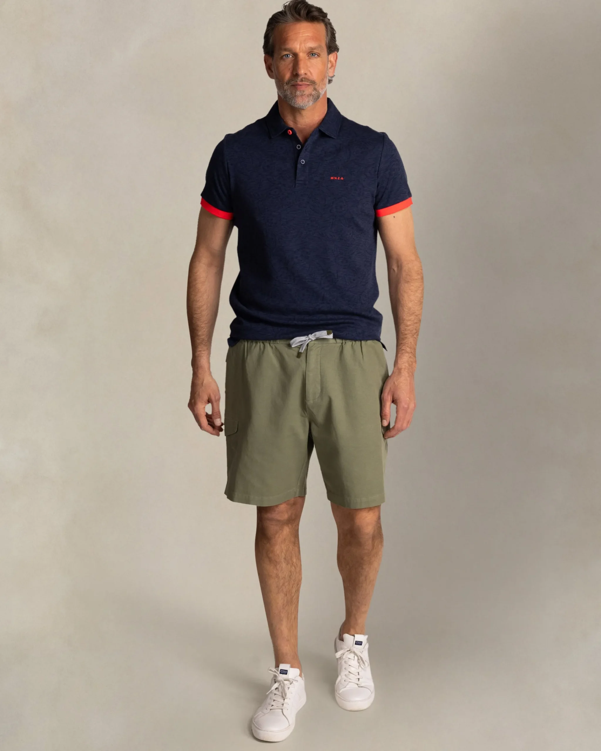 Navy polo met bladprint