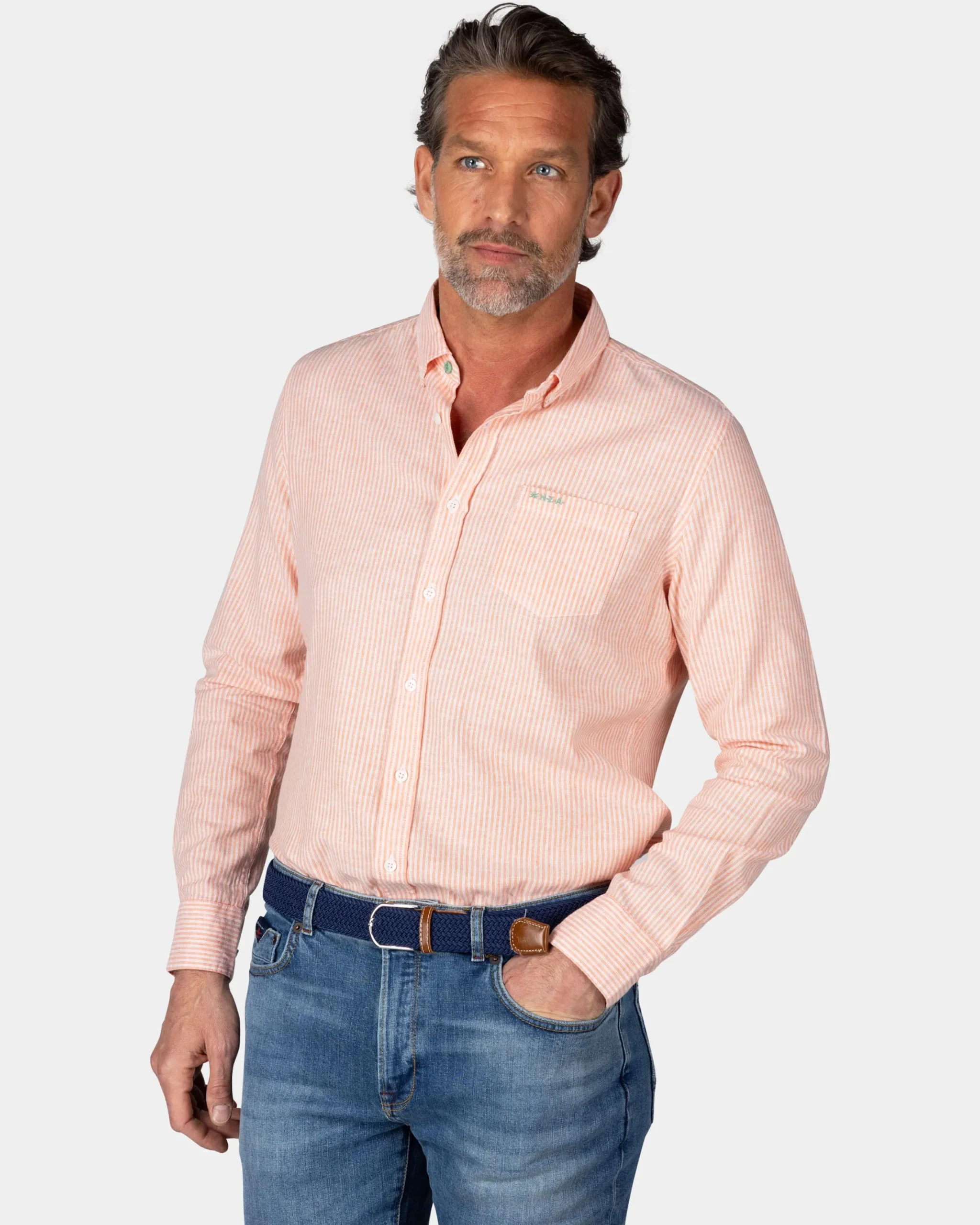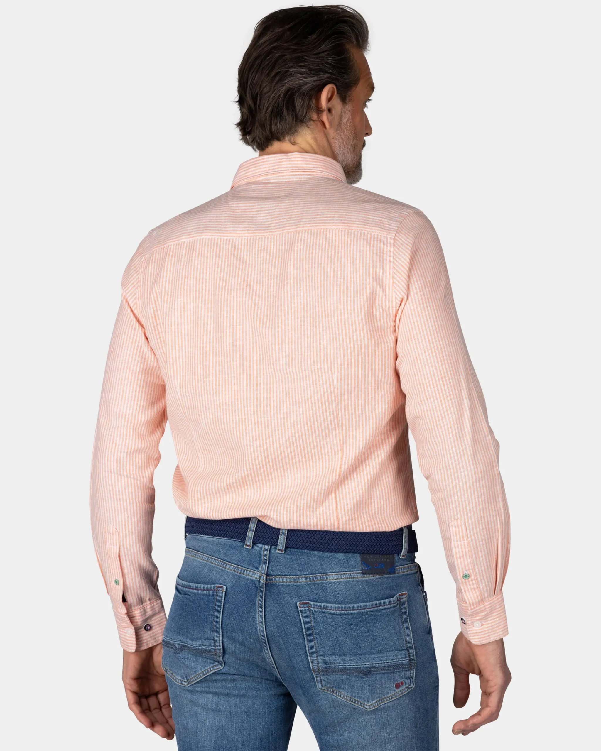 Oranje gestreept linnen overhemd