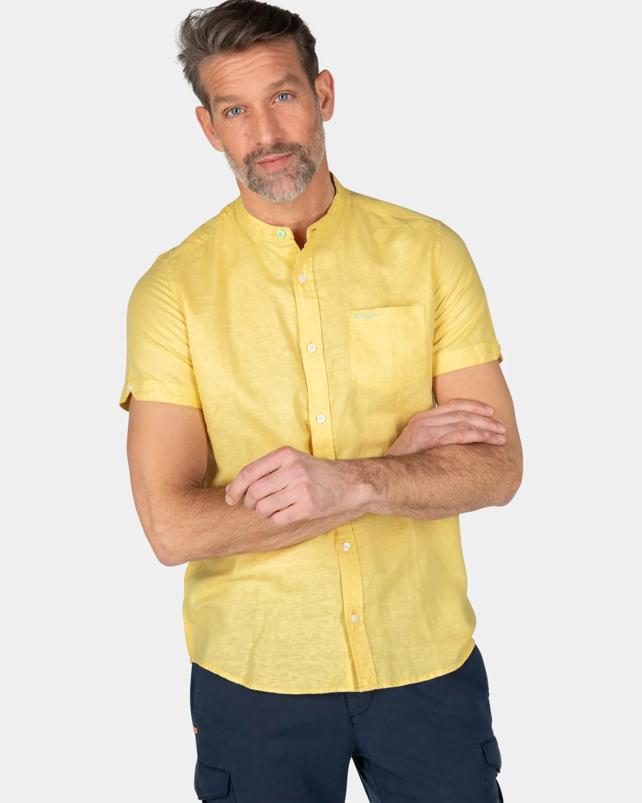 Overhemd zonder kraag met korte mouw – Iguana Yellow