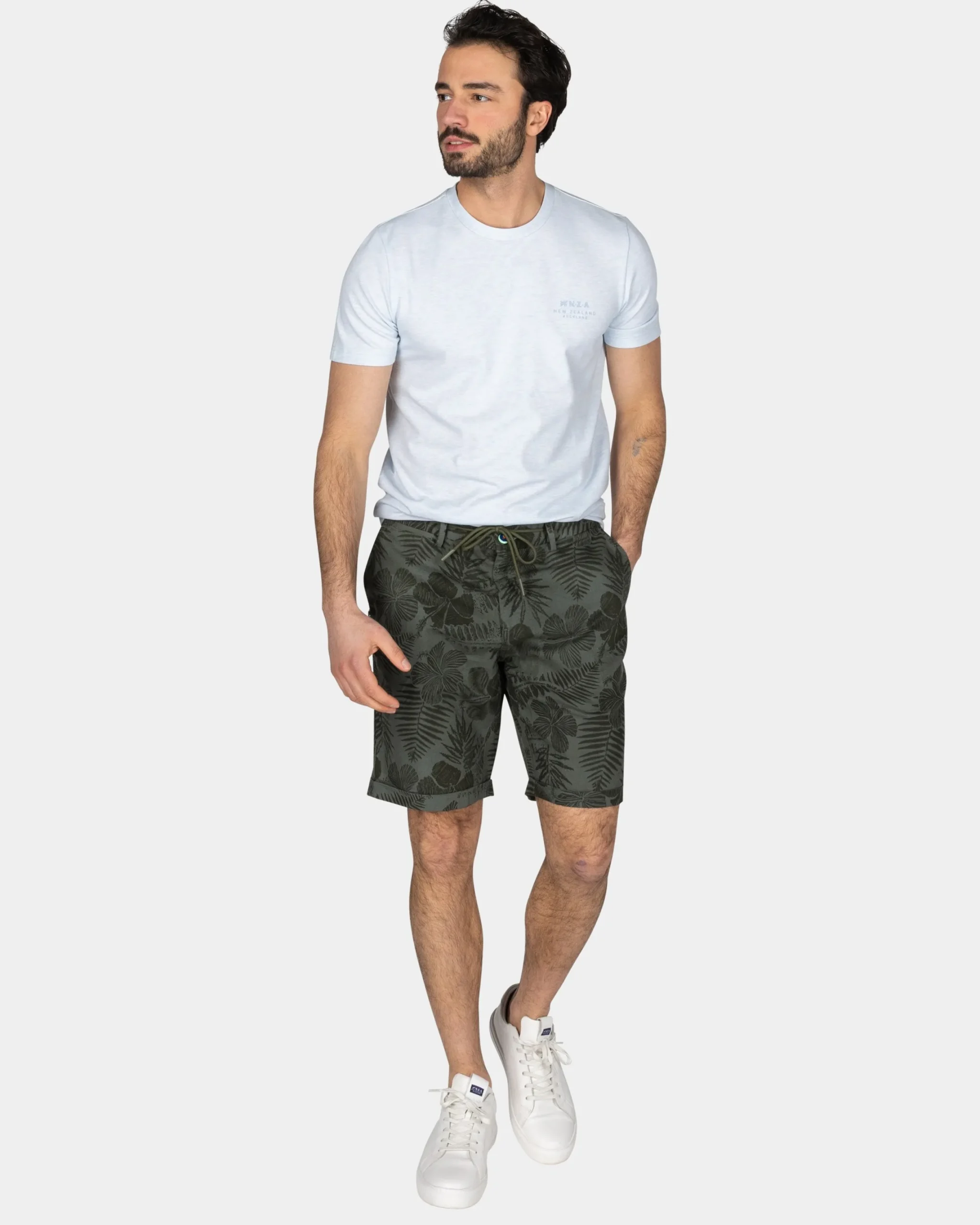 - 57% Katoen, 38% Polyester, 5% Elastaan
