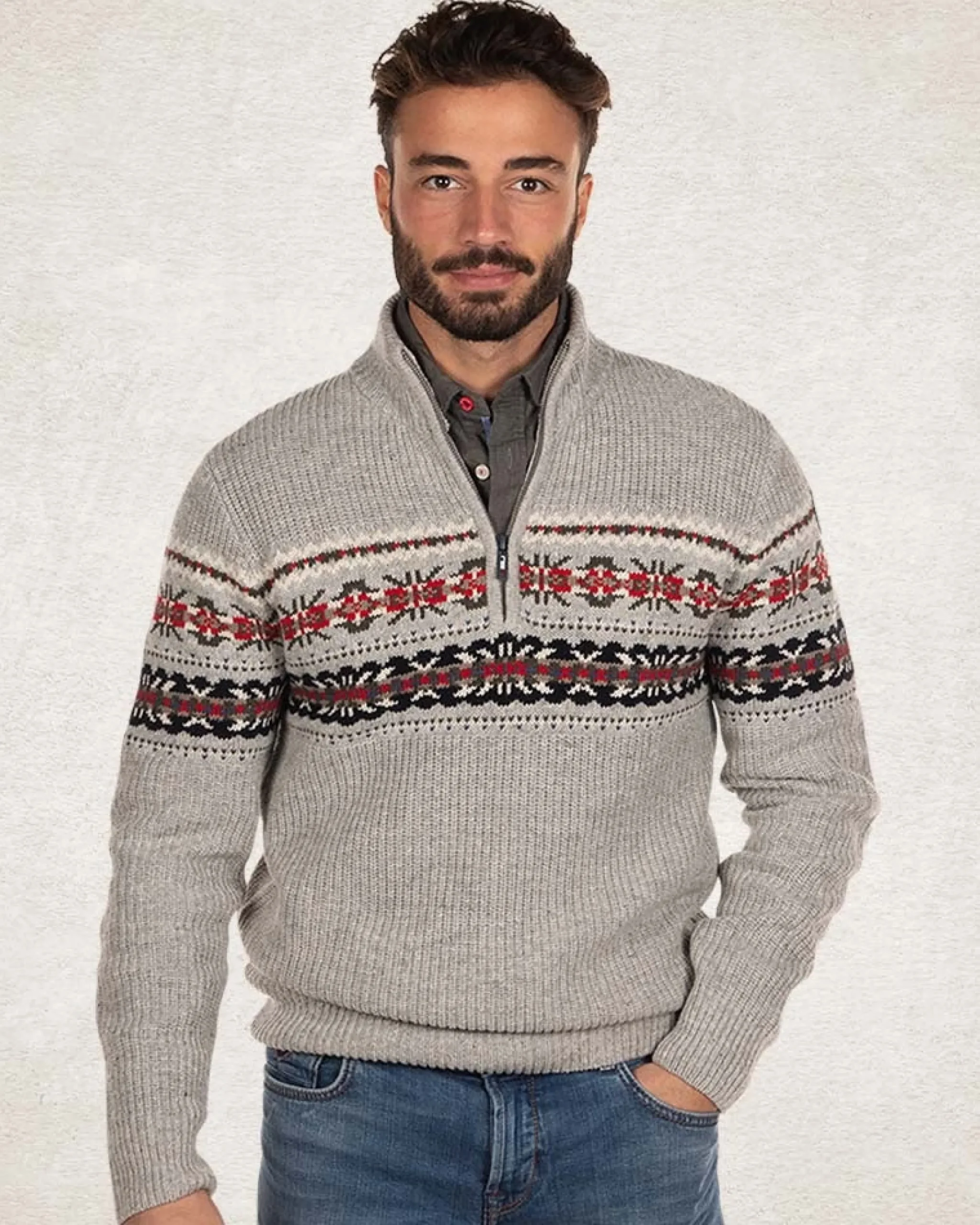 NZA New Zealand Auckland Pullover met halve rits van katoen en wol –
