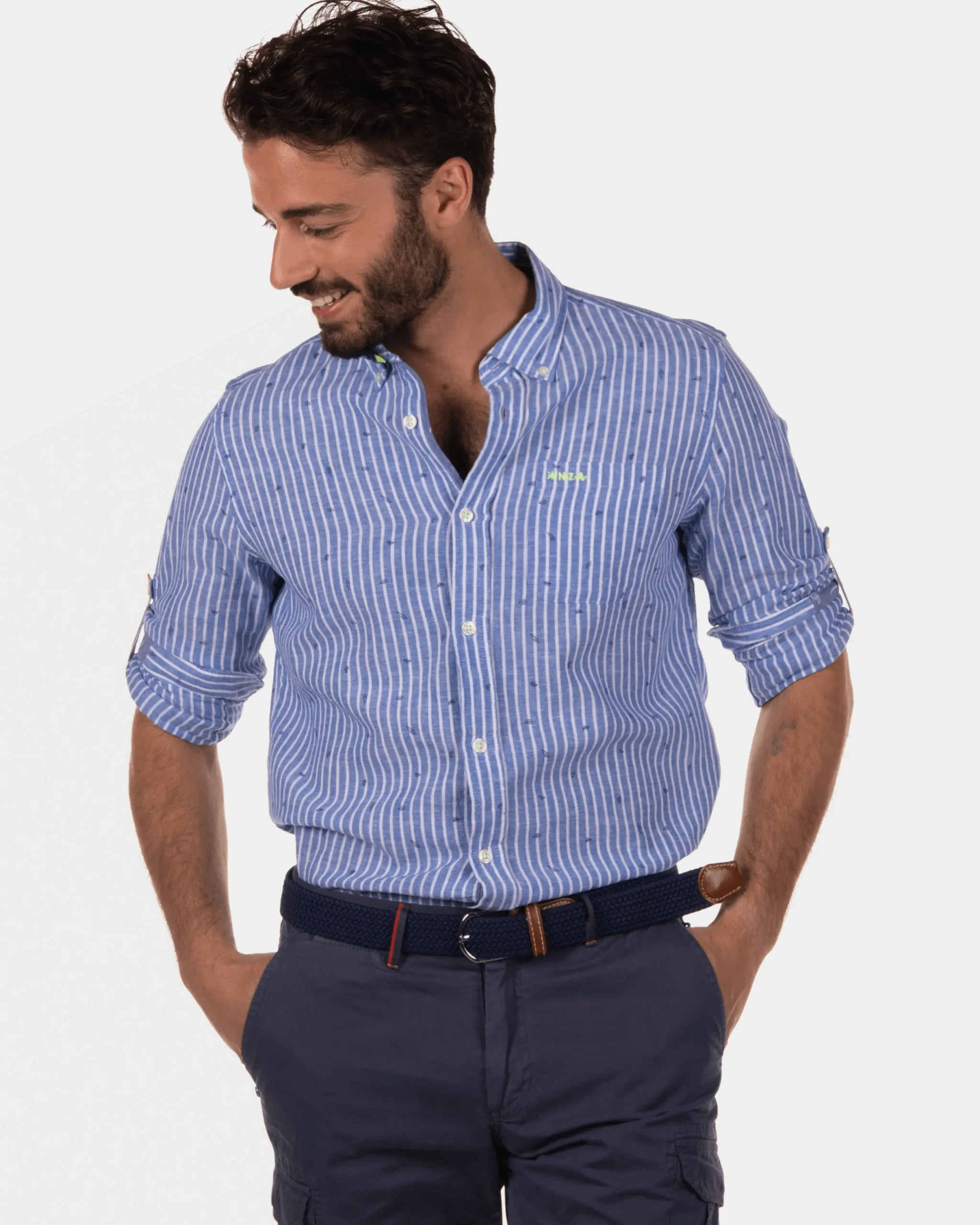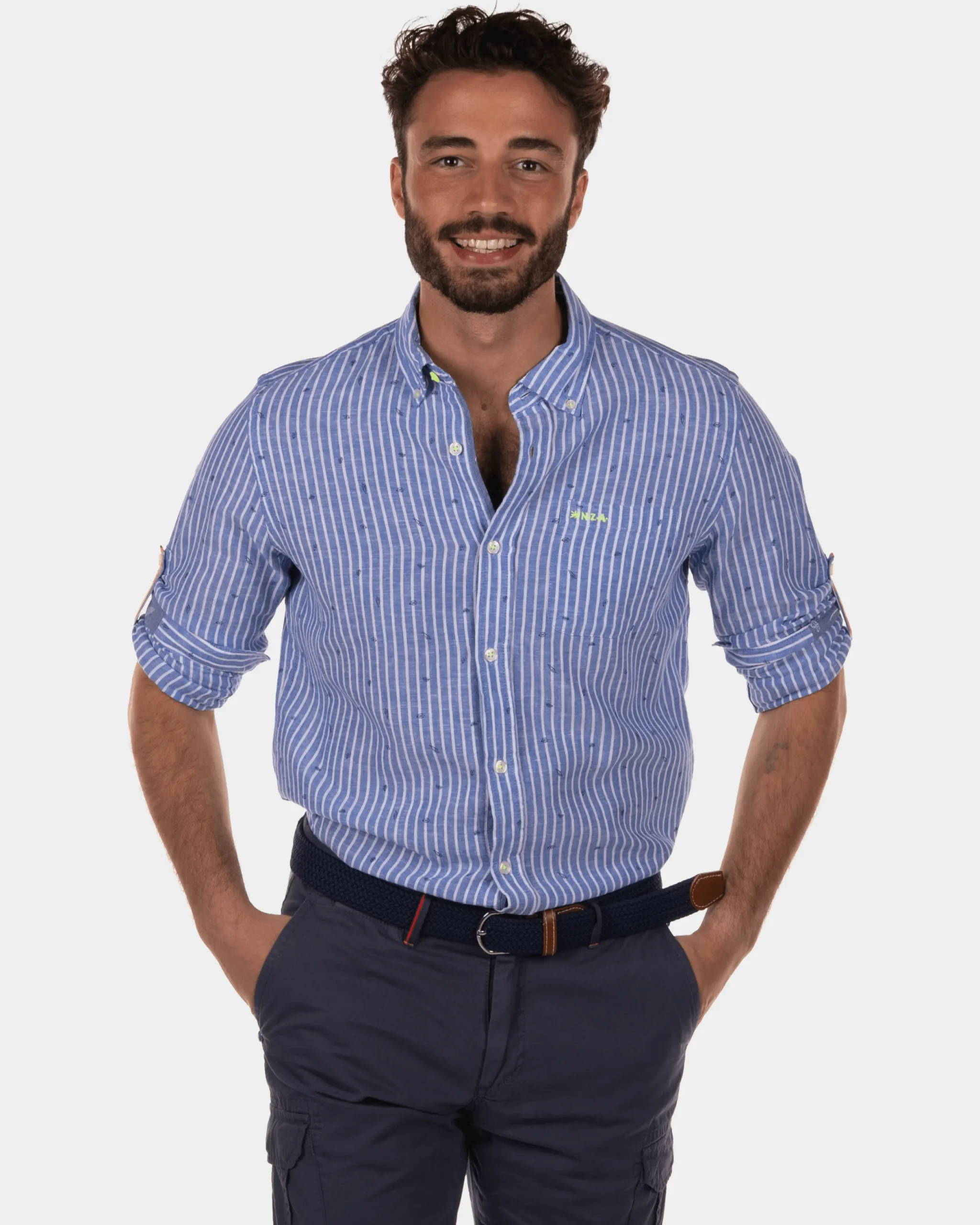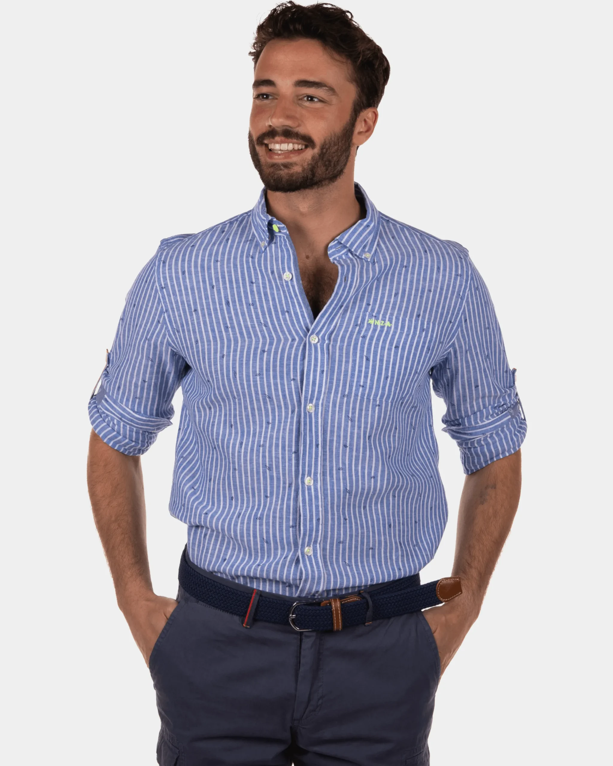 Rotonuiaha gestreept linnen overhemd – Chinese Blue