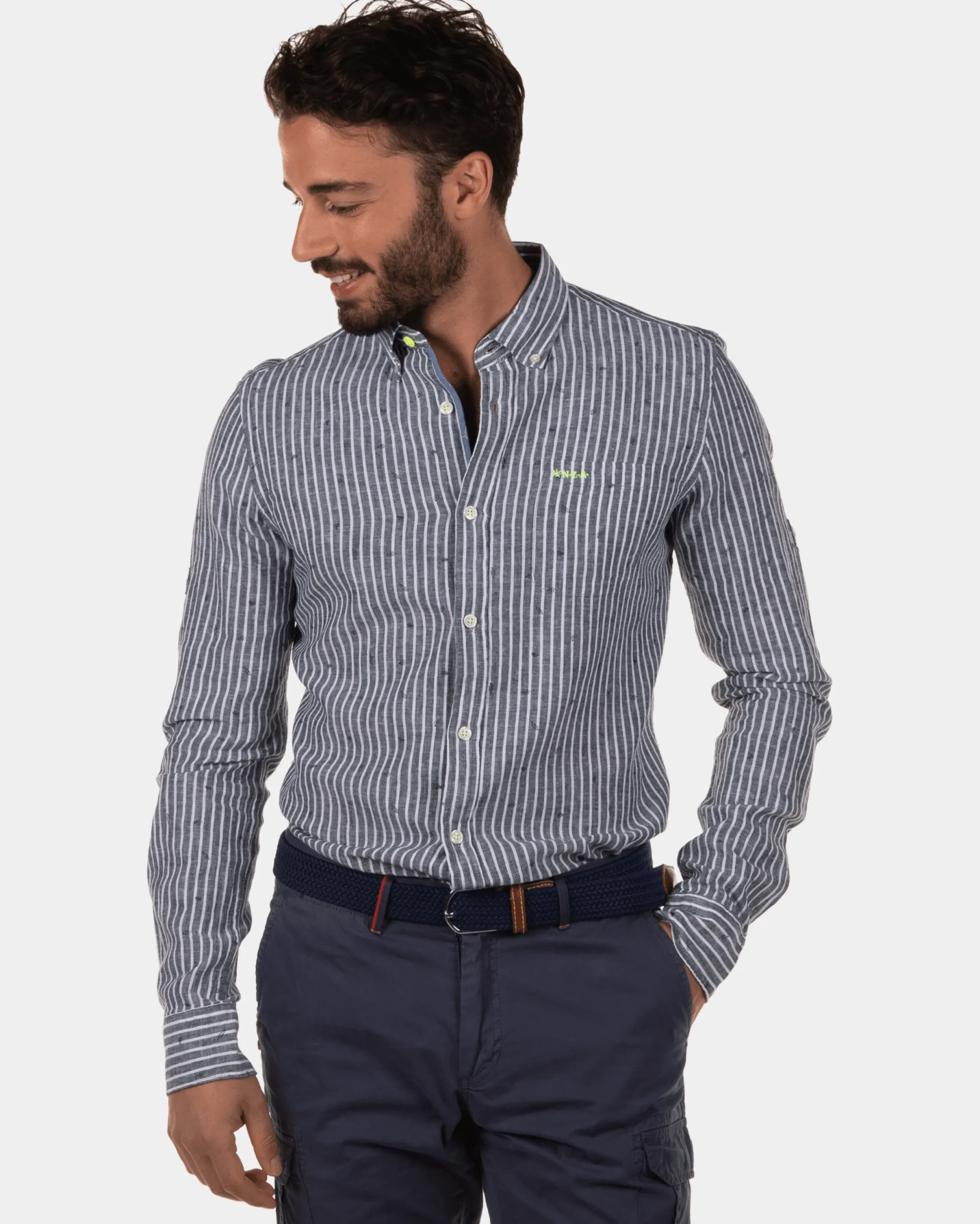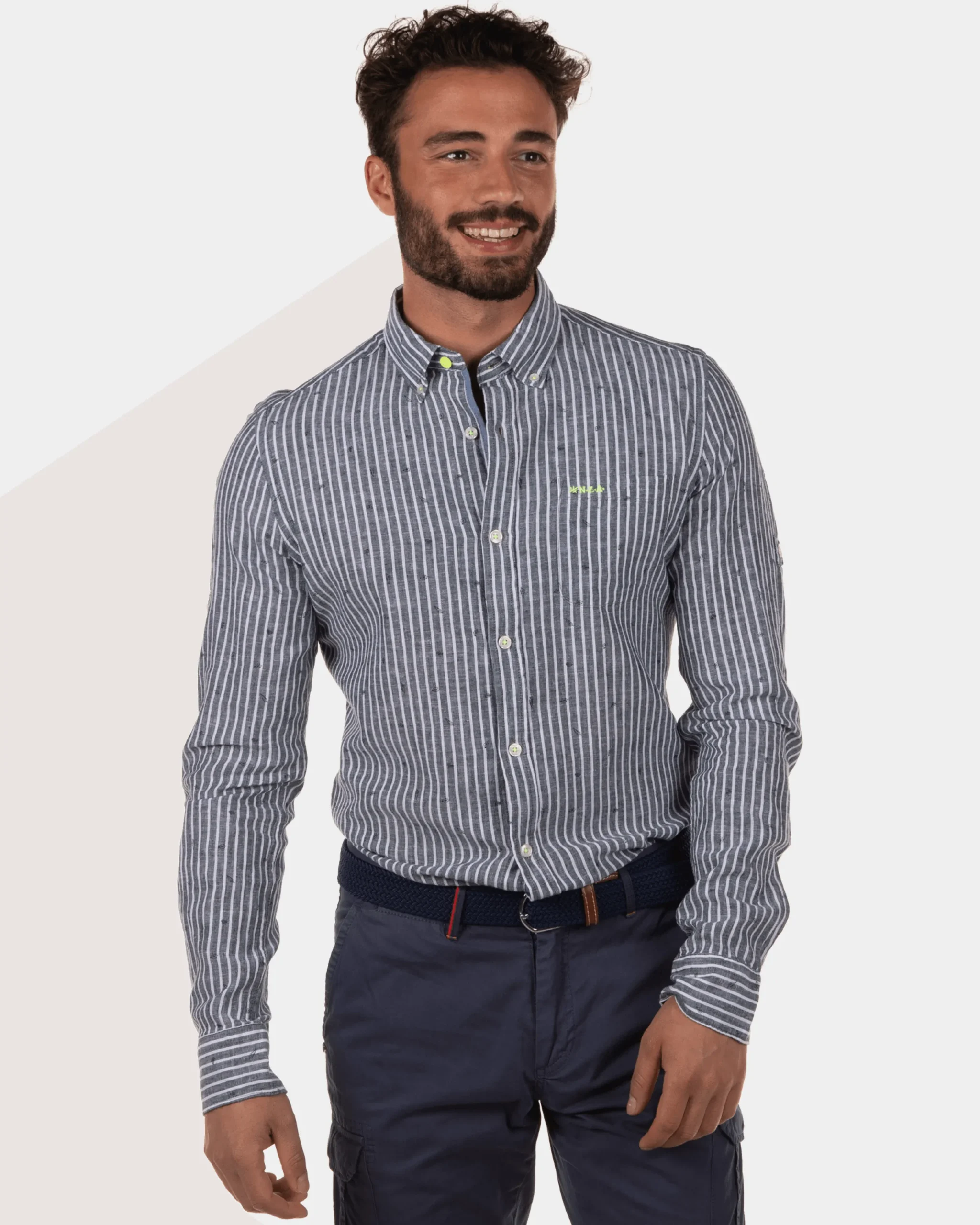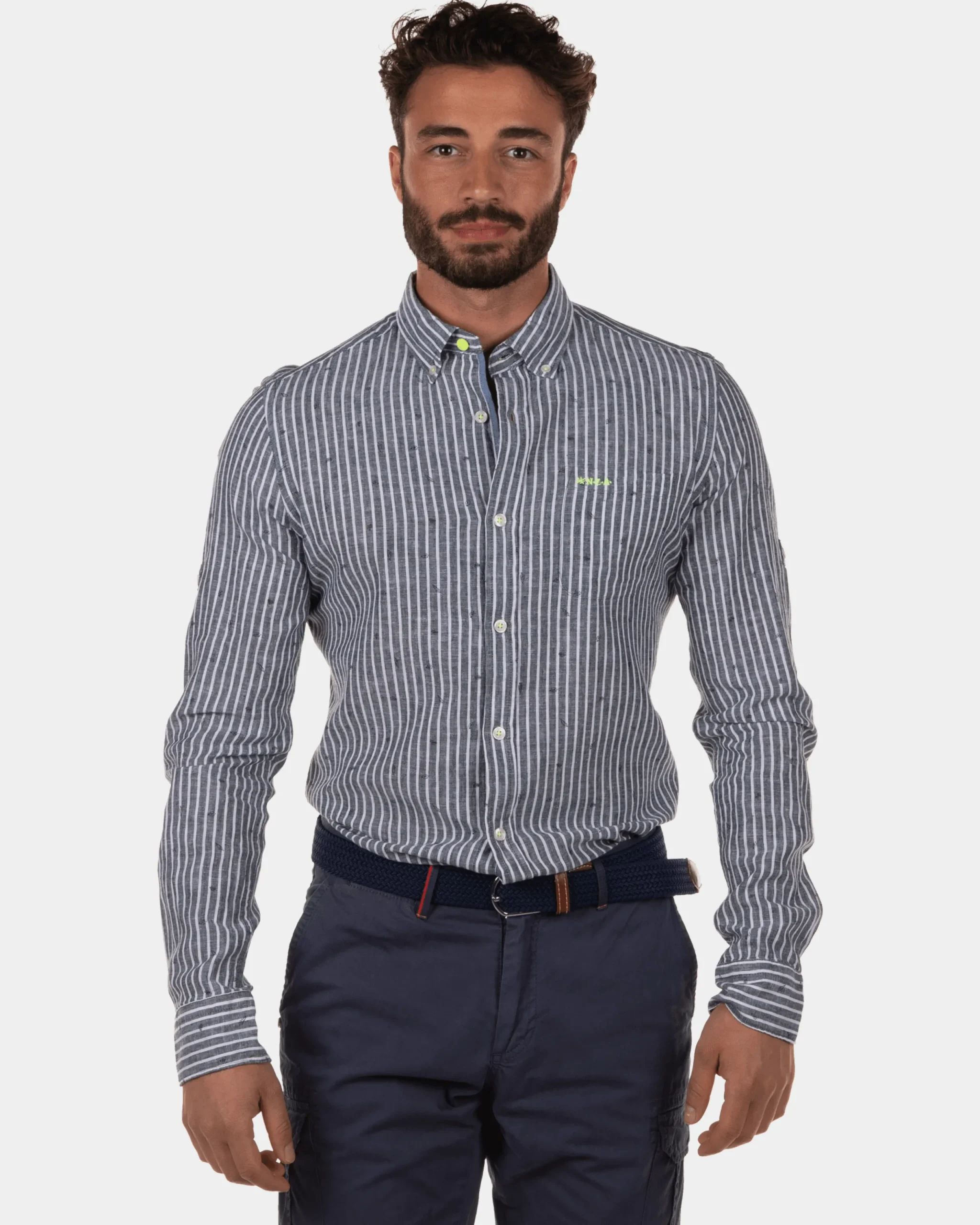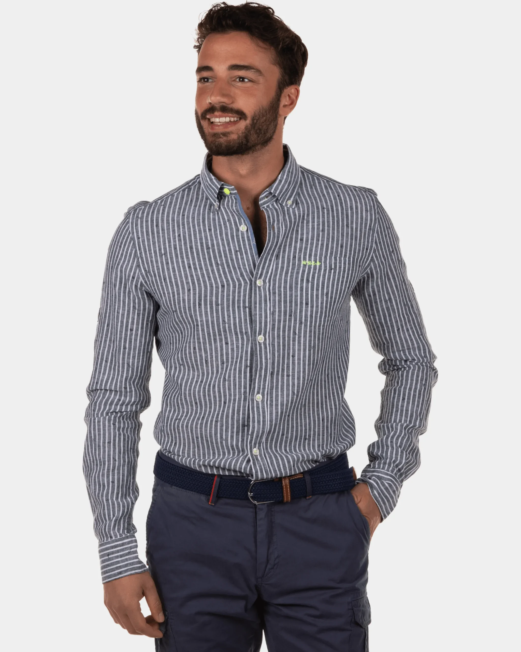 Rotonuiaha gestreept linnen overhemd – Lead Green