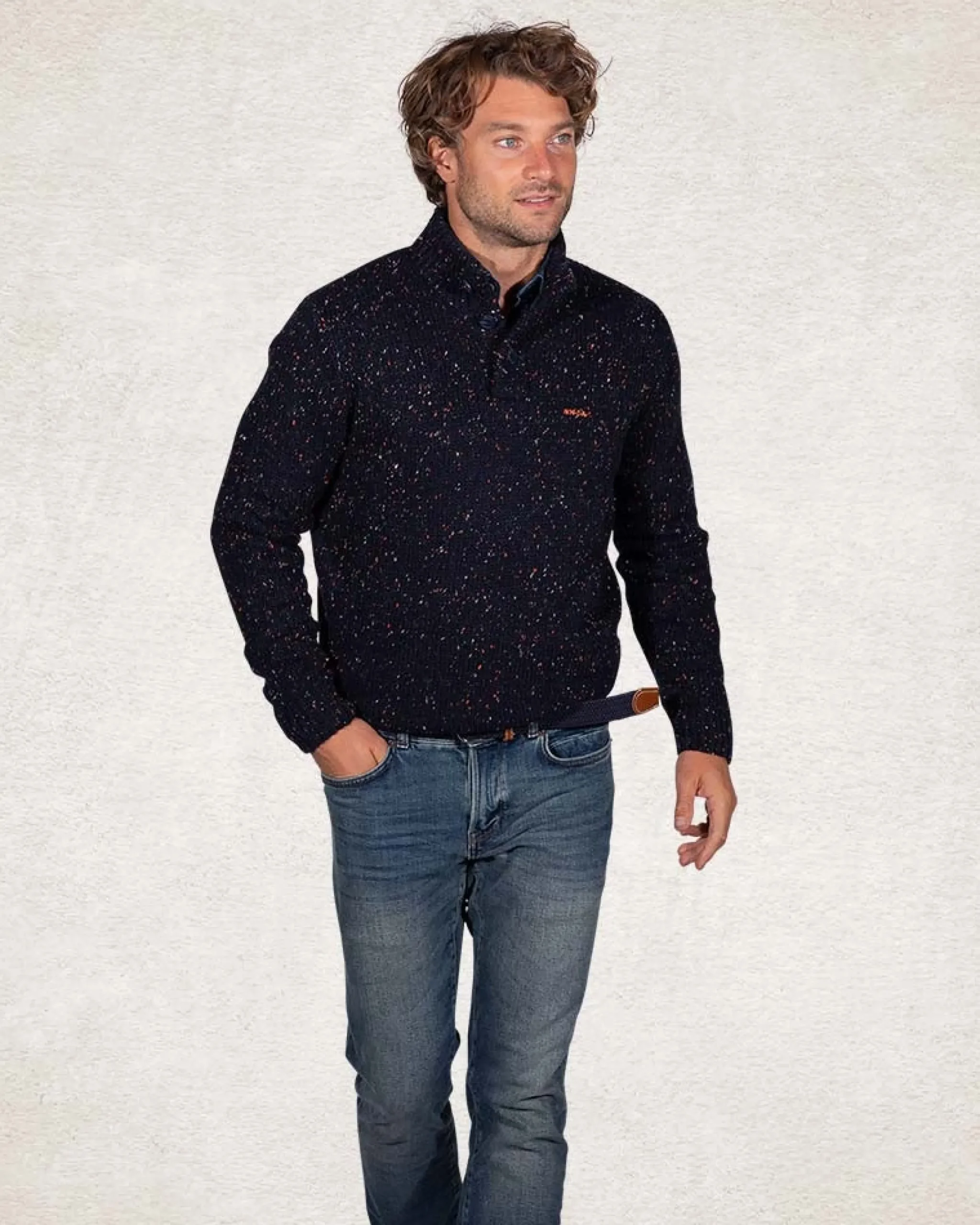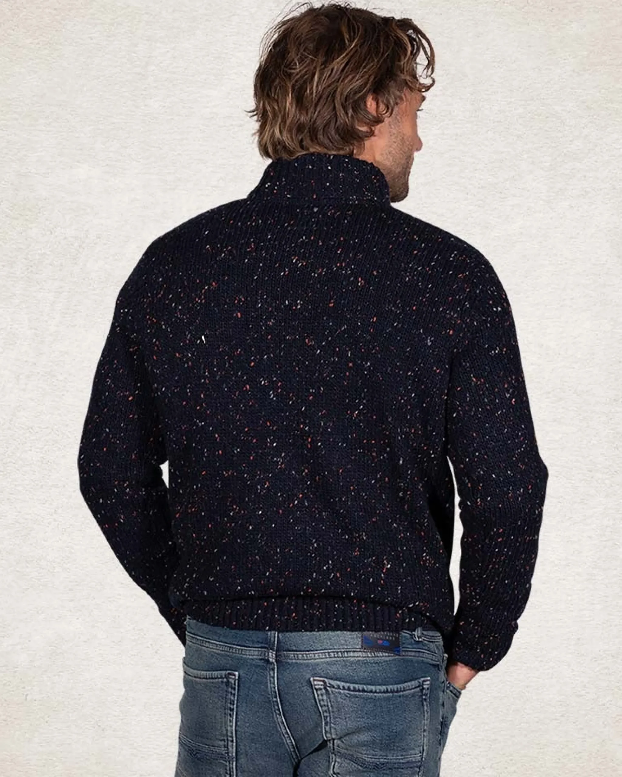 Trui met halve knooppsluiting van wolmix – Pitch Navy